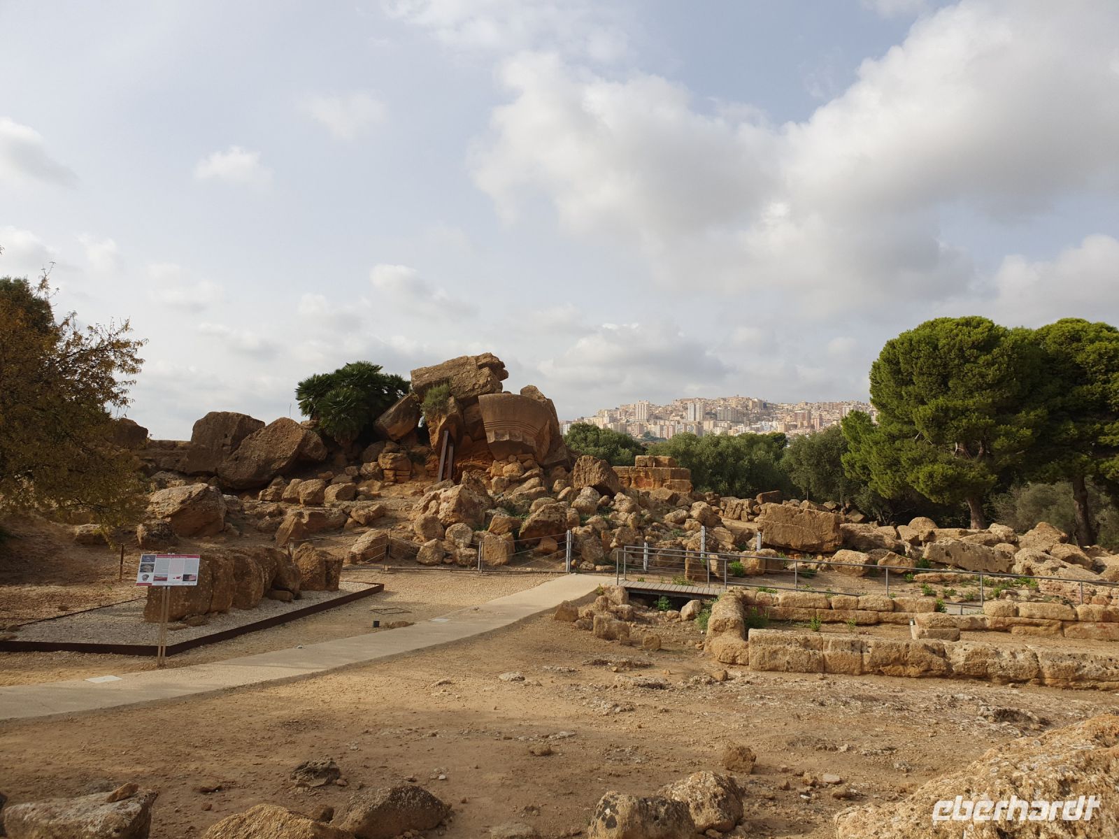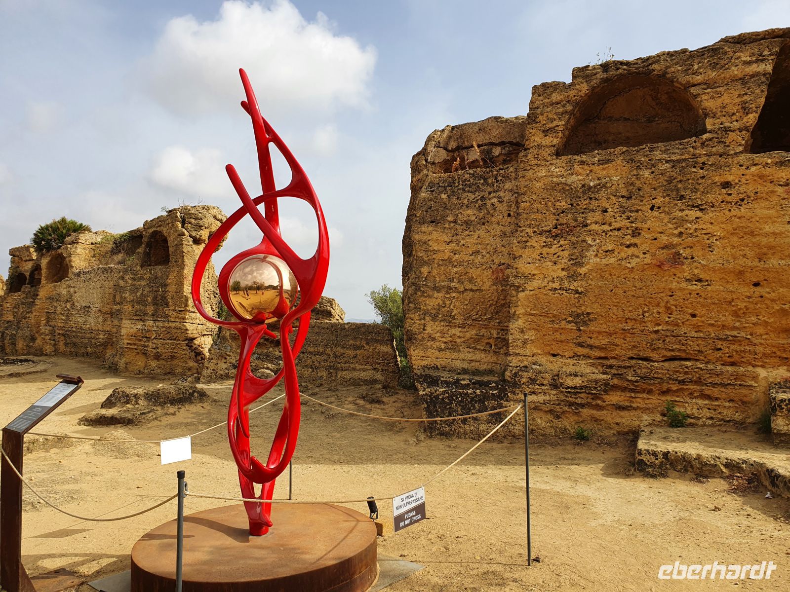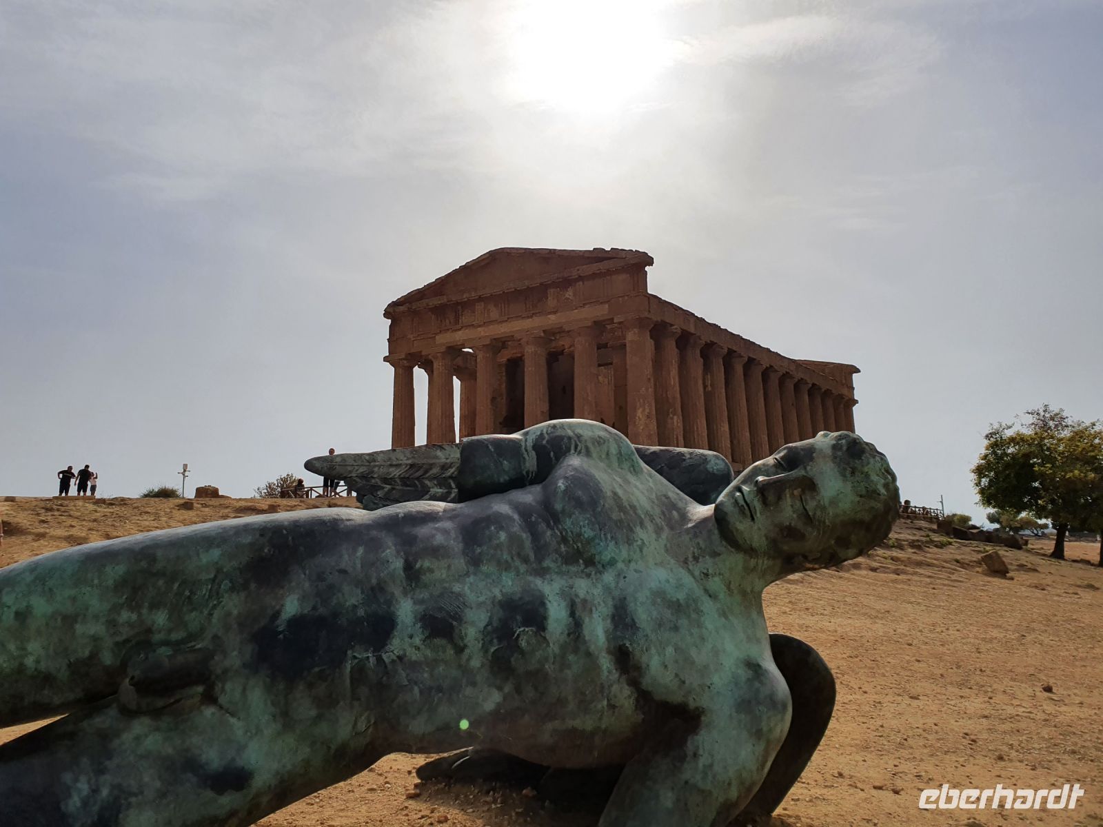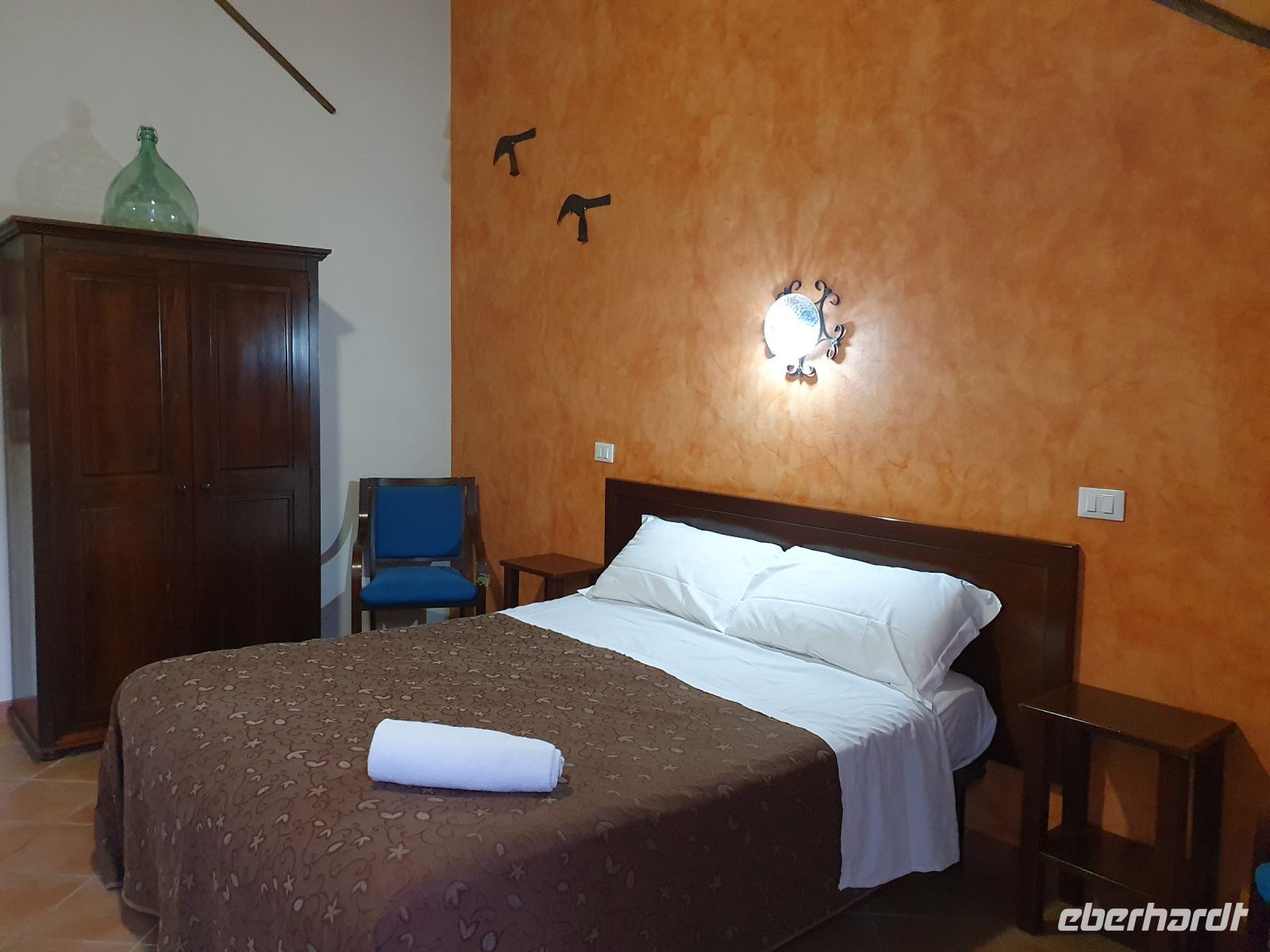 Am Nachmittag erreichten wir die Südwestküste und besuchten ein weiteres UNESCO Kulturerbe, das Tal der Tempel bei Agrigent. Schon Johann Wolfgang Goethe war hier und beschreibt die Tempel in seiner italienischen Reise. Die Tempel stehen auf einem leicht abfallenden Höhenzug vor den Toren der heutigen Stadt Agrigent. Wir begannen unsere Besichtigung am höchsten Punkt mit dem Hera Tempel. Auf dem Weg zum Tempel kommt man am ältesten Olivenbaum Siziliens vorbei. Vom Hera Tempel bis zum Concordia Tempel geht man entlang der ehemaligen Stadtmauer, in die später Nekropolen geschlagen wurden. Der Concordia Tempel ist der am besten erhaltende Tempel der griechischen Antike. In der Nähe des Ausganges stehen die 8 Säulen des wieder errichteten Herakles Tempels und tief eingeschnittene Wagenspuren können bestaunt werden. Auf der anderen Straßenseite liegt das Trümmerfeld es einstigen Zeus Tempels, auch Olylieion genannt. Nach dem Sieg über die Karthager 480 v.Ch. wurde hier ein dorischer Tempel von rießigen Ausmaßen errichtet und zur Stabilisierung sogenannte Telamone - 8 m hohe Figuren von Giganten - als Stützen eingesetzt. Einen liegenden Telamon kann man sehen zwischen den Trümmern. Nach der beeindruckenden Besichtigung fuhren wir zu unserer nächsten Unterkunft in einem Agriturismo mit dem Namen Case di Latomie. Ein herrschaftlicher Landsitz wurde für Touristen geöffnet, die Zimmer mit dem üblichen Standard ausgerüstet und im Restaurant wurden typische Speisen aus der Region serviert. Es war ein Ort zum Wohlfühlen und gern wären wir länger da geblieben.