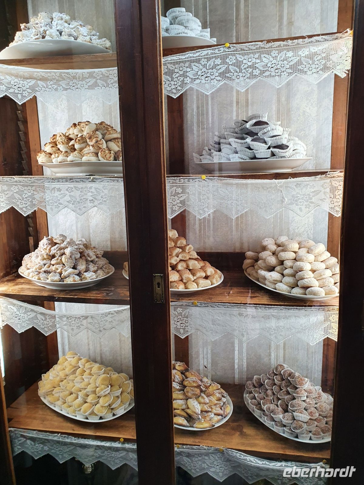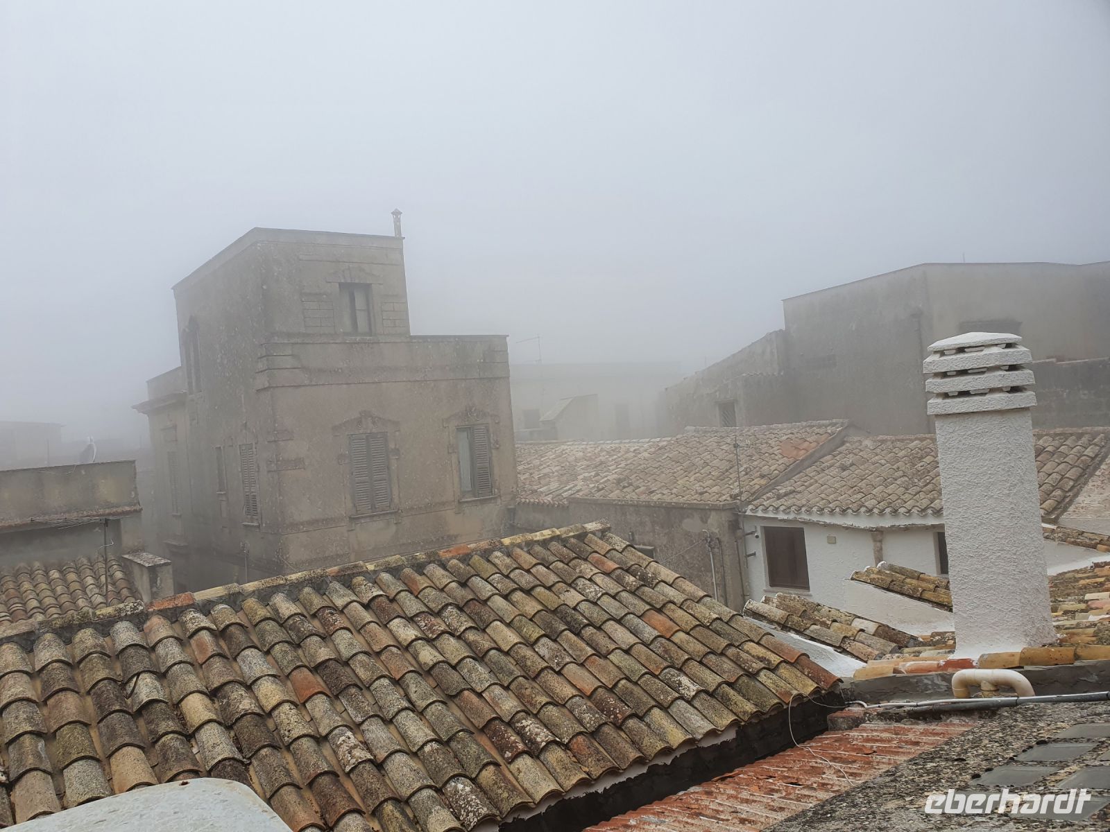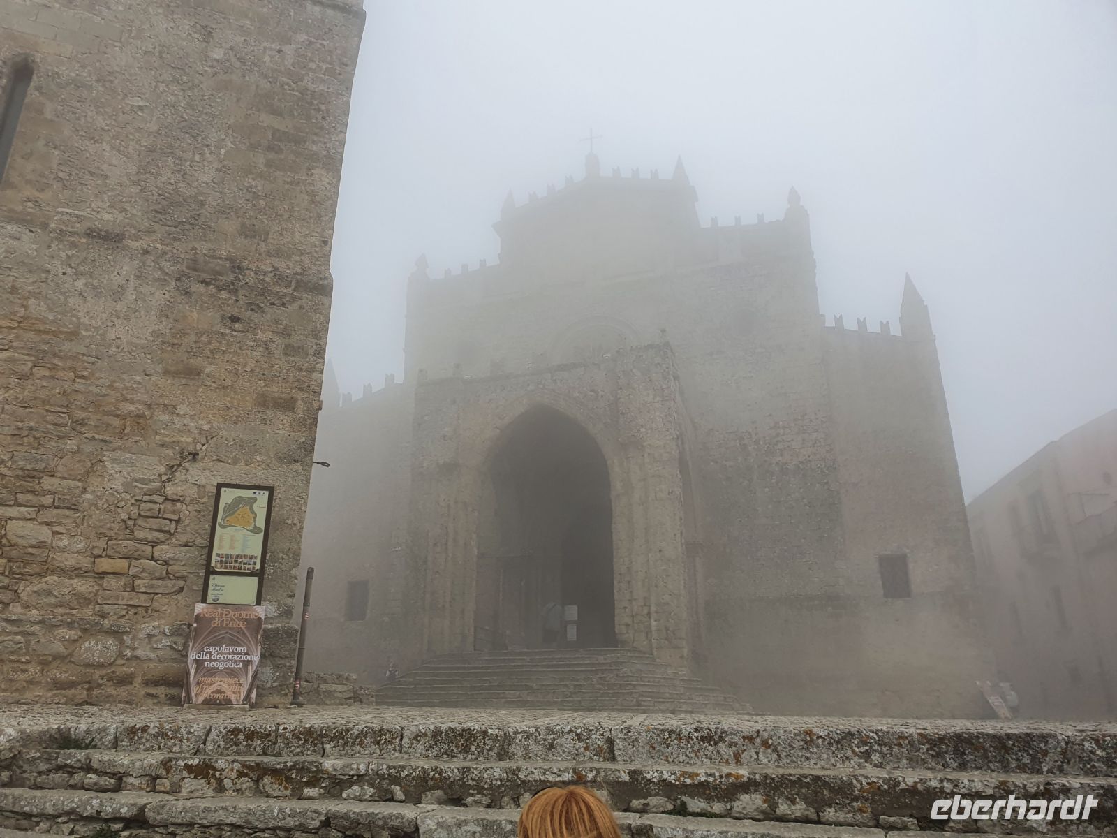 Auf der Weiterfahrt sahen wir schon den Berg, auf dem Erice liegt. Leider war er in eine Wolke gehüllt und so konnten wir nur hoffen....Eine Serpentinenstrasse führte hinauf auf 750 m Höhe und oben waren wir leider in den Wolken. Wir besichtigten die Kirche, dann die Bäckerei von Maria Grammatico und dort probierten wir die Marzipan Köstlichkeiten. Im Nebel spazierten wir zum Aussichtspunkt, aber die Aussicht blieb uns verwehrt. Dennoch war es ein schöner Aufenthalt mit vielen Einkaufsmöglichkeiten.
