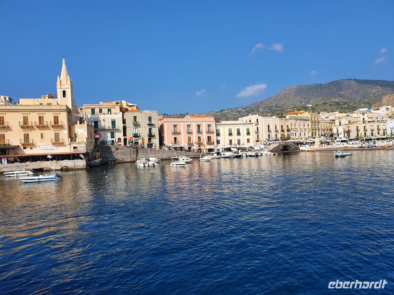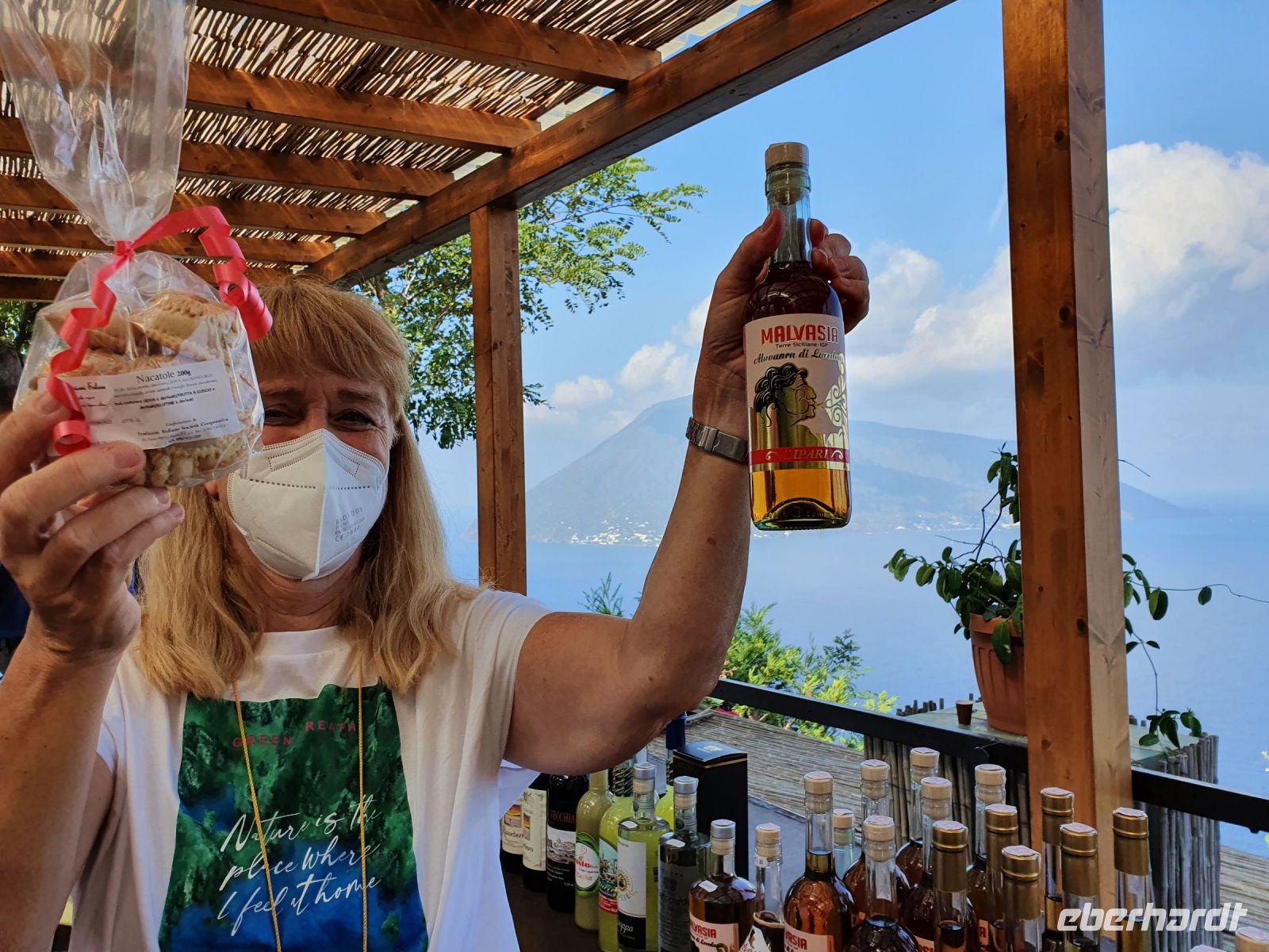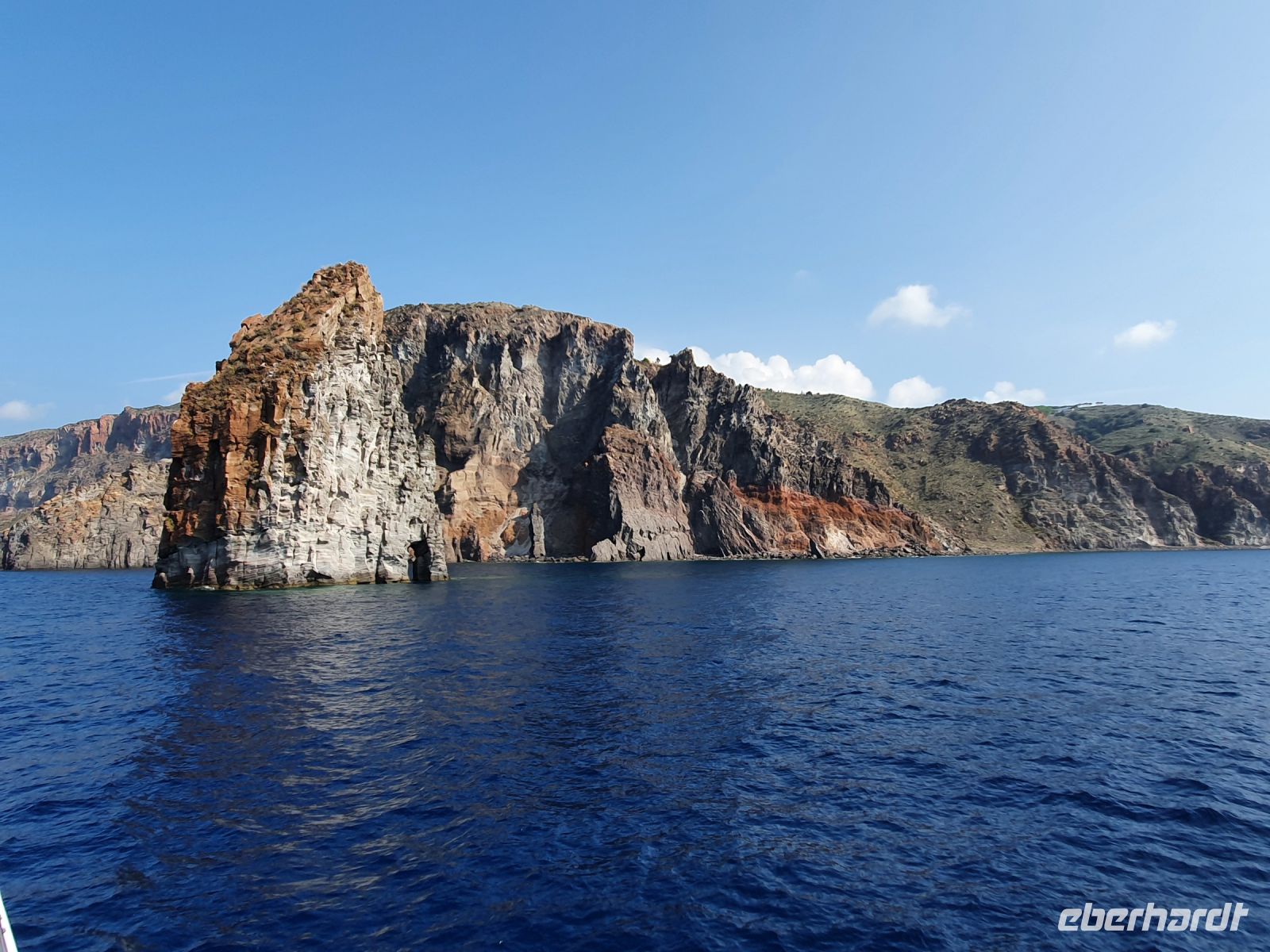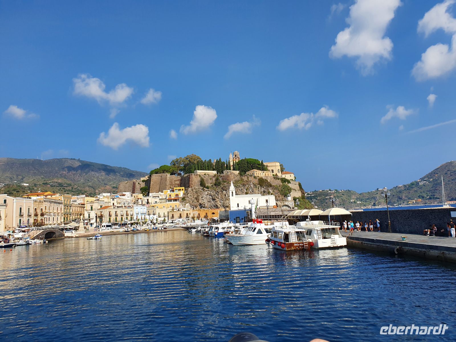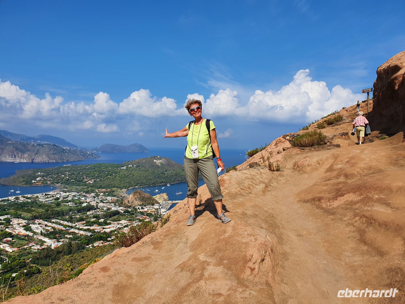Im Hafen von Milazzo gingen wir an Bord des Schiffes Eolian King und fuhren mit vielen anderen Gruppen hinüber nach Lipari. Unterwegs wurden verschiedene Grotten und Felsen angesteuert und in Lipari legten wir im kleinen Hafen Marina Corta an. Dort stand für unsere Gruppe schon ein kleiner Minibus bereit und brachte uns auf einer Rundfahrt zu den schönsten Aussichtspunkten der Insel Lipari. Vorbei an den ehemaligen Bimssteinbrüchen und zu 2 Kiosken, wo wir regionale Produkte verkosten und kaufen konnten. Danach blieb noch Zeit für individuelle Erkundungen im Zentrum. Nur 15 min. Bootsfahrt war die Insel Vulcano entfernt und dort gab es die Möglichkeit, am schwarzen Lavastrand zu baden, ein Mittagessen einzunehmen oder mit mir bis zum Kraterrand auf den Vulkan zu wandern. So kam jeder auf seine Kosten und wieder am Schiff tauschten wir unsere Erlebnisse aus. Nach einer Stunde Bootsfahrt erreichten wir wieder Milazzo und wurden von Guiseppe mit dem Bus schon erwartete. Ein sehr erlebnisreicher Ausflugstag ging damit zu Ende.