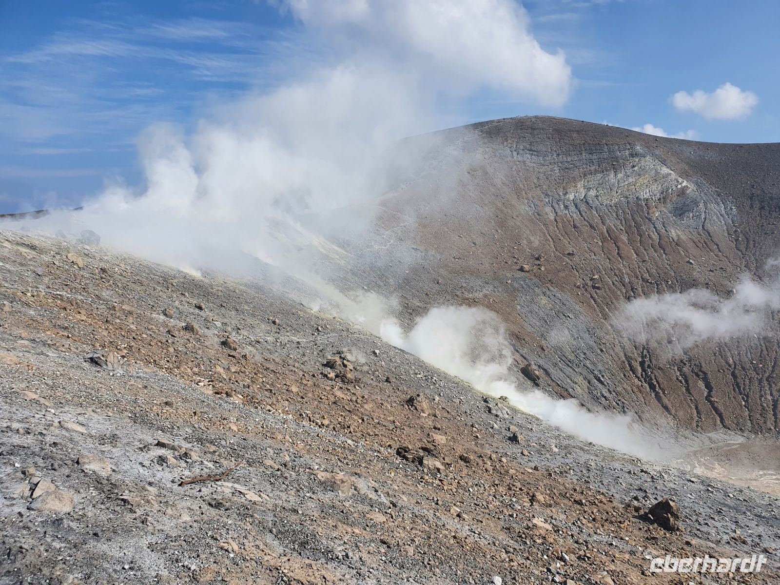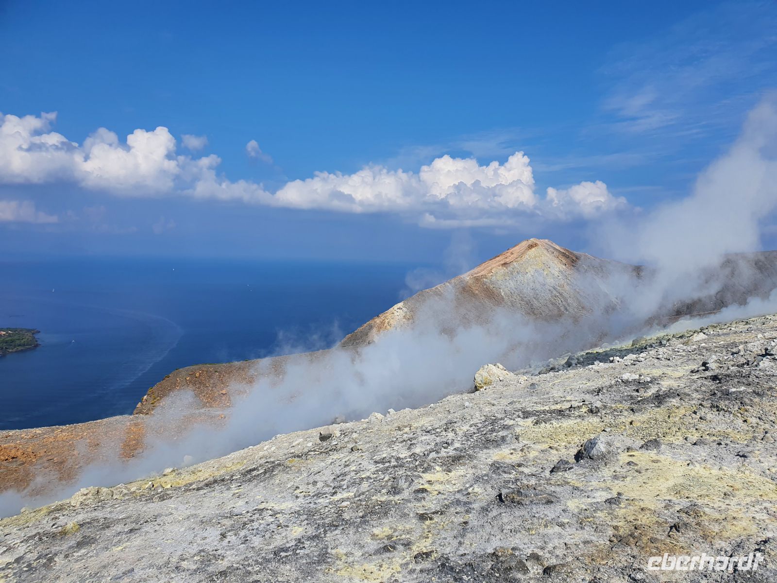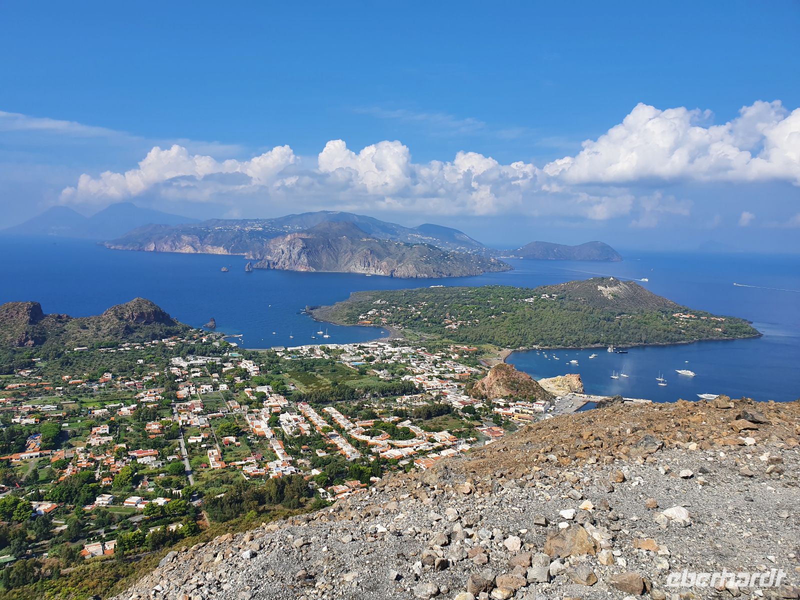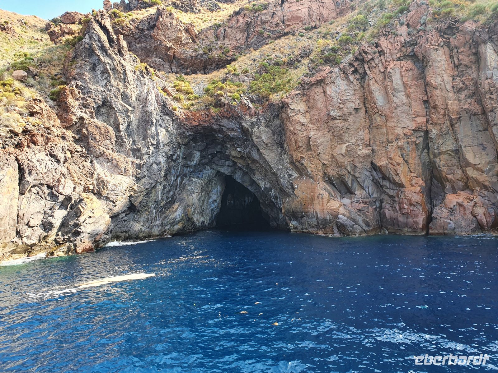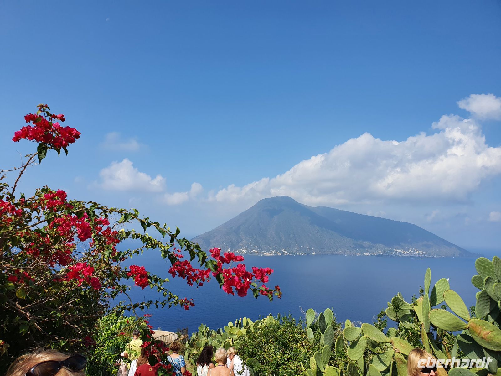 Im Hafen von Milazzo gingen wir an Bord des Schiffes Eolian King und fuhren mit vielen anderen Gruppen hinüber nach Lipari. Unterwegs wurden verschiedene Grotten und Felsen angesteuert und in Lipari legten wir im kleinen Hafen Marina Corta an. Dort stand für unsere Gruppe schon ein kleiner Minibus bereit und brachte uns auf einer Rundfahrt zu den schönsten Aussichtspunkten der Insel Lipari. Vorbei an den ehemaligen Bimssteinbrüchen und zu 2 Kiosken, wo wir regionale Produkte verkosten und kaufen konnten. Danach blieb noch Zeit für individuelle Erkundungen im Zentrum. Nur 15 min. Bootsfahrt war die Insel Vulcano entfernt und dort gab es die Möglichkeit, am schwarzen Lavastrand zu baden, ein Mittagessen einzunehmen oder mit mir bis zum Kraterrand auf den Vulkan zu wandern. So kam jeder auf seine Kosten und wieder am Schiff tauschten wir unsere Erlebnisse aus. Nach einer Stunde Bootsfahrt erreichten wir wieder Milazzo und wurden von Guiseppe mit dem Bus schon erwartete. Ein sehr erlebnisreicher Ausflugstag ging damit zu Ende.