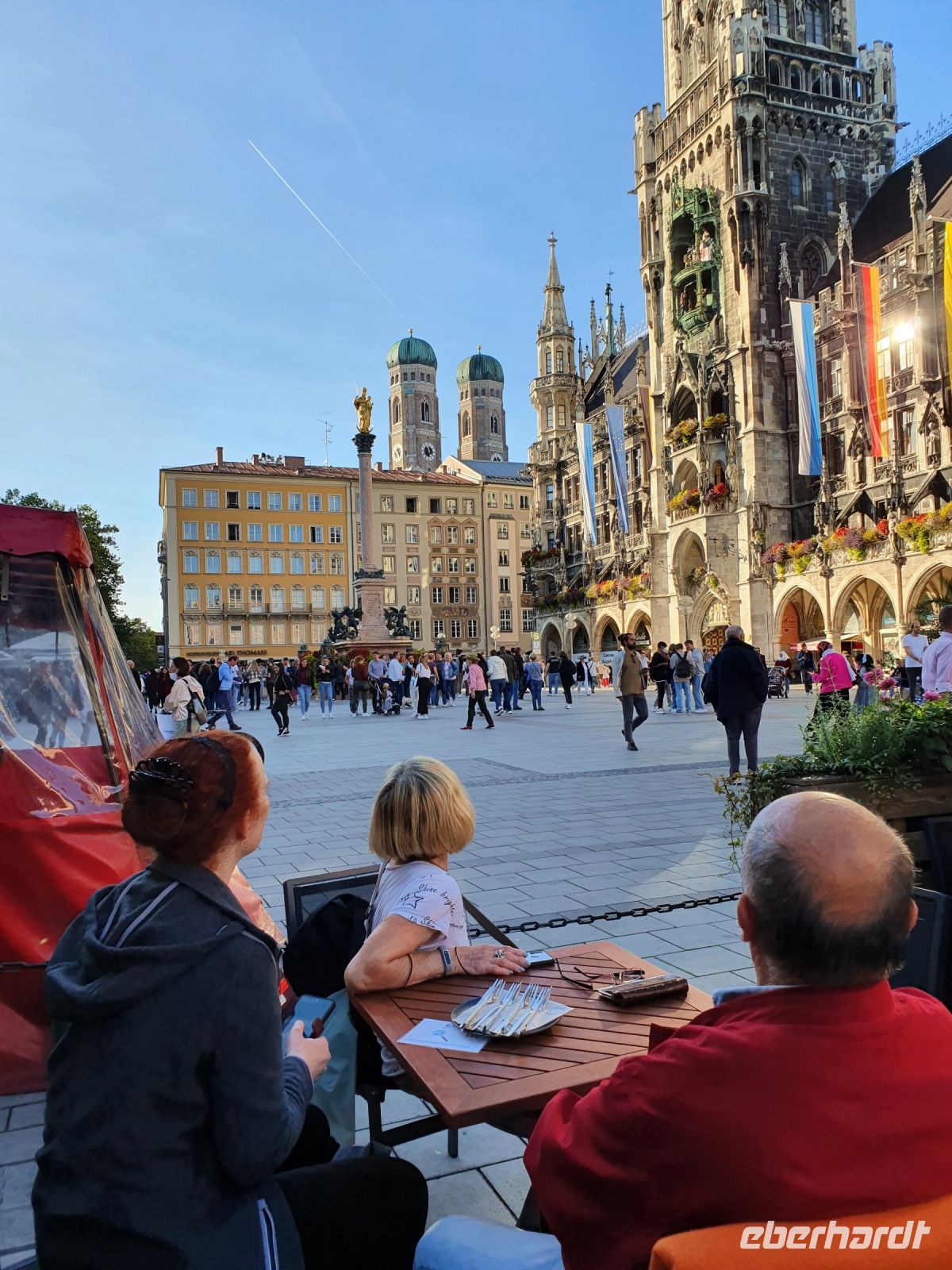 Nach dem letzten Frühstück verabschiedeten wir uns, denn wir flogen zu verschiedenen Zeiten zurück und einige Gäste blieben noch auf Sizilien. Unser Flug über München nach Dresden hatte einen sehr langen Aufenthalt und die überbrückten wir mit einem Besuch in Münchens Innenstadt. Mit der S Bahn fuhren wir bis zum Marienplatz, machten dort gemeinsam einen Rundgang zur Frauenkirche, zum Stachus, Hofbräuhaus und zum Viktualienmarkt. Auf dem Marienplatz nahmen wir eine Kleinigkeit zum Abendessen ein und danach fuhren wir mit der S Bahn zurück zum Flughafen. Unser letzter Flug war pünktlich und nach 22 Uhr erreichten wir endlich Dresden, wo uns die Transferfahrer schon erwarteten und nach Hause brachten.