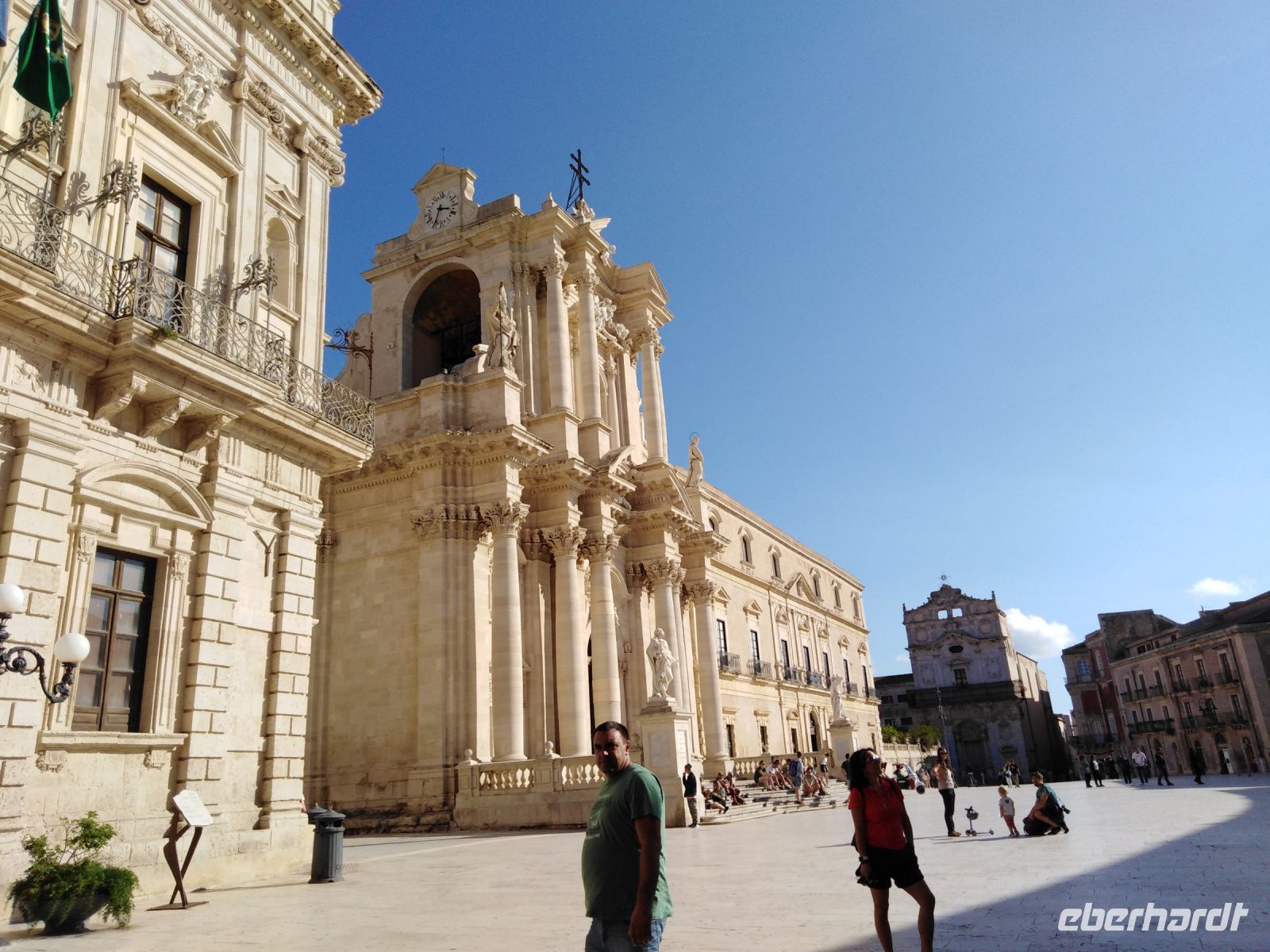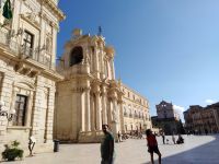 Anschließend gelangten wir mit dem Bus nach Syracus. Sylvana führte uns zunächst durch die historische Stadt, vorbei am Apollo-Tempel und der Piazza Archimedes direkt zum Dom Santa Maria delle Colonne, dem Mittelpunkt von Siracus/Ortigia.