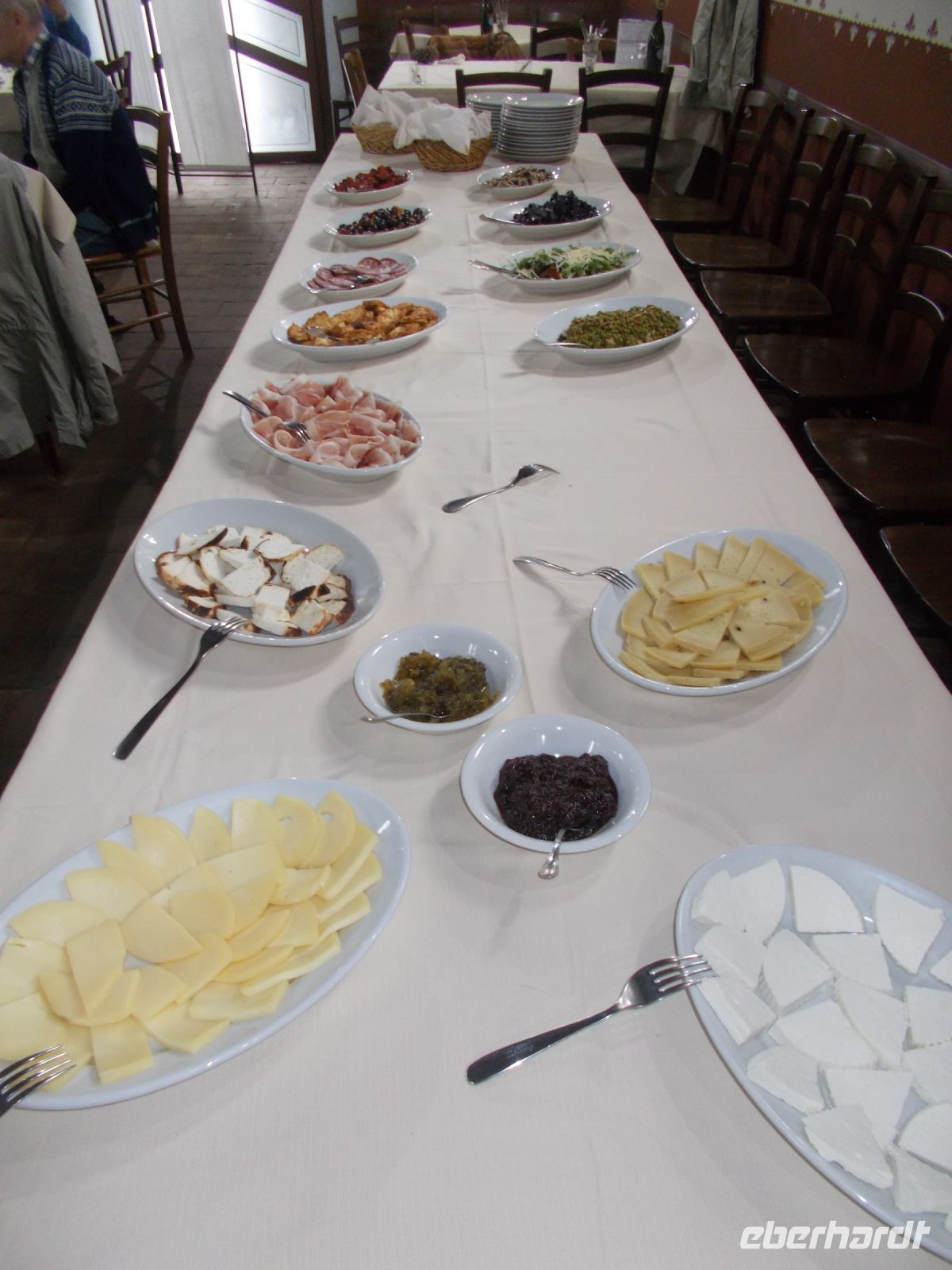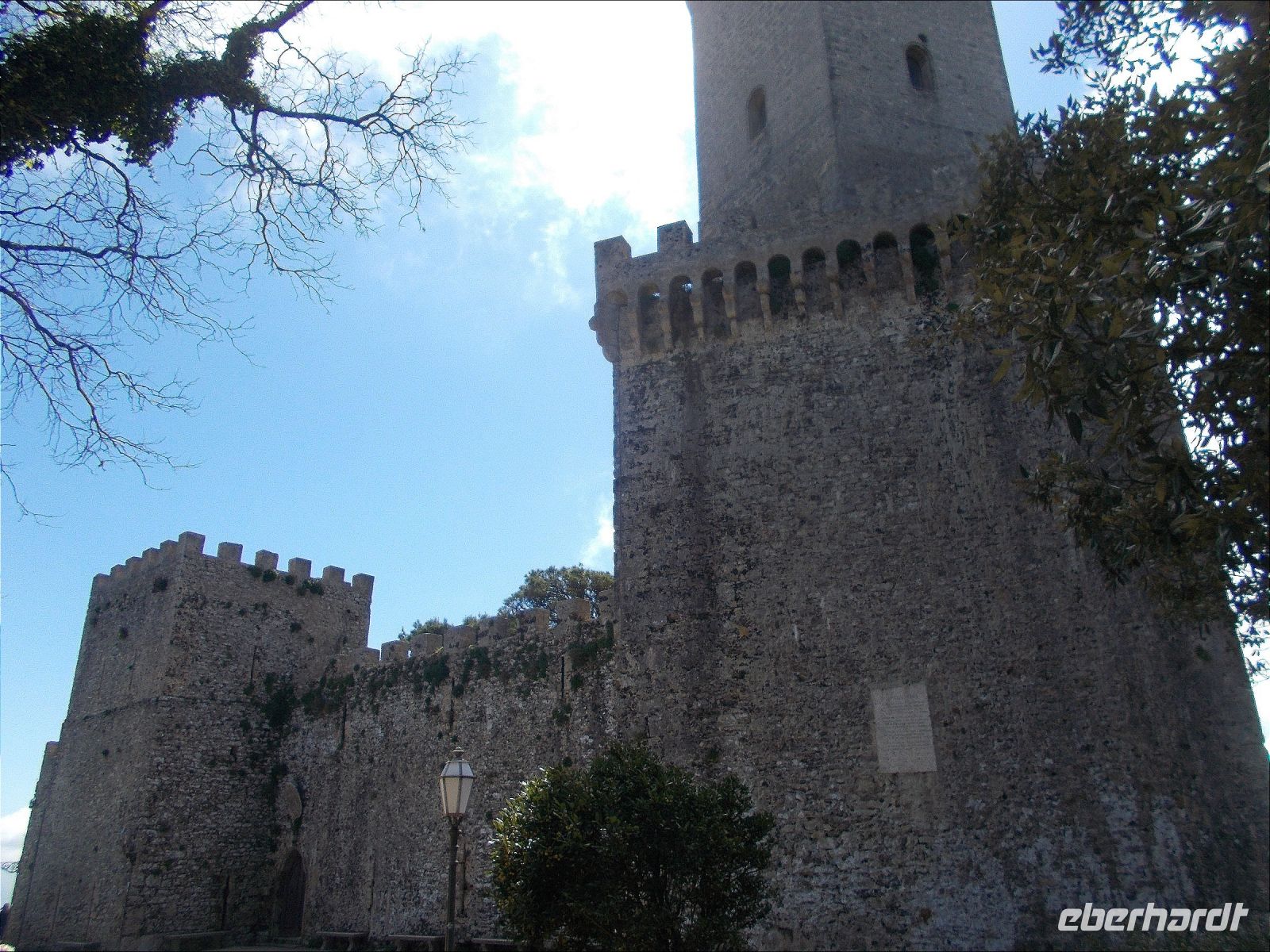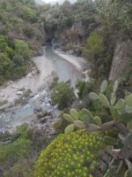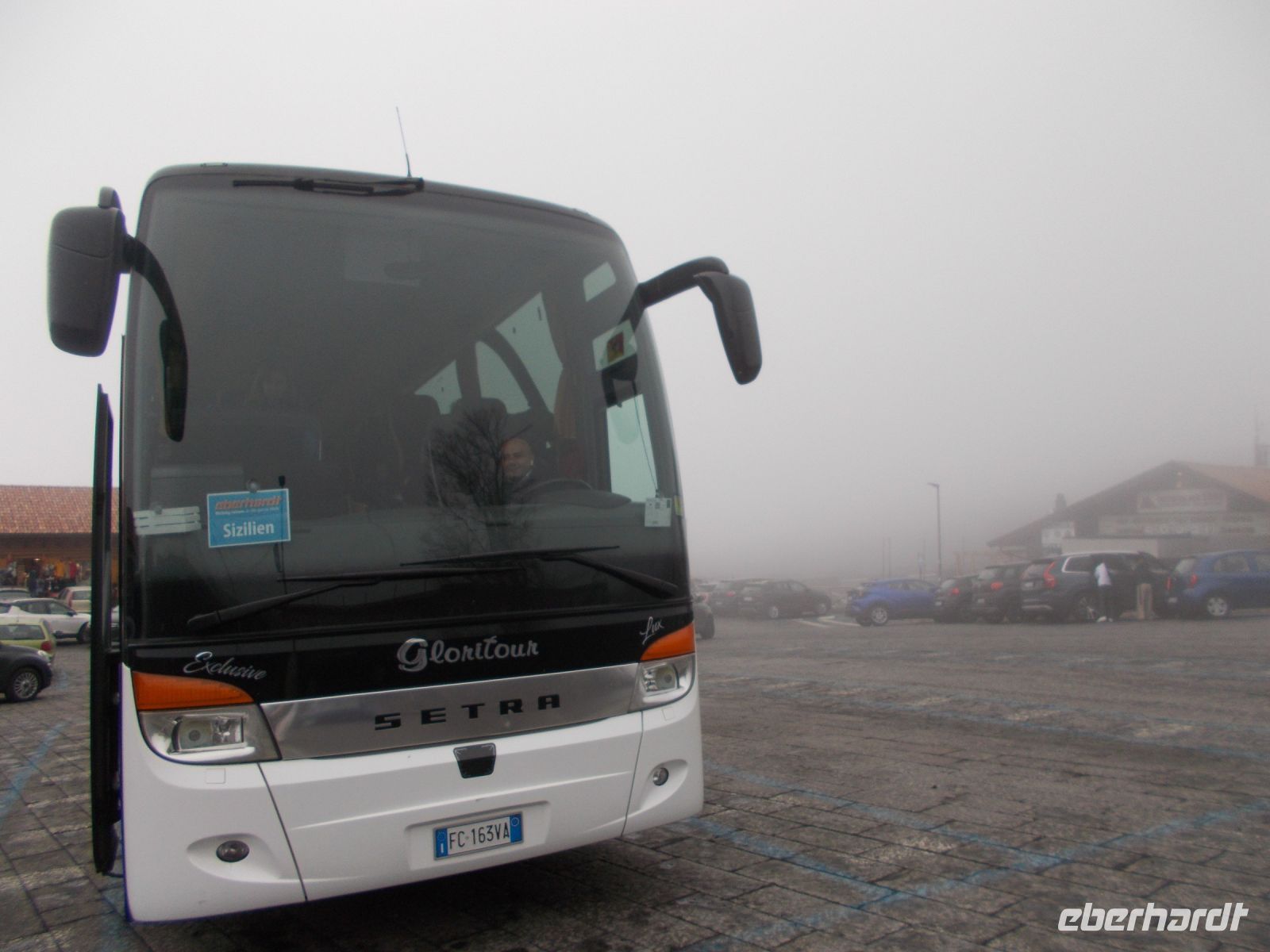 Der Scirocco verhinderte heute unseren geplanten Ausflug zu den Äolischen Inseln. Kurzentschlossen tauschten wir die Tage aus. Wir begaben uns auf „Maulwurftour“und passierten heute 74 Tunnel. Auf abenteuerlicher Straße, fuhren wir hinauf in die Berglandschaft des Nebrodi Gebirges. Wir saßen im Bus und ließen uns chauffieren. Die Strecke wird aber auch von der Giro d`Sizilia befahren.!!! Der Sturm wird immer stärker .Wir bekommen es beim Aussteigen in Montalbano zu spüren .Trotzdem versuchen wir die Normannenburg zu erklimmen und das kleine Museum zu besichtigen. Der Wind pustete uns wieder zum Bus und weiter ging es zu der Hochebene von Agrimusco. Die Megalithen gehören zu einer einzigartigen Geologie Siziliens ,aus der Bronzezeit. Leider sahen wir nicht die Hand vor Augen und somit auch keine Steine. Der Nebel wurde noch dichter ,der Sturm fegte immer schneller. Eine absolute Herausforderung an das Können unseres Busfahrers. Er meisterte die Situation hervorragend. Erleichtert und zufrieden erreichten wir das Agriturismo „Borgo San Nicolao“,wo wir zum Essen erwartet wurden. Nach der Hofbesichtigung wurden die ,selbst produzierten, Speisen, aufgetischt. Welch köstliche Leckereien, wir hätten laut „schmatzen“können. Nach einem ausgedehnten Aufenthalt erreichten wir das Alcantara Tal. Der Scirocco hatte sich etwas beruhigt. So konnten wir, in aller Ruhe, unseren Spaziergang, durch den neu angelegten Park, beginnen. Von einigen Stellen hatten wir einen wundervollen Blick in die Schlucht hinab. Den Abend verbrachten wir wieder im Hotel am Meer und wer wollte unternahm noch einen kleinen Bummel am Strand.