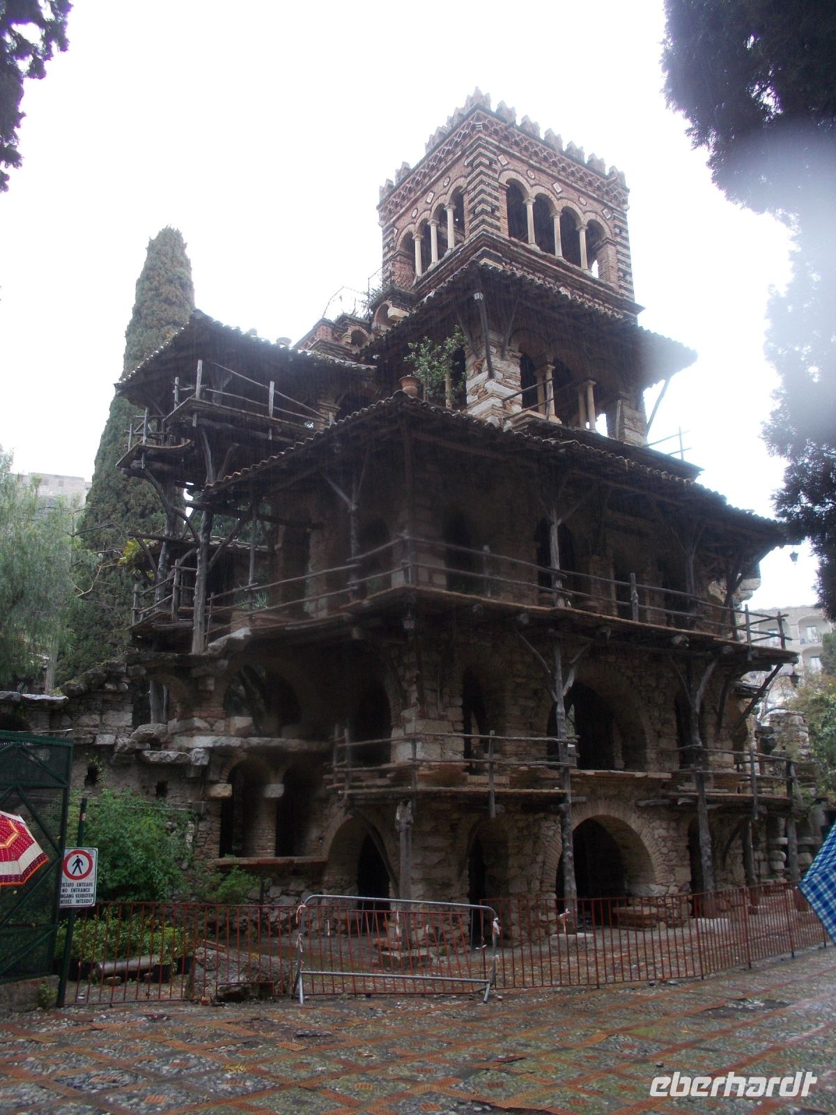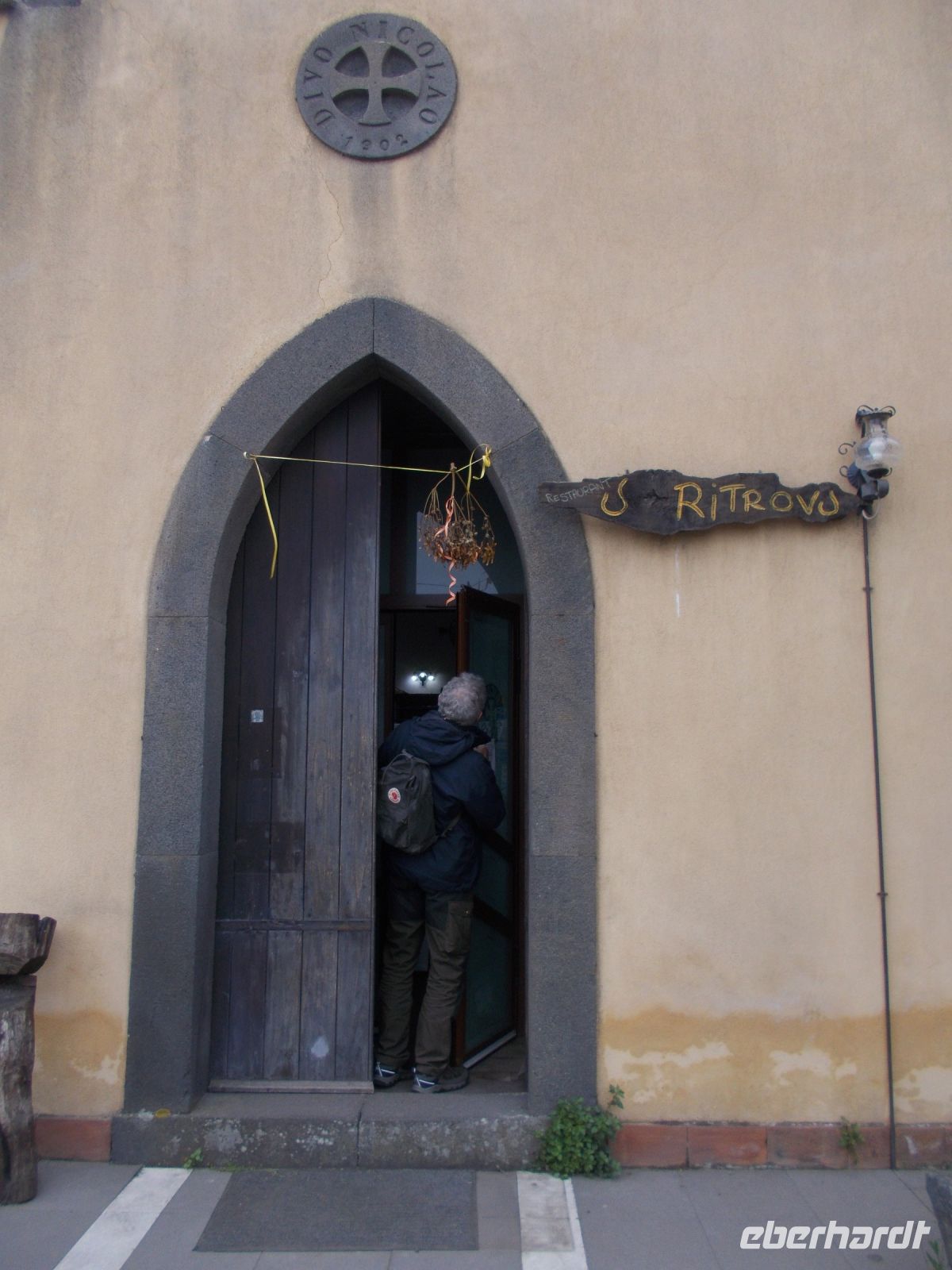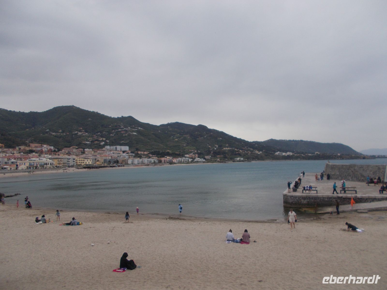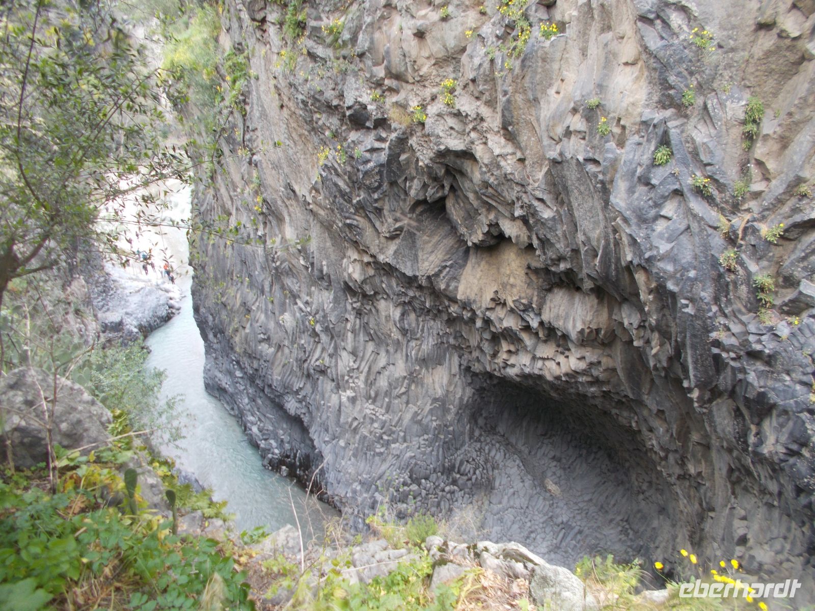 Der Scirocco verhinderte heute unseren geplanten Ausflug zu den Äolischen Inseln. Kurzentschlossen tauschten wir die Tage aus. Wir begaben uns auf „Maulwurftour“und passierten heute 74 Tunnel. Auf abenteuerlicher Straße, fuhren wir hinauf in die Berglandschaft des Nebrodi Gebirges. Wir saßen im Bus und ließen uns chauffieren. Die Strecke wird aber auch von der Giro d`Sizilia befahren.!!! Der Sturm wird immer stärker .Wir bekommen es beim Aussteigen in Montalbano zu spüren .Trotzdem versuchen wir die Normannenburg zu erklimmen und das kleine Museum zu besichtigen. Der Wind pustete uns wieder zum Bus und weiter ging es zu der Hochebene von Agrimusco. Die Megalithen gehören zu einer einzigartigen Geologie Siziliens ,aus der Bronzezeit. Leider sahen wir nicht die Hand vor Augen und somit auch keine Steine. Der Nebel wurde noch dichter ,der Sturm fegte immer schneller. Eine absolute Herausforderung an das Können unseres Busfahrers. Er meisterte die Situation hervorragend. Erleichtert und zufrieden erreichten wir das Agriturismo „Borgo San Nicolao“,wo wir zum Essen erwartet wurden. Nach der Hofbesichtigung wurden die ,selbst produzierten, Speisen, aufgetischt. Welch köstliche Leckereien, wir hätten laut „schmatzen“können. Nach einem ausgedehnten Aufenthalt erreichten wir das Alcantara Tal. Der Scirocco hatte sich etwas beruhigt. So konnten wir, in aller Ruhe, unseren Spaziergang, durch den neu angelegten Park, beginnen. Von einigen Stellen hatten wir einen wundervollen Blick in die Schlucht hinab. Den Abend verbrachten wir wieder im Hotel am Meer und wer wollte unternahm noch einen kleinen Bummel am Strand.