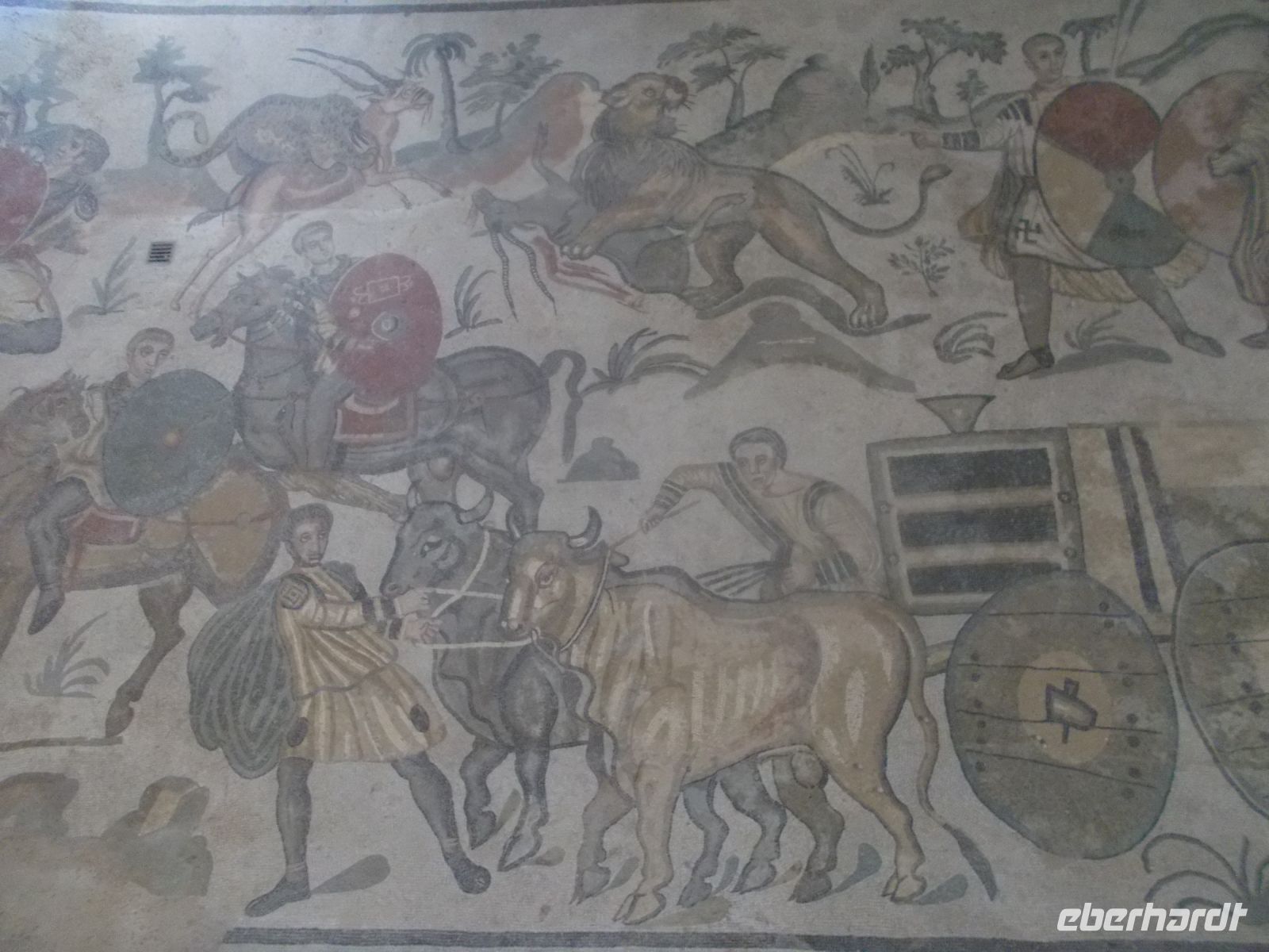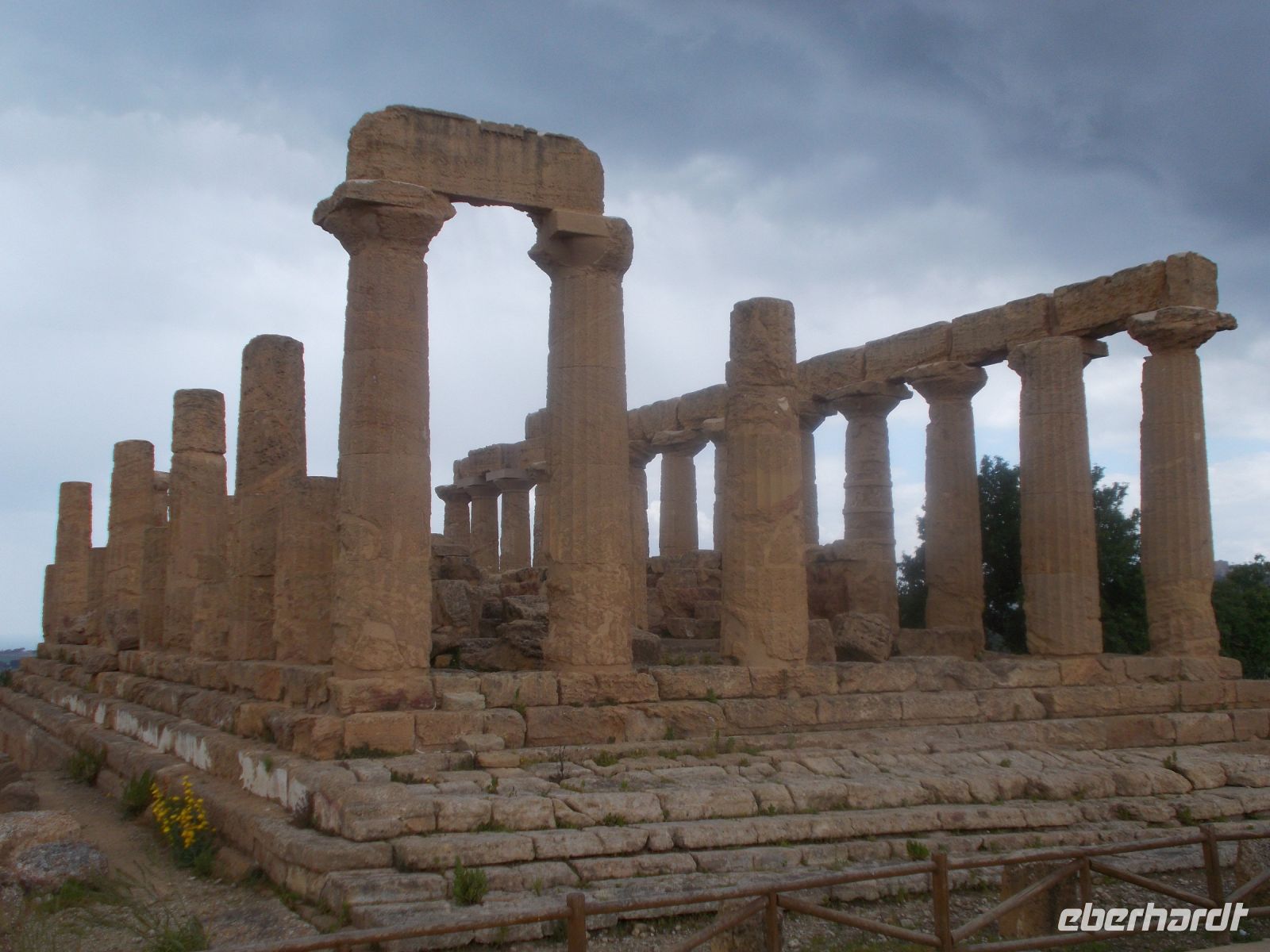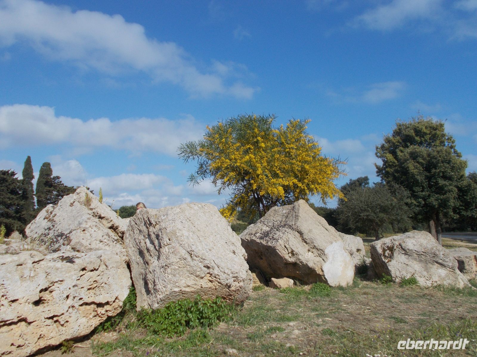 Kaum hatten wir uns im Hotel zurecht gefunden ,hieß es Koffer packen. Unser Weg führte uns weg von Ionischen Meer ,hin ins Landesinnere.Vorbei an Weizenfeldern und stillgelegten Schwefelmienen veränderte sich die Landschaft immer wieder. Von weitem sahen wir Enna, die höchst gelegene Stadt Siziliens. Noch wenige Kilometer und wir tauchten ein in die Geschichte der Römer. Die Villa Romana del Casale gehört seit 1997 zum UNESCO Weltkulturerbe und besticht durch die einzigartigen Mosaikböden. Weiter führte uns der Weg ,Richtung Meer, nach Agrigent ,ins Tal der Tempel. Wir waren fasziniert von der Baukunst der Griechen. Einst bezeichnete man die Ansiedlung als“schönste der sterblichen Städte“. Die sehr gut erhaltenen Tempel sind der Götterwelt geweiht. Leider überraschte uns auch heute wieder der Regen ,aber wir trotzten dem Wasser und setzten unseren Rundgang interessiert fort. Auf der Fahrt zum Hotel kauften wir eine Kiste Navel- Apfelsienen und ließen uns die zuckersüßen Früchte gut schmecken. Den Weg zum Hotel prägten nun Mandelbäume und Weinreben. Heute übernachteten wir in einem Landhotel „Case di Latomie“,mitten in einem Olivenhain gelegen, in sehr rustikalen Zimmern. Das Abendessen entpuppte sich als lukullischer Genuss und dazu ließen wir uns den Hauswein schmecken.