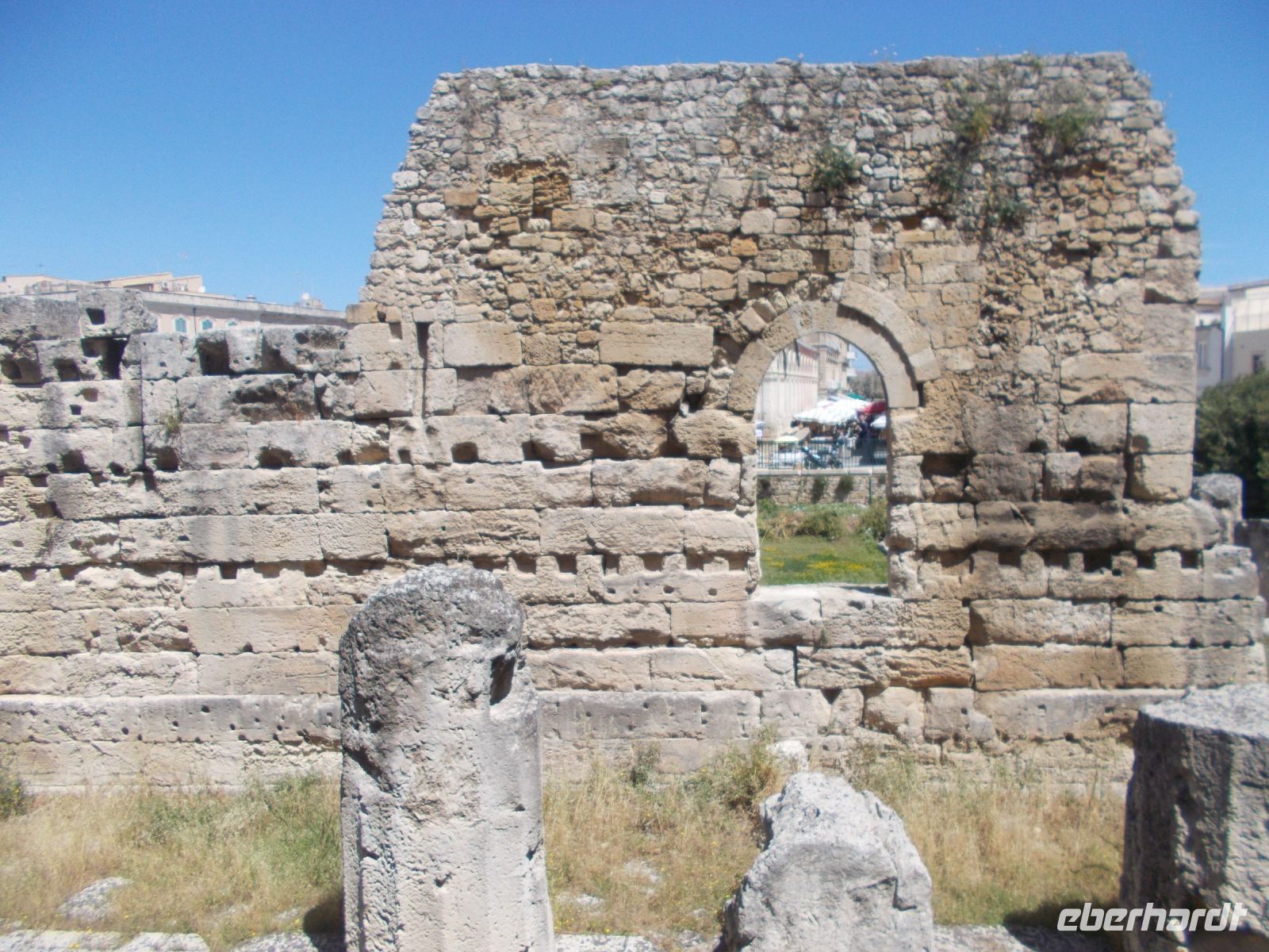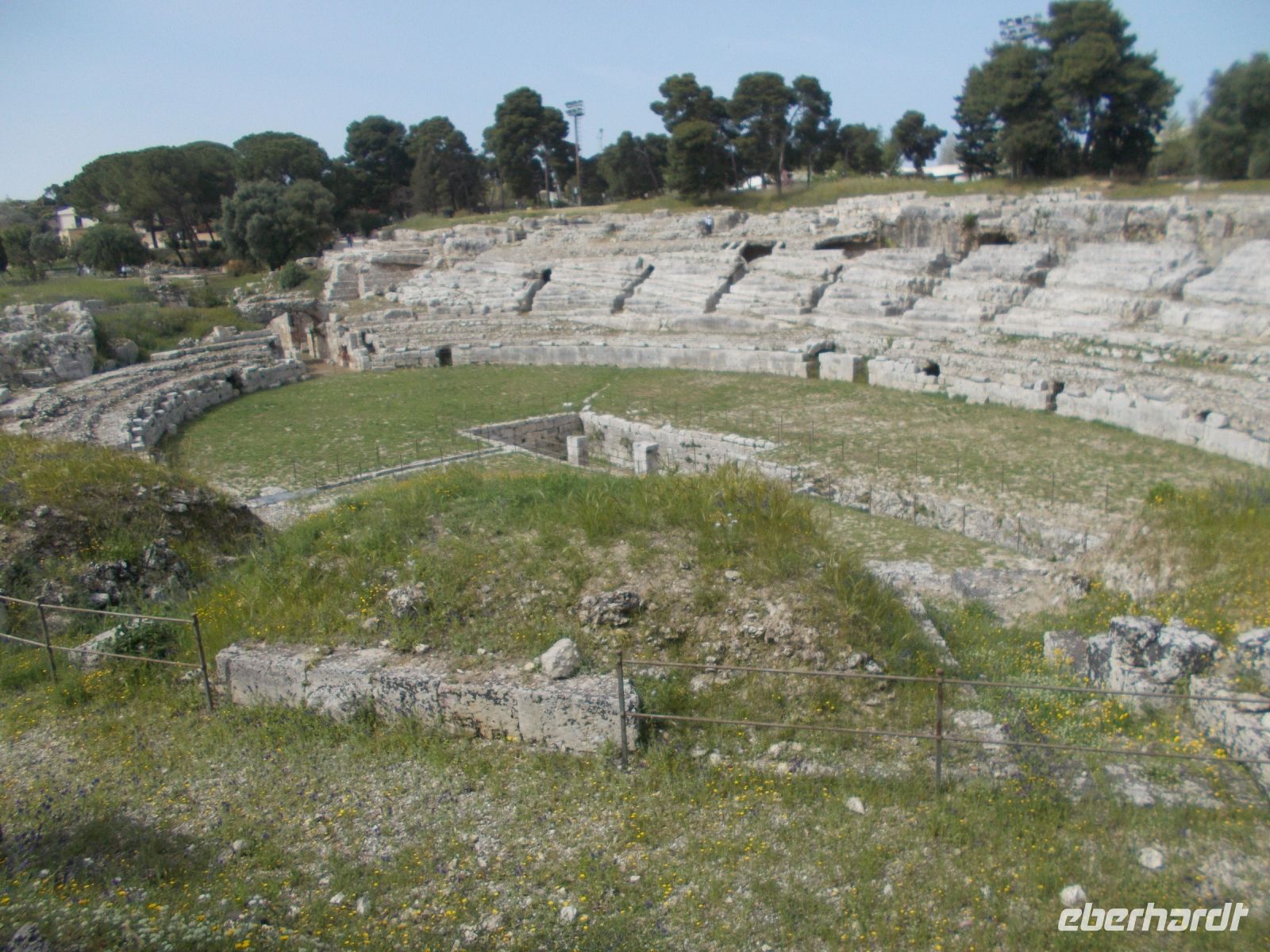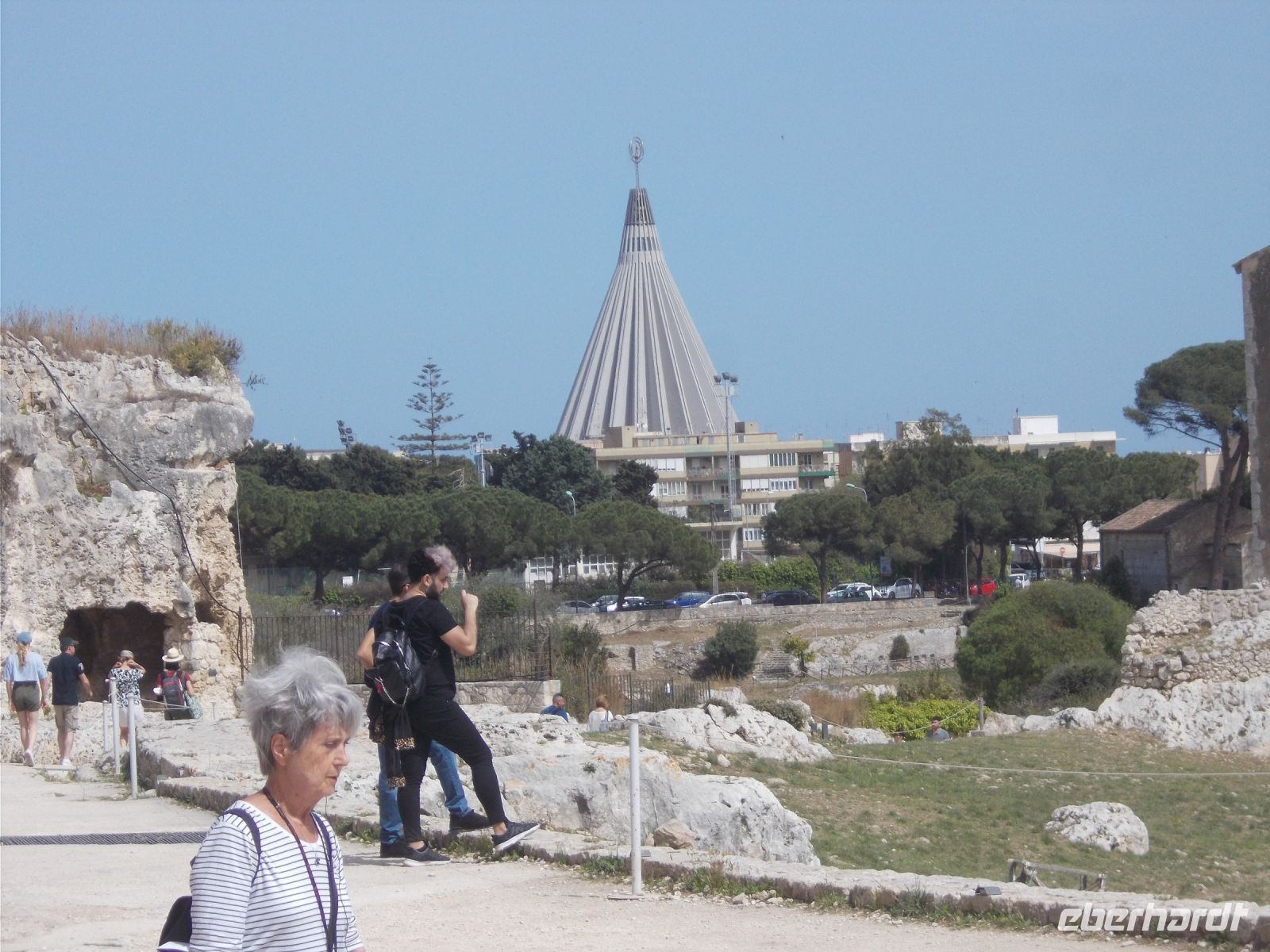 Unser letzter ,gemeinsamer Ausflug führte uns in die „einst größte und reichste, von den Griechen, gegründete Stadt .Wir begannen unseren Rundgang in Ortigia. Die gesamte Altstadt ist vom Wasser umgeben. Hier lebte einst auch, der uns allen bekannte, Archimedes. Nach eingehender Besichtigung trafen wir uns ,an den Resten, des Apollo Tempels um über die Ponte Nuovo diese beeindruckende Insel zu verlassen. In kurzer Entfernung erreichten wir die Neustadt -Neapoli-wo der Parco Archeologico della Neapolis liegt. Zuerst zog es uns zum „Ohr des Dionysios“, zur Grotte des legendären Tyrannen. Hier soll er seine Gefangenen belauscht haben. Auch wir bekamen hier etwas zu hören ,nämlich mit markanter Stimme vorgetragenes Liedgut. Das größte Theater der griechischen Welt ,das Teatro Greco, war unser nächstes Ziel. Vorbei an den neuesten Ausgrabungen ,dem Opfer Altar und dem Anfiteatro Romano, verließen wir diesen historischen Ort ,der 2005 zum UNESCO Weltkulturerbe erklärt wurde.