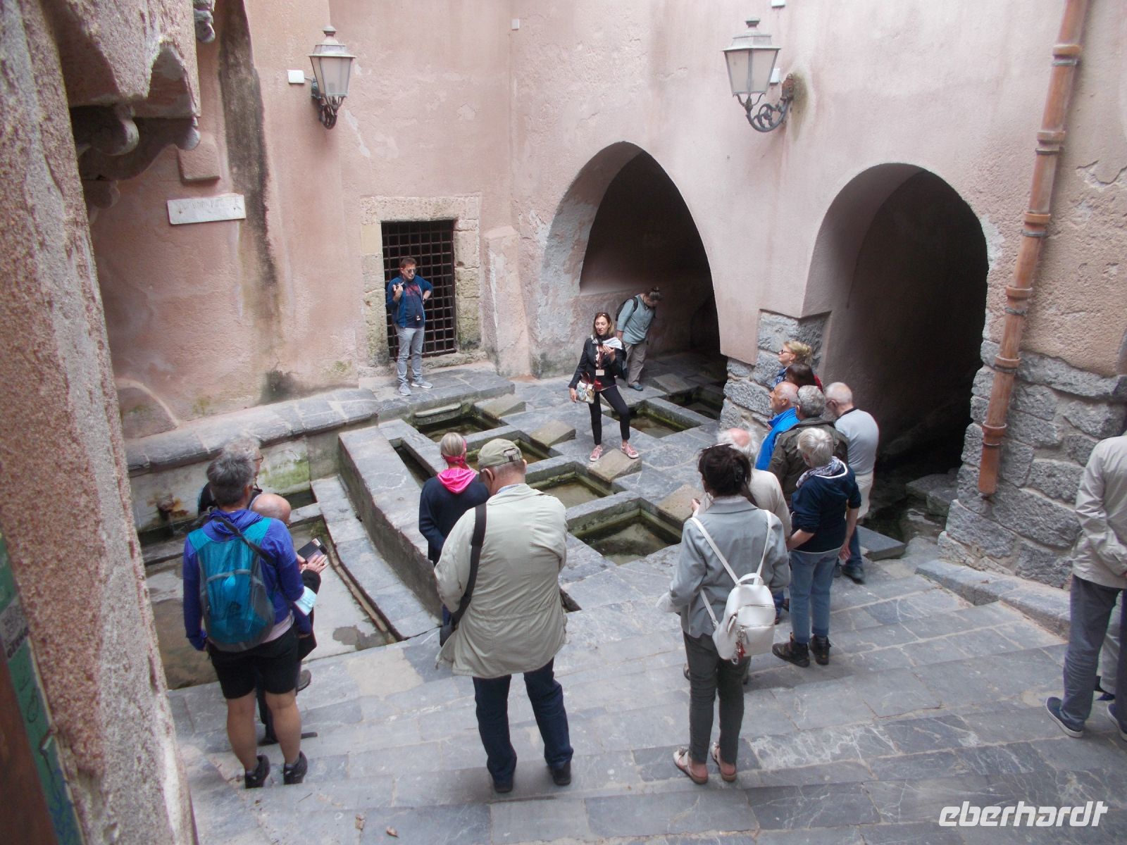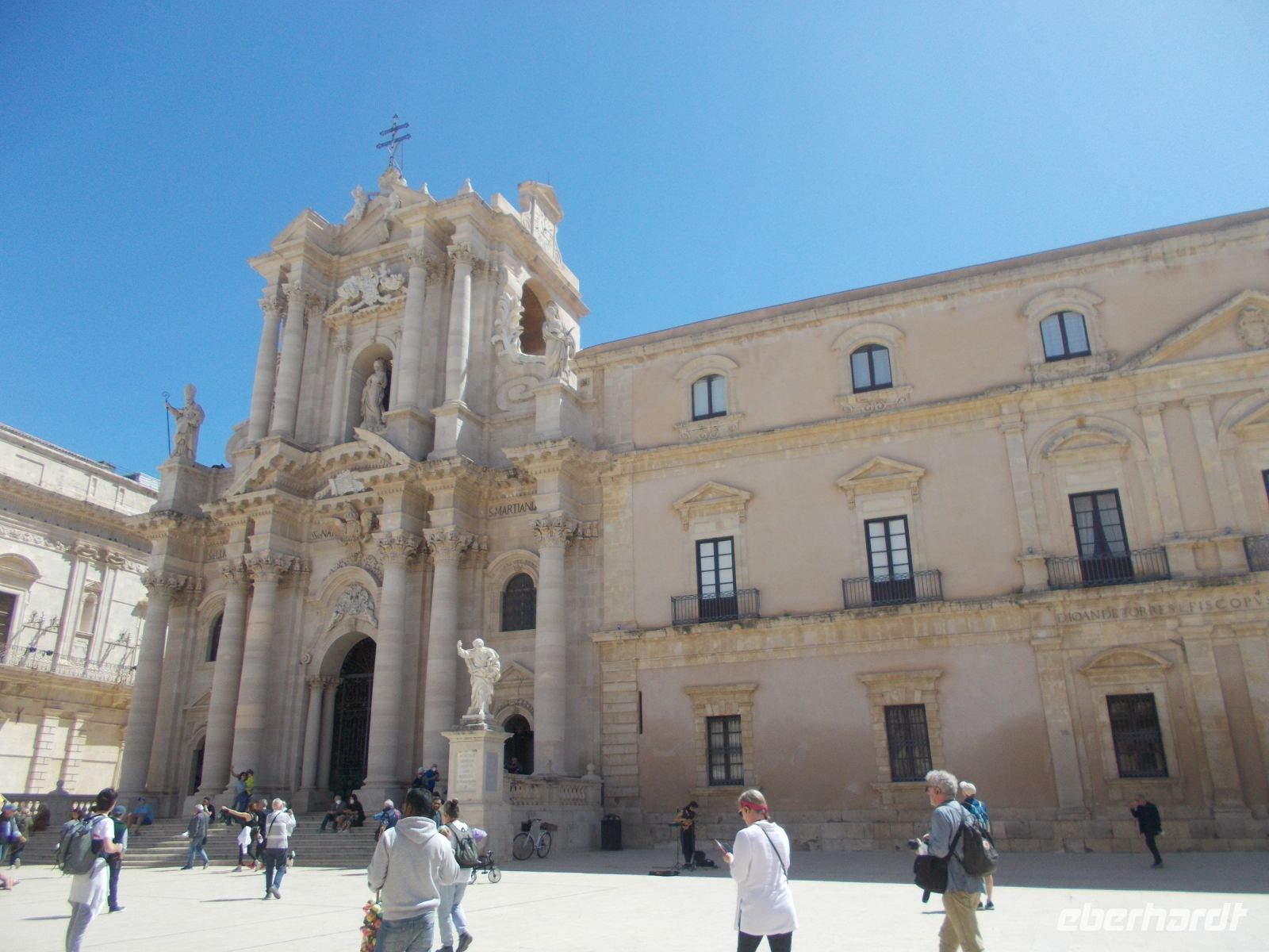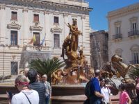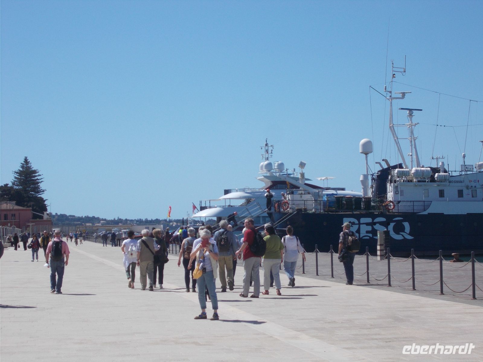 Unser letzter ,gemeinsamer Ausflug führte uns in die „einst größte und reichste, von den Griechen, gegründete Stadt .Wir begannen unseren Rundgang in Ortigia. Die gesamte Altstadt ist vom Wasser umgeben. Hier lebte einst auch, der uns allen bekannte, Archimedes. Nach eingehender Besichtigung trafen wir uns ,an den Resten, des Apollo Tempels um über die Ponte Nuovo diese beeindruckende Insel zu verlassen. In kurzer Entfernung erreichten wir die Neustadt -Neapoli-wo der Parco Archeologico della Neapolis liegt. Zuerst zog es uns zum „Ohr des Dionysios“, zur Grotte des legendären Tyrannen. Hier soll er seine Gefangenen belauscht haben. Auch wir bekamen hier etwas zu hören ,nämlich mit markanter Stimme vorgetragenes Liedgut. Das größte Theater der griechischen Welt ,das Teatro Greco, war unser nächstes Ziel. Vorbei an den neuesten Ausgrabungen ,dem Opfer Altar und dem Anfiteatro Romano, verließen wir diesen historischen Ort ,der 2005 zum UNESCO Weltkulturerbe erklärt wurde.