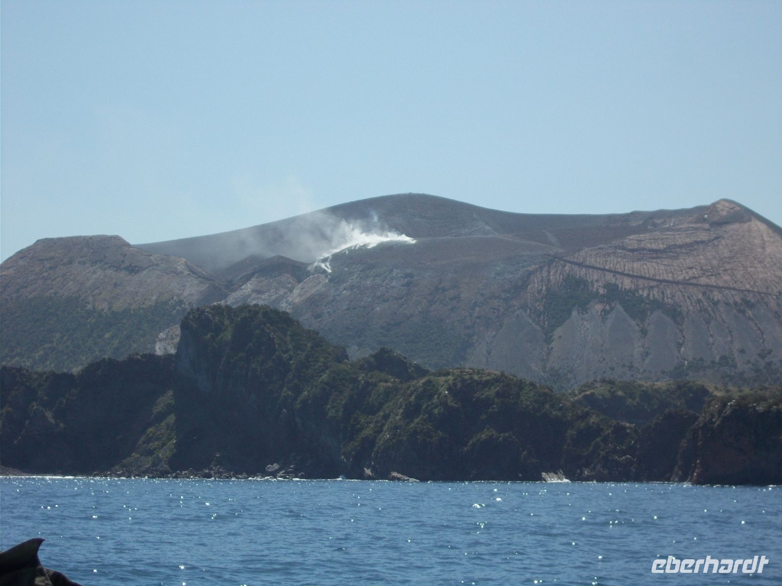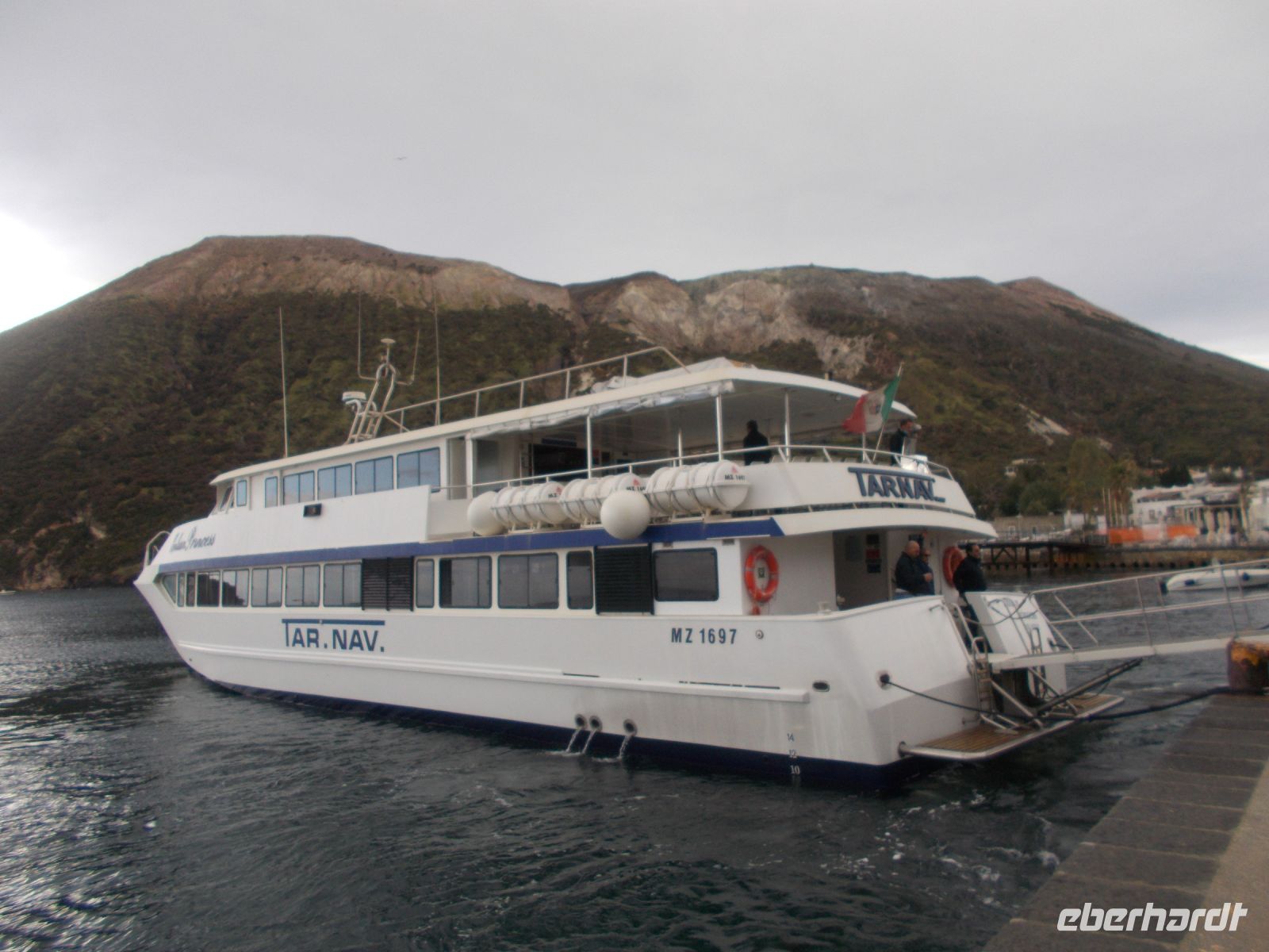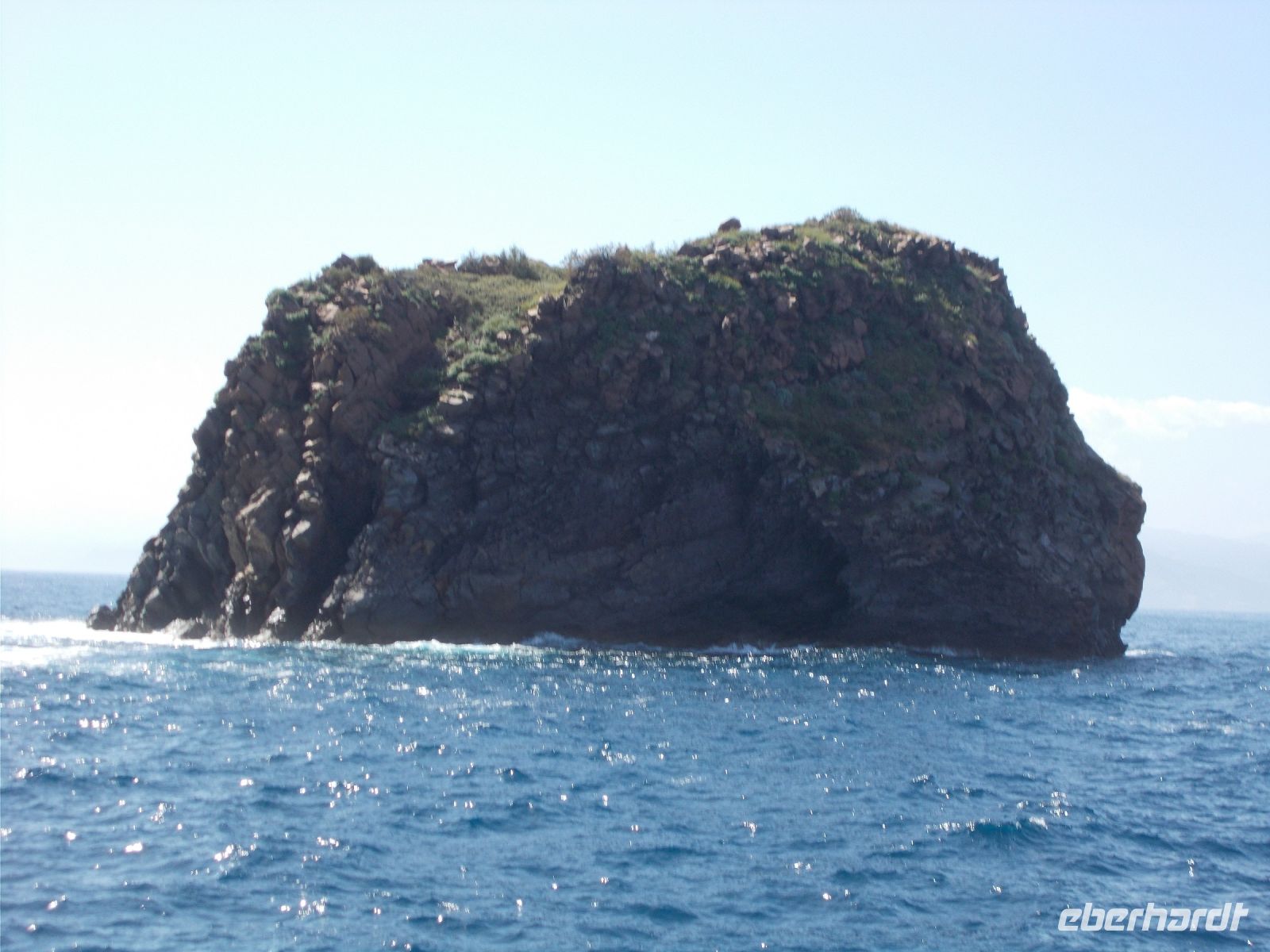 Der Wettergott hatte einsehen mit uns und ließ besseres Wetter zu. Wir konnten unseren gestrigen Ausflug zu den Inseln nachholen. Die Koffer wurden verstaut und ab ging es zum Hafen von Milazzo. Das Schiff stand bereit und wir nahmen Kurs auf Lipari. Zuerst drehte der Kapitän noch eine Rund auf See ,so das wir die Inselwelt vom Meer aus bestaunen konnten. Unweit vom Hafen erwartete uns ein Bus zur Inselrundfahrt. Wir sahen die stillgelegten Kalksteinwerke. Irgendwann einmal sollen sie ein Freiluftmuseum werden. Wir aber sammelten schon jetzt Bimssteine am Strand und fanden sogar Obsidane. Wer wollte erstand noch Kapern in Salz eigelegt. Sollten sie doch die“besten der Welt“sein. Nach einer kleinen Freizeit setzten wir über zur Insel Vulcano. Bekannt sind hier die Schwefelbäder .Wir konnten sie vor allem riechen, denn ans Baden war ,wegen Corona, nicht zu denken. Der Wanderweg hinauf zum Vulkanrand war auch nicht zu begehen. “Er“ hustete noch zu viel Schwefeldämpfe aus. So begnügten wir uns mit einem kleinen Rundgang und naschten gutes Eis. Das Schiff brachte uns ,bei ruhiger See, zurück nach Milazzo und der Bus anschließend zu unserem ,schon bekannten, Hotel nach Letojanni.