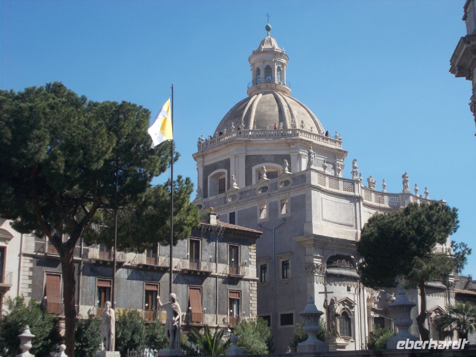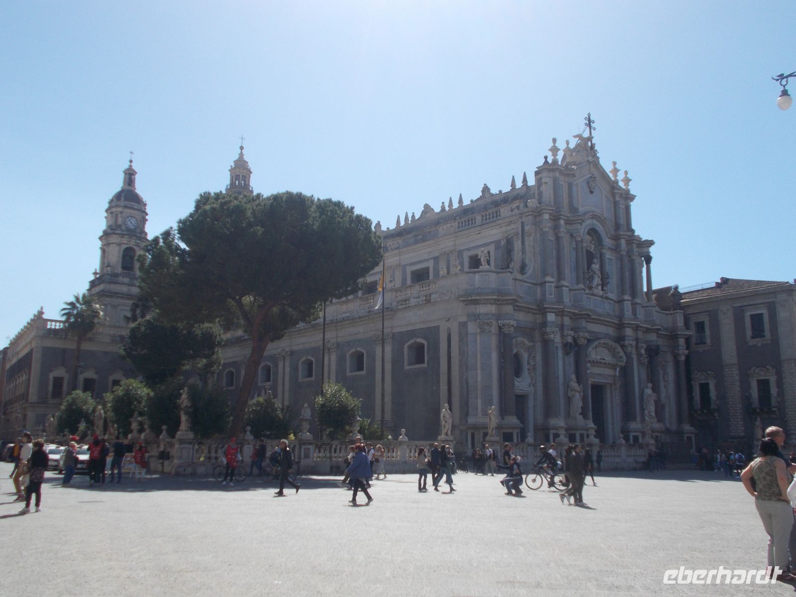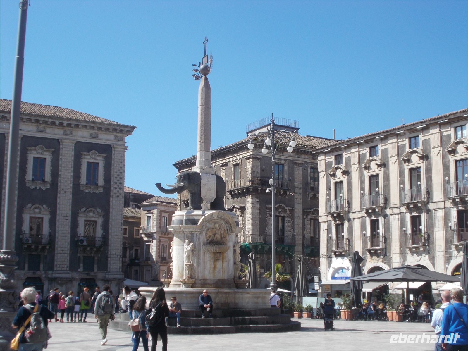 Endlich mal keinen Koffer packen ,ausschlafen ,gemütlich frühstücken und dazu noch Sonnenschein. Unser heutiger Ausflug brachte uns nach Catania, "Tochter des Ätna genannt“. Seit der antiken Gründung wurde die Stadt siebenmal durch Erdbeben oder Vulkanausbrüche total zerstört. Für den Neuaufbau, im 18.Jahrhundert, wurden die schwarzen Lavasteine wieder verwendet. Heute können wir eine schöne ,schwarze Altstadt mit vielen Barock Palästen und Kirchen bewundern. Einen besonderen Stellenwert hat natürlich der Duomo di Sant`Agata. Dort werden auch die Reliquien der Heiligen, in einer silbernen Cappella ,verwahrt. Den Platz vor dem Dom beherrscht der Fontana dell`Elefante. Für uns sollte dieser zum markanten Treffpunkt werden. Uns zog es aber auch zum berühmten Fischmarkt mit seinen, für uns fast unvorstellbaren, “Auslagen“. Wer wollte spazierte die Via Crociferi entlang. Sie bildet ein Ensemble von alten Palazzi, verschiedenen Kirchen und Klöstern. Von der Chiesa della Badia di Sant`Agata hatte man Catania zu Füßen liegen. Nach etwas Freizeit beendeten wir unseren Ausflug. Den verbleibenden Tag nutzten wir in Letojanni, um das Meer und die Sonne zu genießen.
