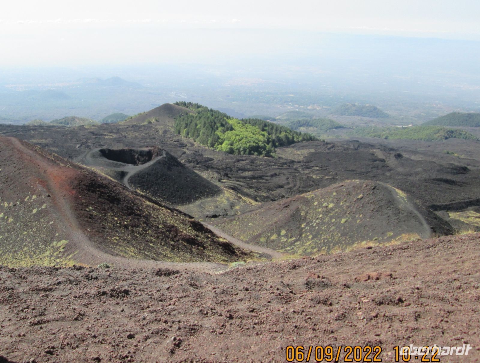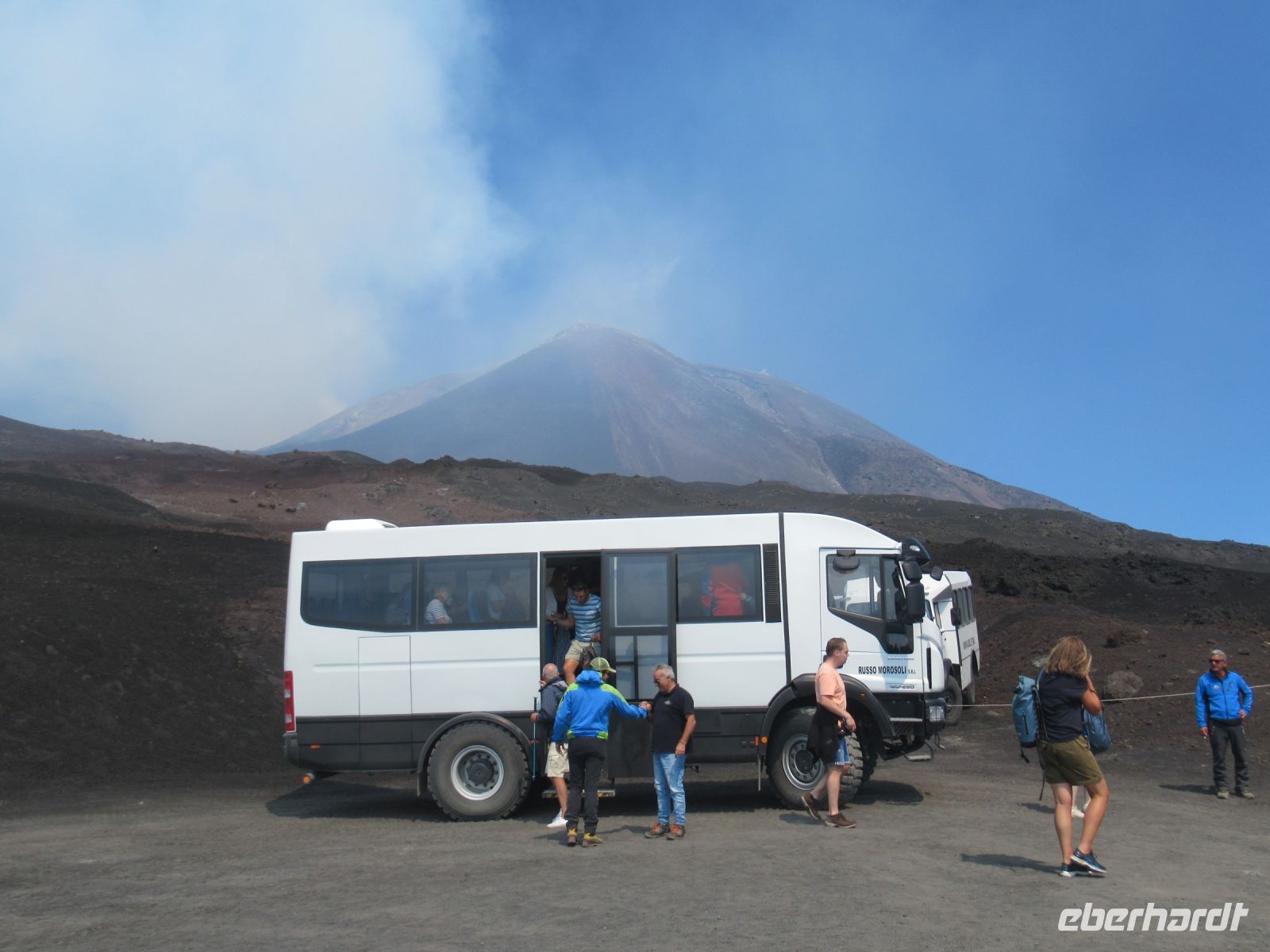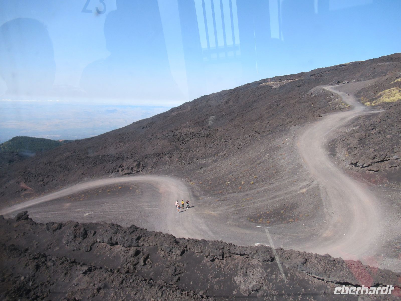 Wir erreichten die Station „Rifugio Sapienza“ und teilten uns in zwei Gruppen. Eine Gruppe von elf Personen wollte trotz der langen Schlange vor der Seilbahnstation auf bis zu 2.750 Meter Höhe. Die anderen Teilnehmer beschlossen die zwei untenliegenden Krater "Crateri Silvestri" zu umrunden.