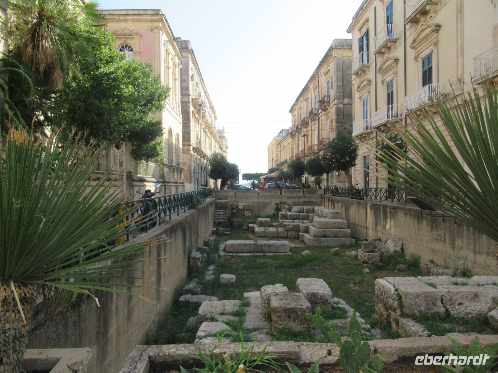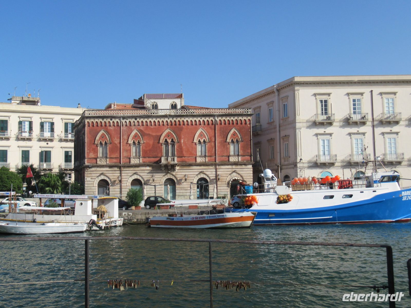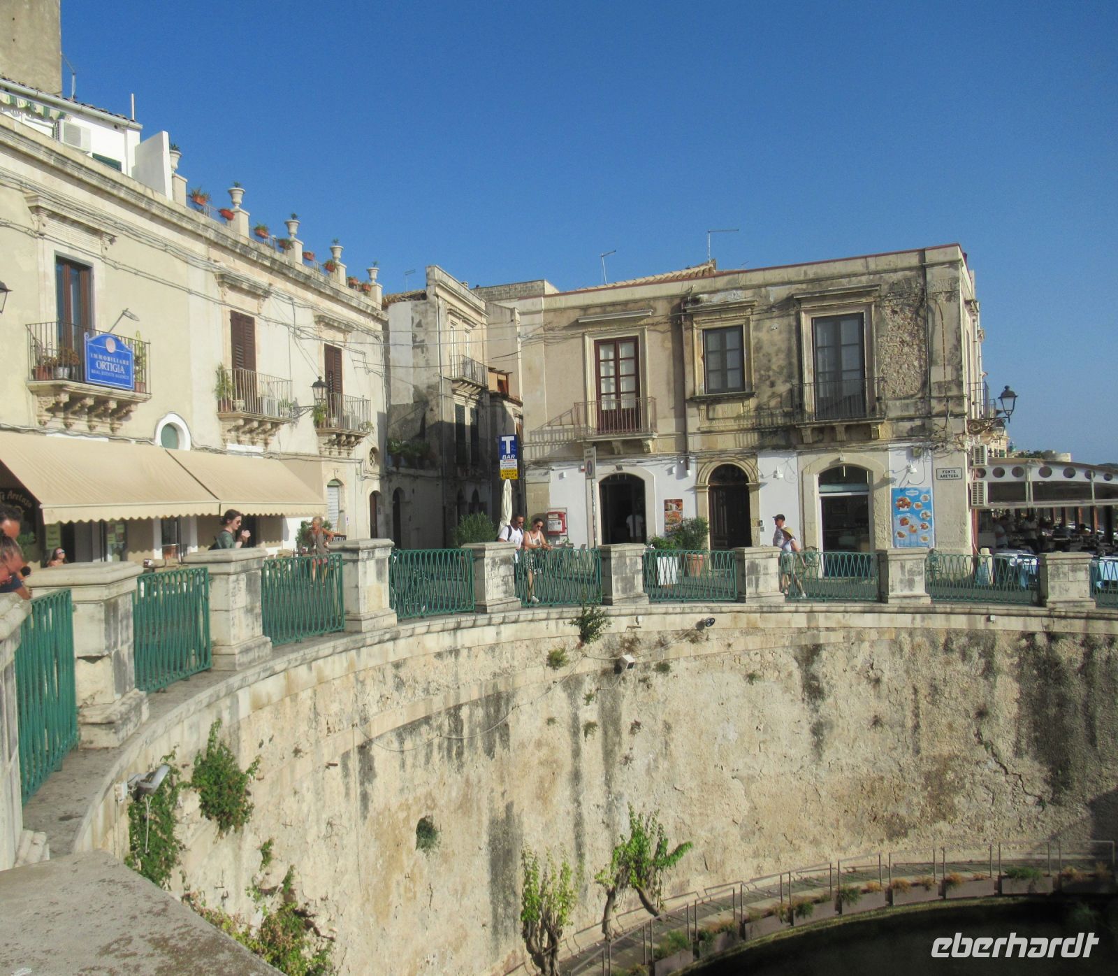 Dann fuhren wir auf die Insel Ortygia (Isola die Ortigia) in den historischen Kern der Stadt. Christiane führte uns durch die historische Stadt und dank mobiler Audiotechnik konnten wir schon unterwegs über die bewegte Geschichte der antiken Stadt viel erfahren.