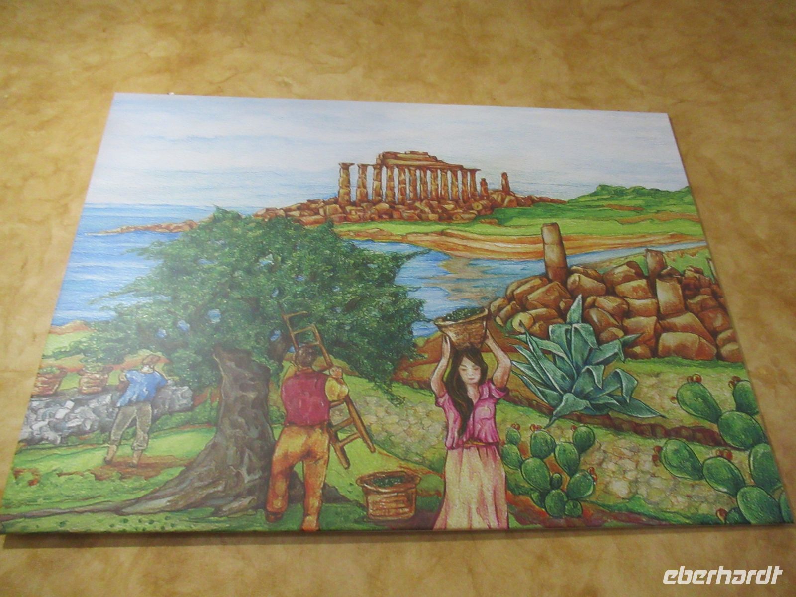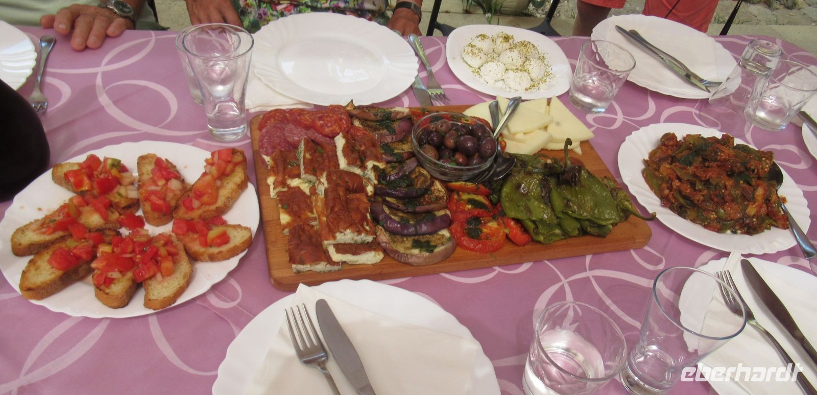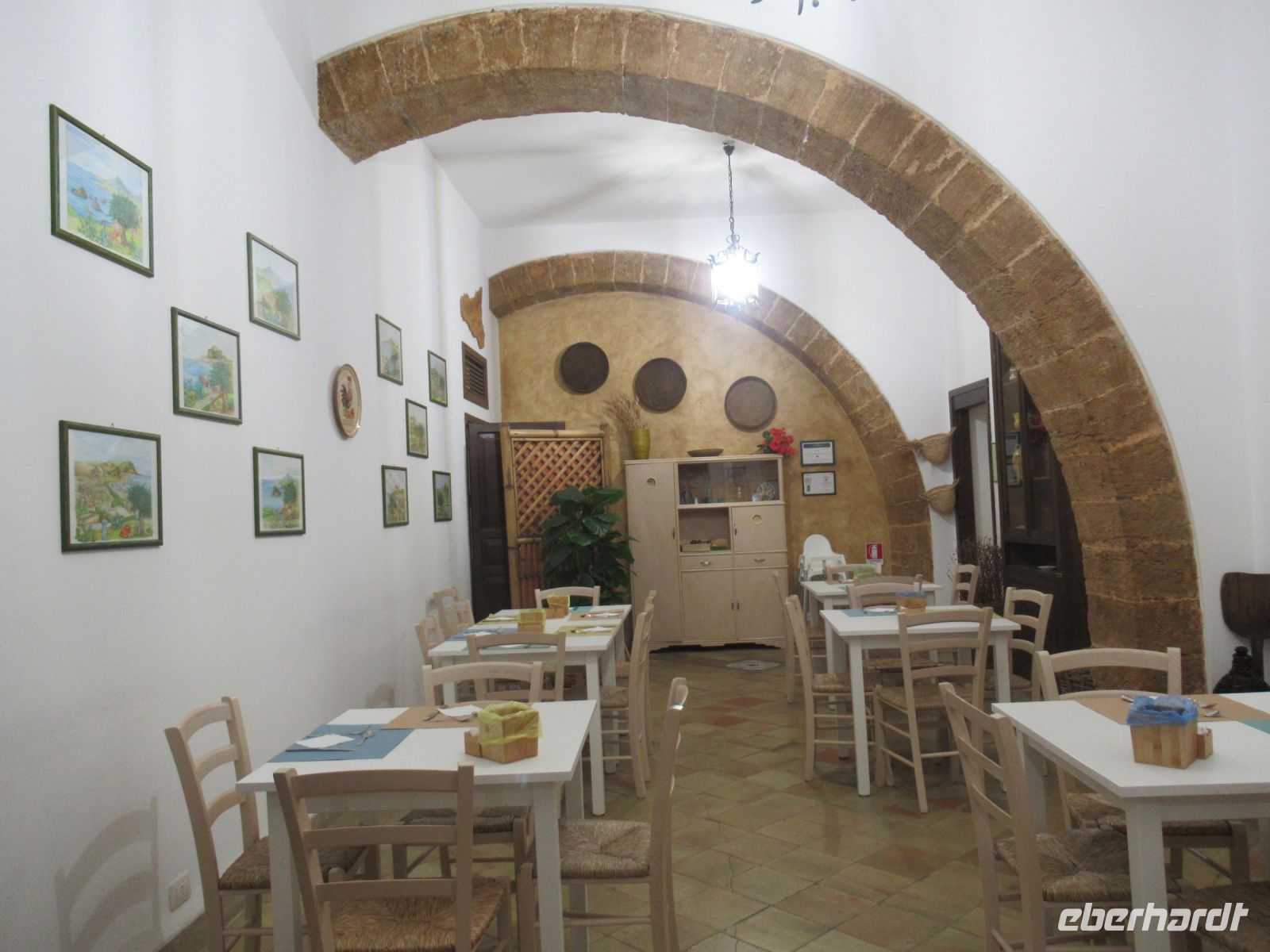 Nach der ca. 1,5 stündiger Führung fuhren wir nur eine Minute zu unserer Mittagspause. Empfehlung von Christiane: Im „Triangelagriturismo“ erwarten uns eingedeckte Tische und sehr leckere sizilianische Vorspeisen inkl. Wasser und Wein. Ganz besonders hat uns das hervorragende Carbonata geschmeckt.