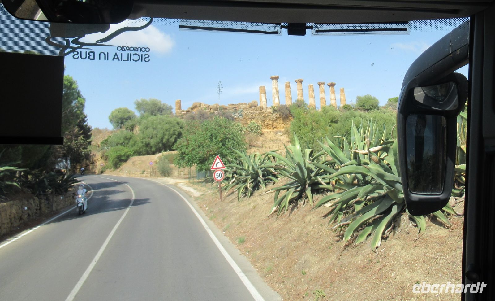 Schon von der Straße sahen wir die antiken Säulen auf den Hügel, aber die Größe der ganzen Anlage konnten wir erst vor Ort erfassen - Tal der Tempel, UNESCO Weltwerbe.