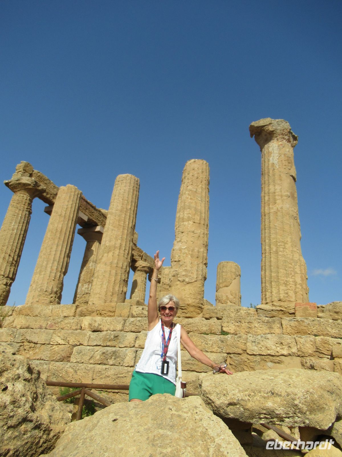 So gestärkt machen wir uns um 13.30 Uhr auf den Weg zu den Tal der Tempel in ca. 100 km entfernten Agrigento. Wir stiegen aus, die Sonne brannte, aber wir waren alle tapfer und neugierig auf ein weiteres Highlight unserer Rundreise durch die wunderschöne Insel.