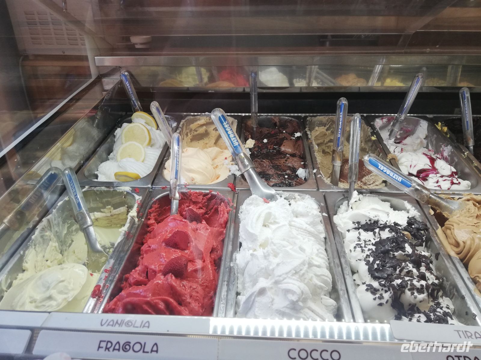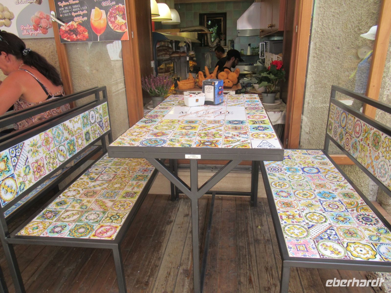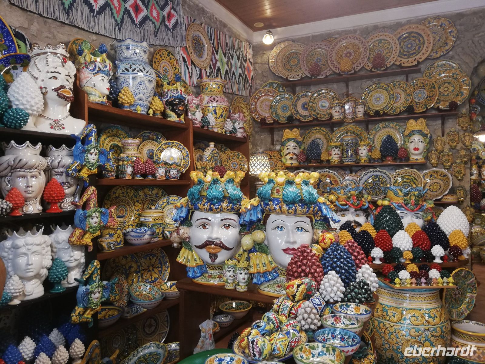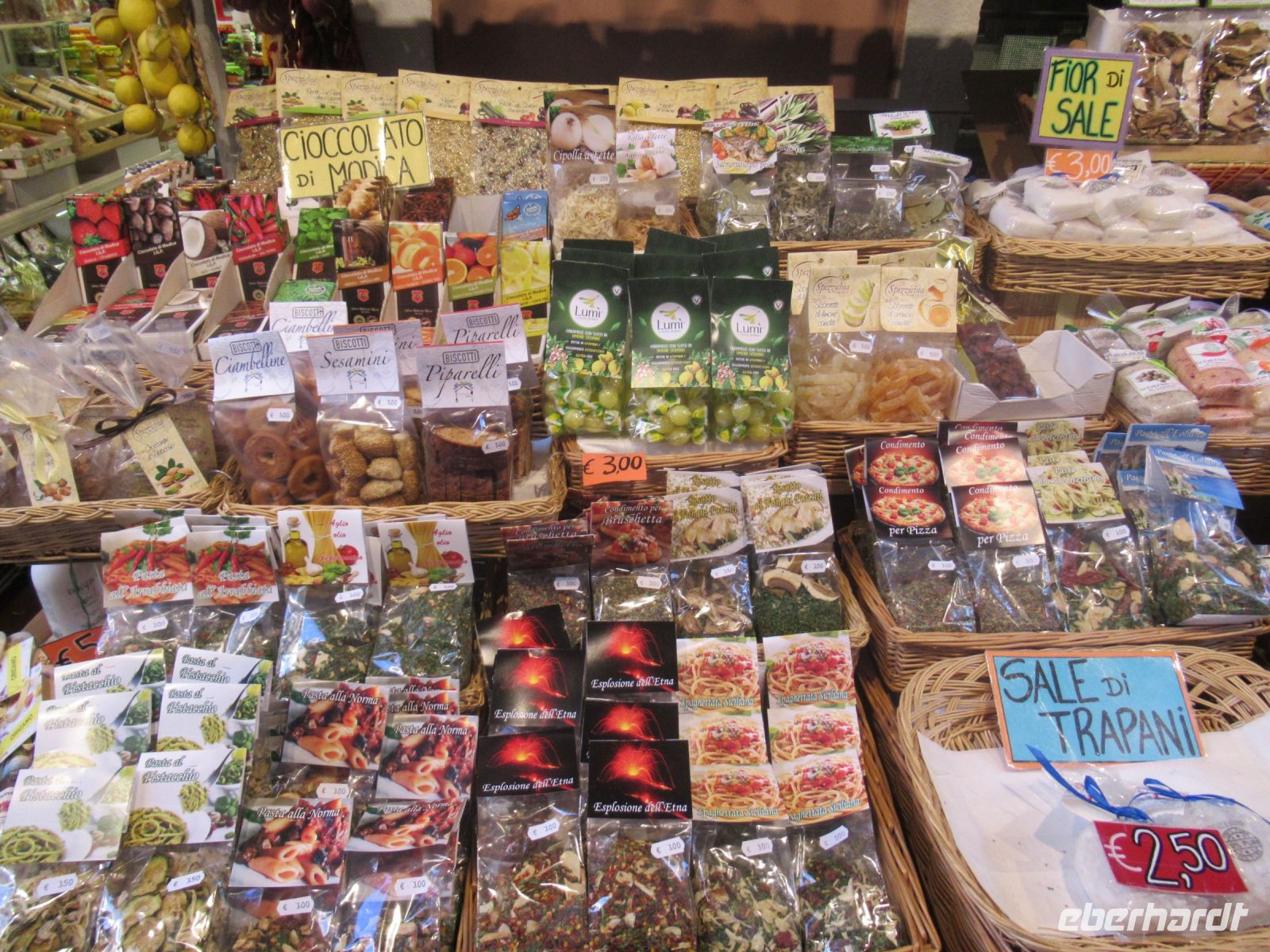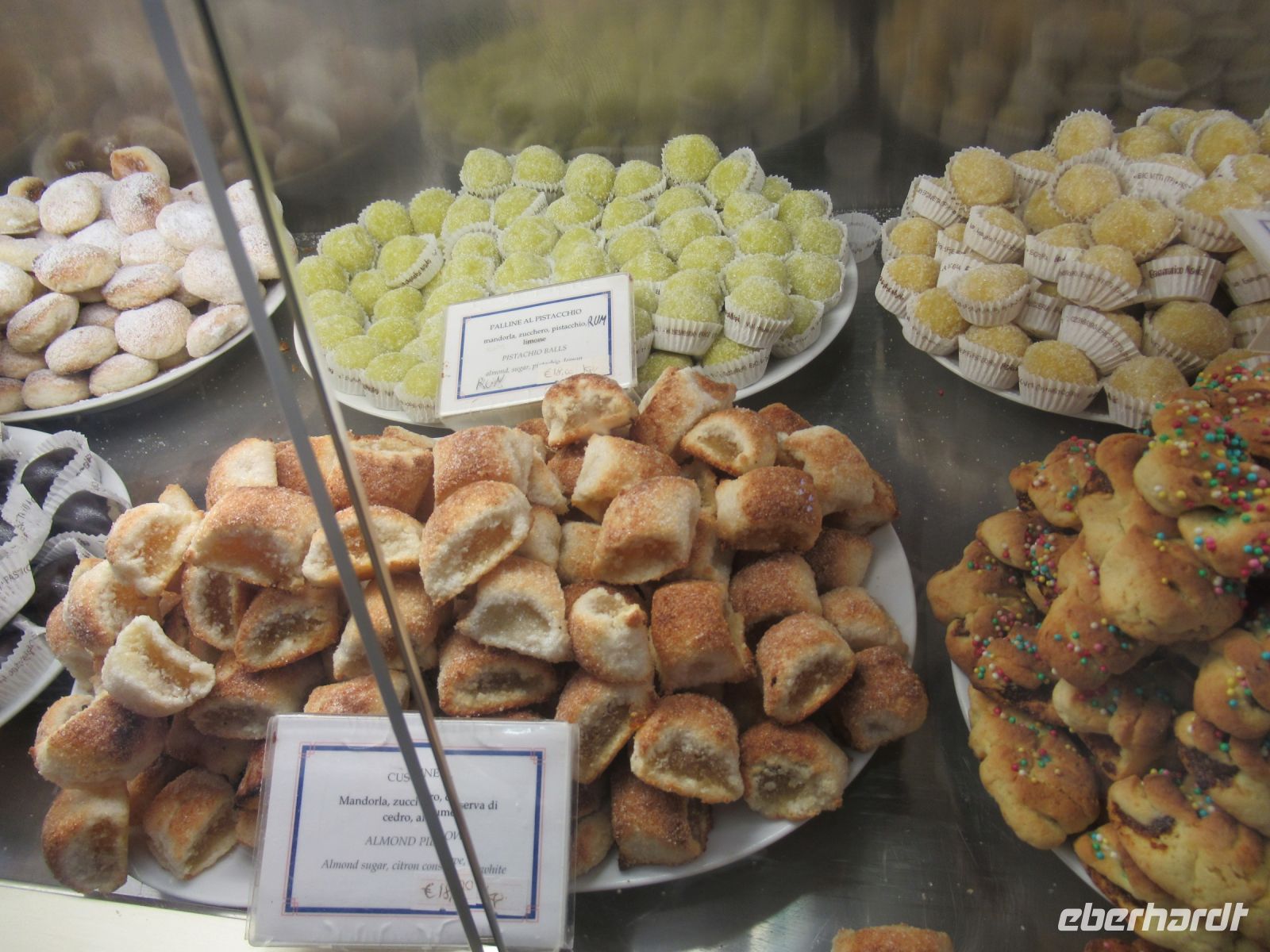 Wir verweilten in der Kühle und schlenderten weiter durch die Gassen, mit kleinen Cafés, Spezialitäten- und Souveniergeschäften. Einer der Spezialitäten mussten wir doch ausprobieren, die köstlichen, fast künstlerisch gestalteten Marzipan Pralinen bei „Maria Grammatico“. Langsam trödelten wir die Sträßchen hinunter zum Bus.