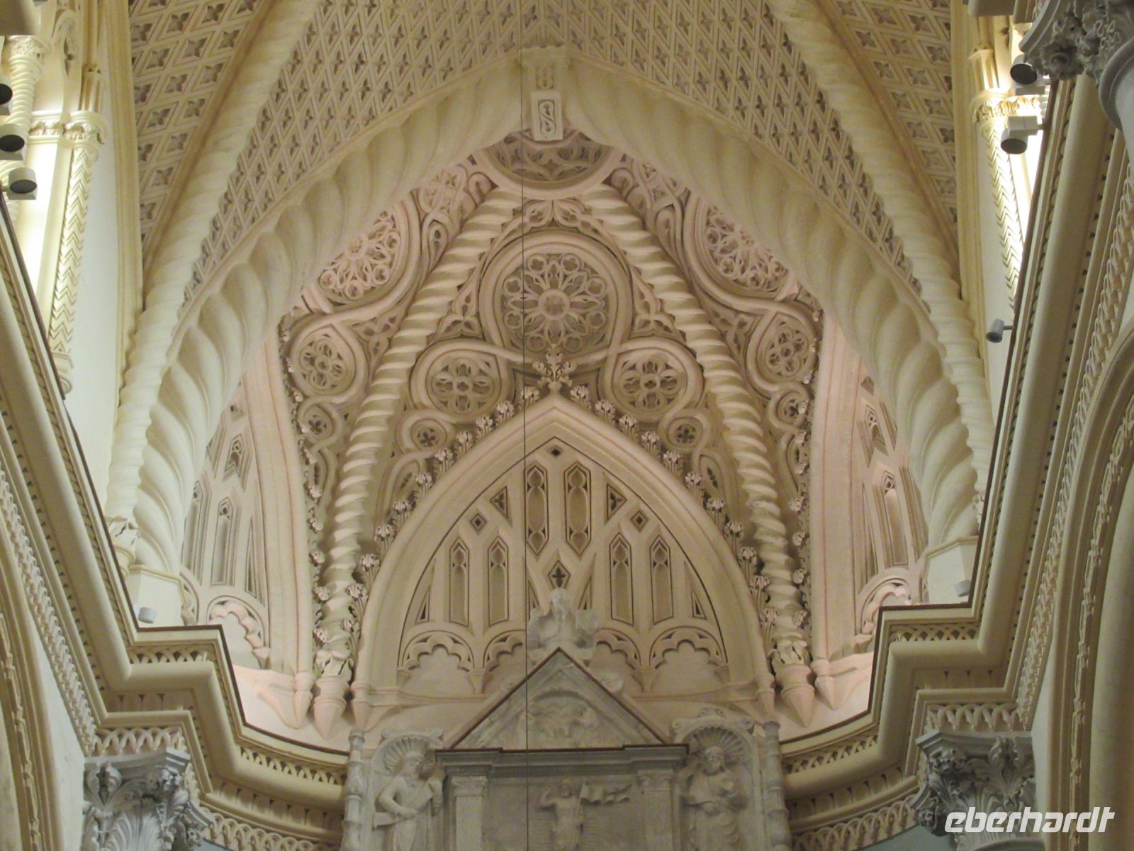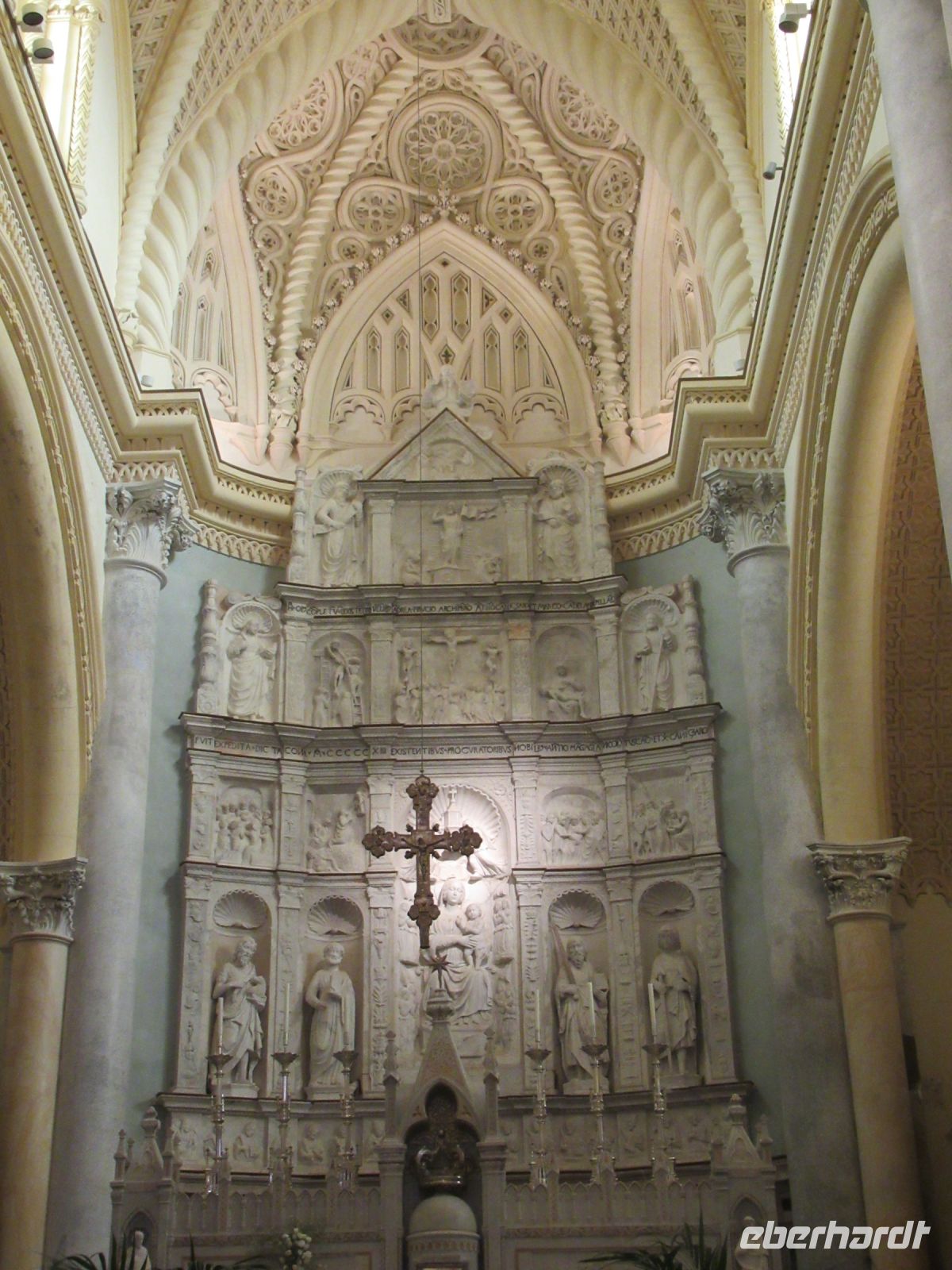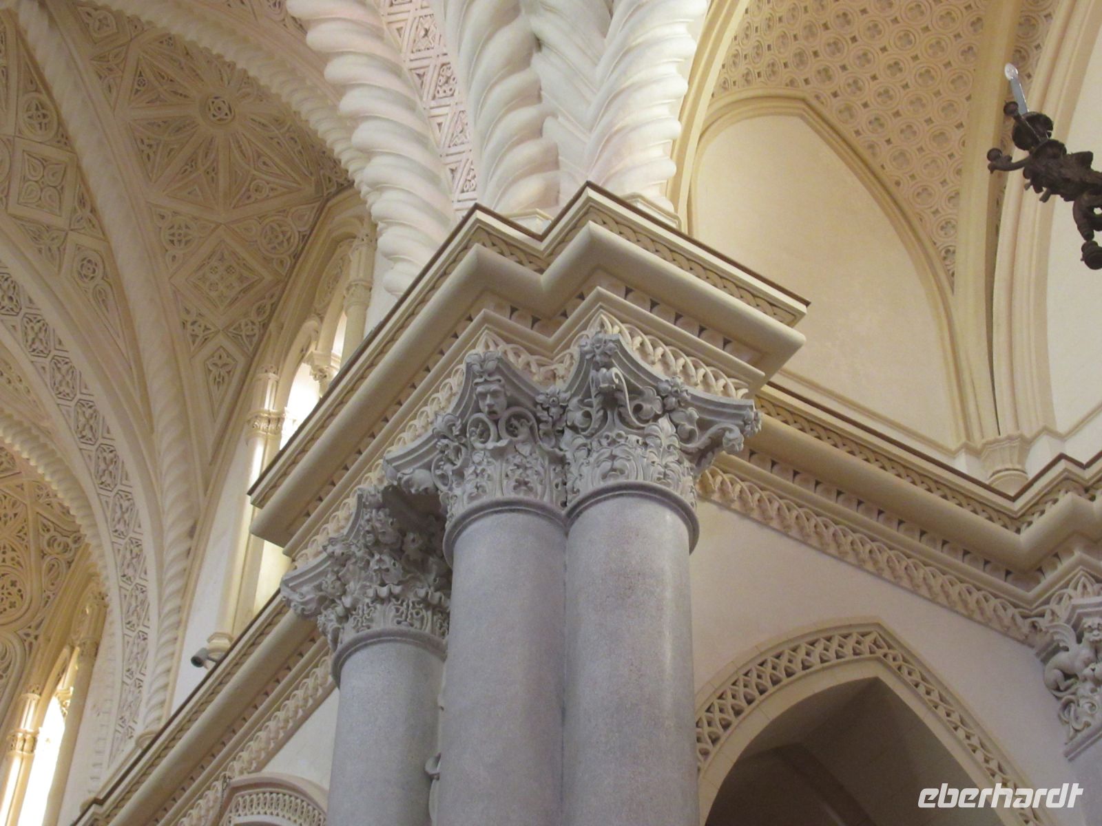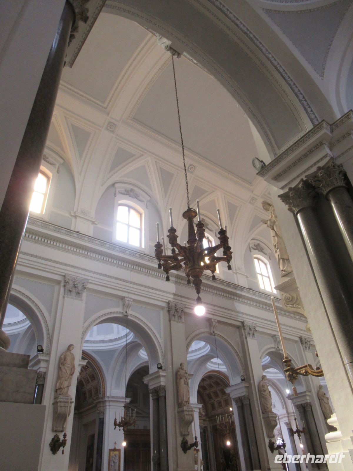 So starteten wir in dem Dom (Chiesa Regia Matrice), der vom 13. Jahrhundert stammt. Im 19. Jahrhundert wurde das Kircheninnere im gotischen Stil umgestaltet. Als würde eine cremfarbene feine Spitze auf die Decke gelegt, so filigran ist die Kirchendecke gestaltet.