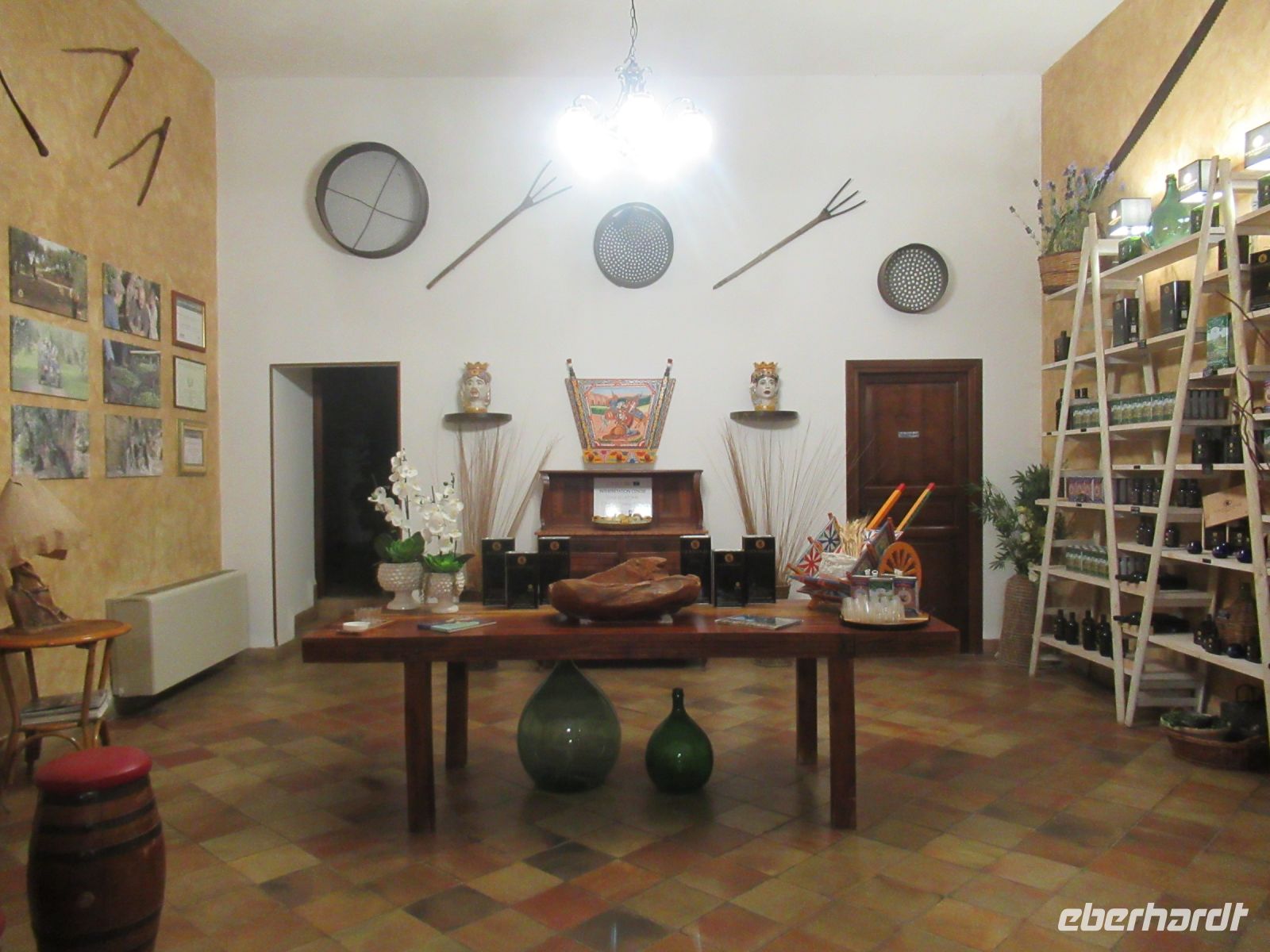 Am vorletzten Tag hatten wir noch ein Mittagsessen in einem Agriturismo Restaurant, also steuerten wir im Bus abseits von den Straße und kamen wieder in ein kleines verstecktes Paradies in den Weinbergen, in einer ehemaligen Kirche oder besser Kapelle. Hier erwartete uns ein liebevoll eingedecktes Antipasti Büffet mit Käsespezialitäten, Salami aus schwarzen Schwein, Vino blanco und roso und als Dessert, wie anders, ein Canolo.