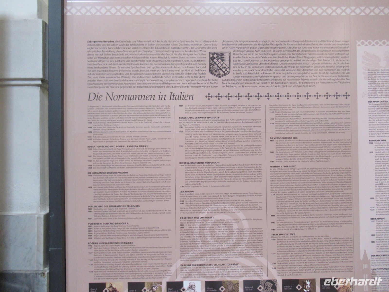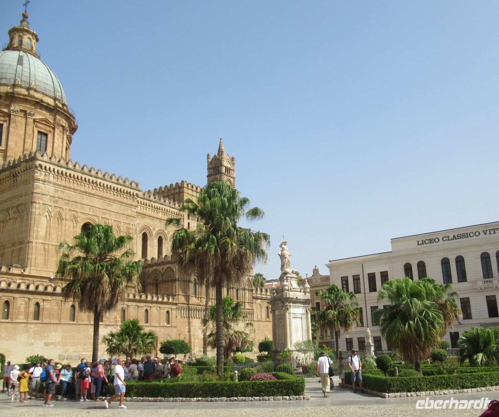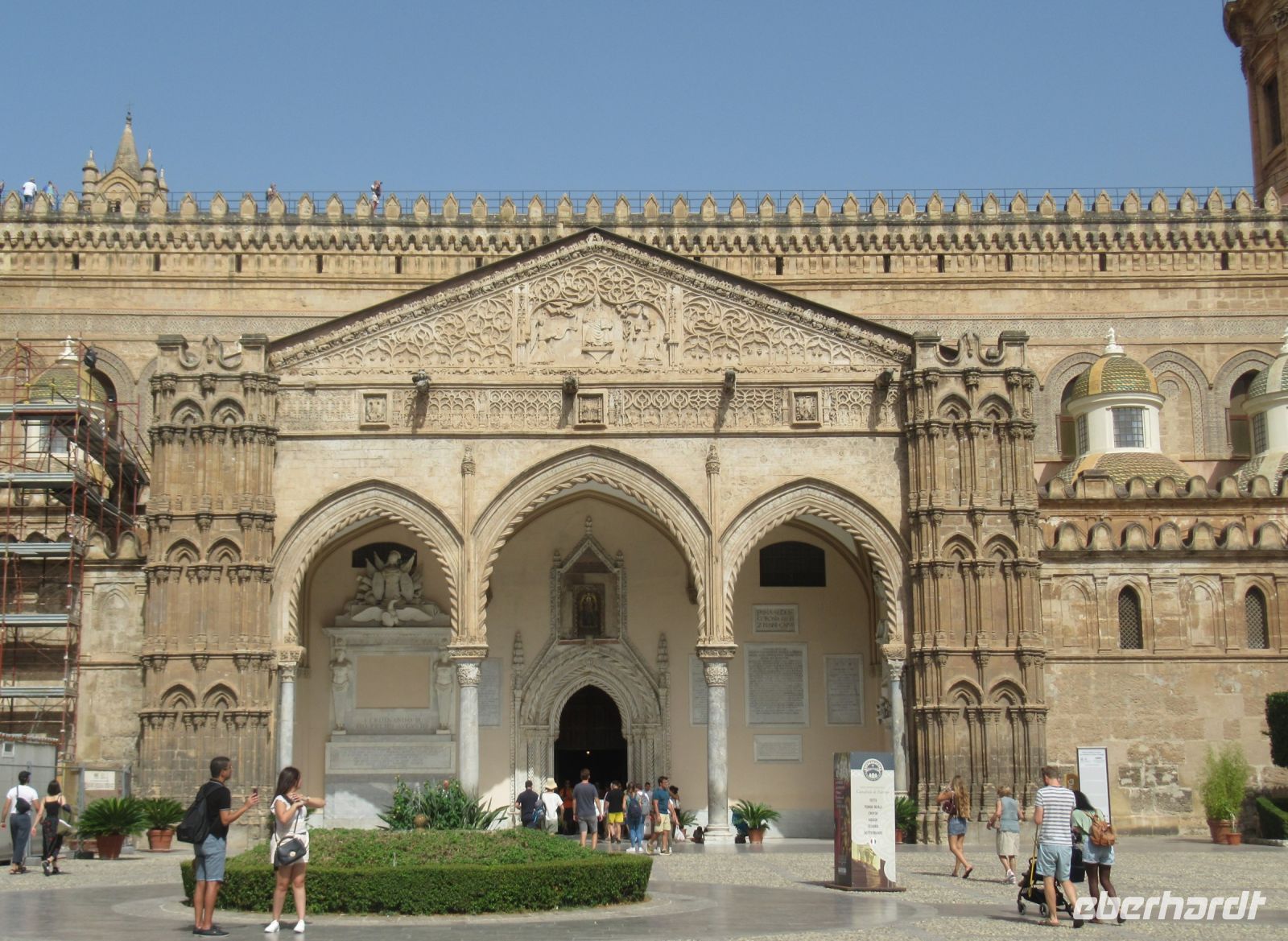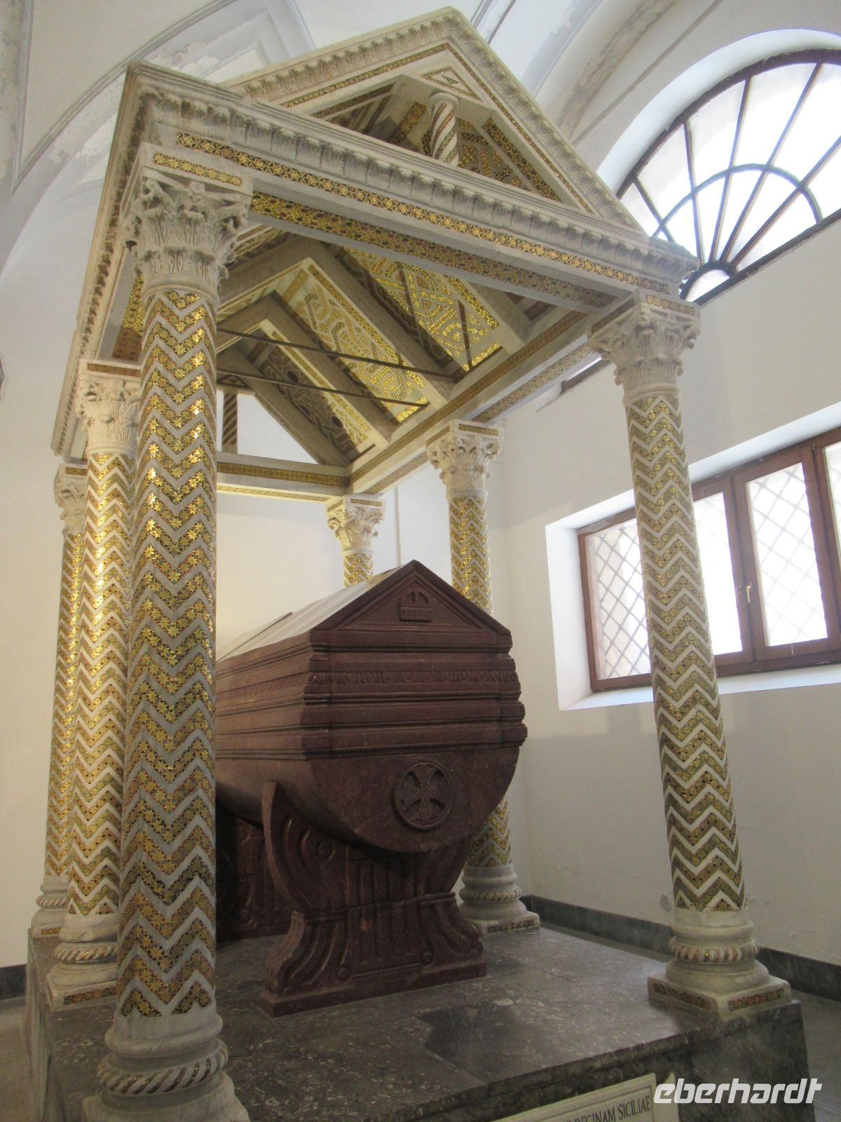 Nach der Besichtigung der Capella liefen wir durch den Park Richtung Stadtmitte zu den wichtigsten Sehenswürdigkeiten der Stadt – die „Cattedrale Maria Santissima Assunta“ die von byzantinisch-arabisch-normannischen Einflüssen geprägt ist. Hier sieht man nach mehreren Umbauten unterschiedliche Baustile. Wir betraten die Kathedrale und auch die Herrschergräber im Innen
