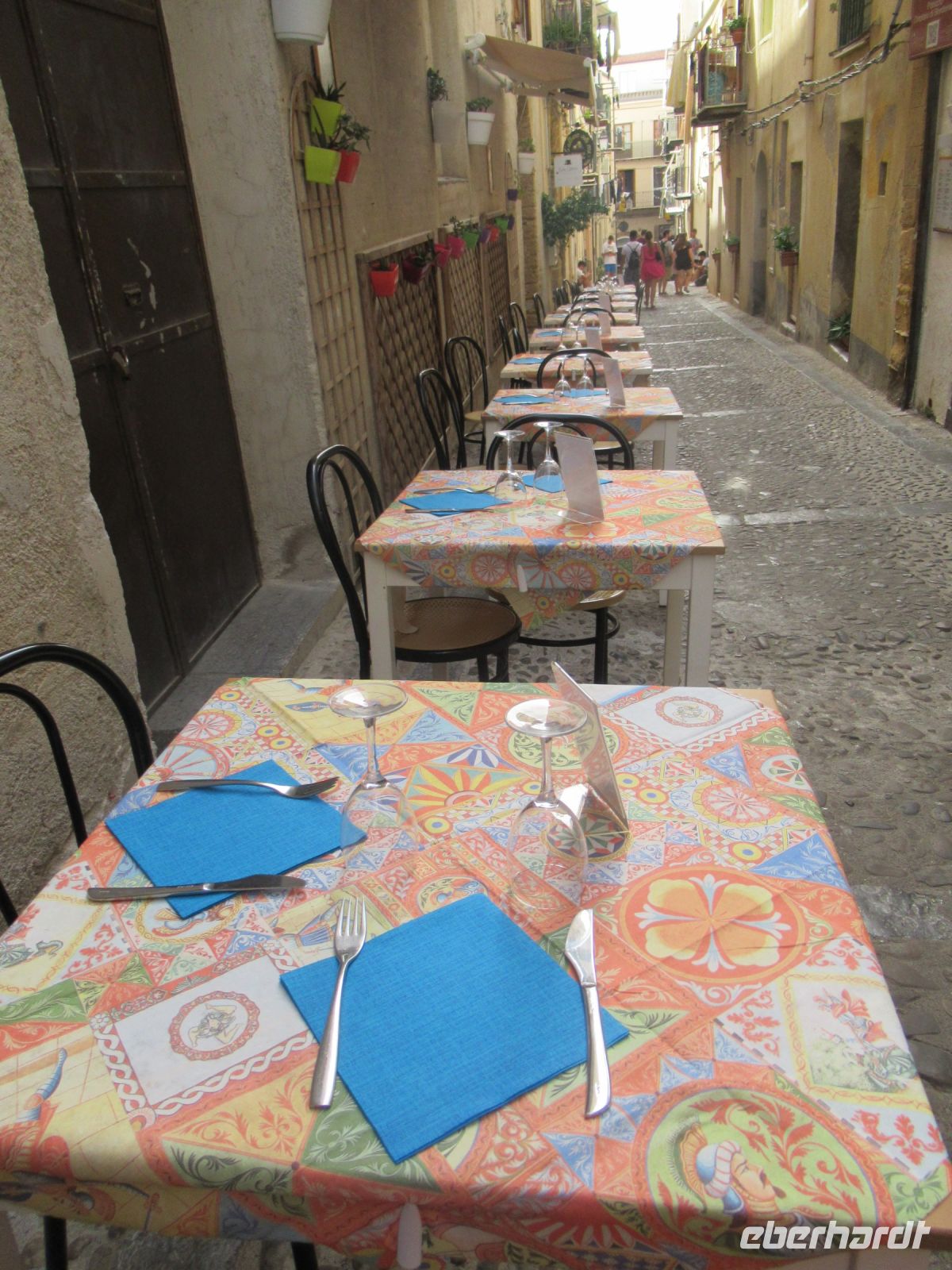 Ein kleiner Teil der Gruppe bevorzugte ein schattiges Plätzchen im Restaurant, die sizilianische Spezialitäten und auch ein sizilianisches Bier.