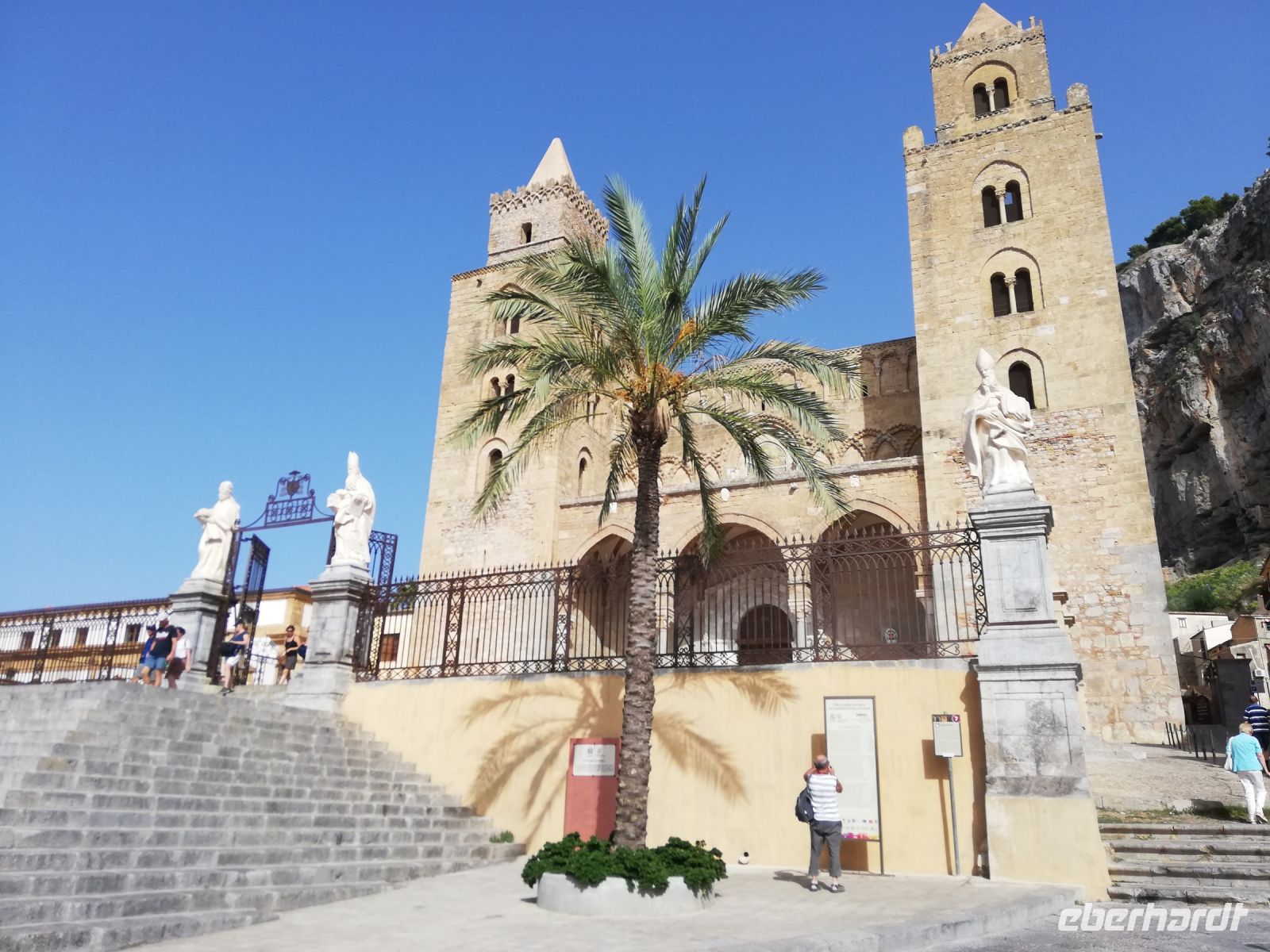 Wir gingen aber Richtung Domplatz unterhalb des riesen Felsen: Die Kathedrale Santissimo Salvatore. Mit dem Bau wurde im Jahr 1131 begonnen. Roger II soll die Kathedrale in Auftrag gegeben haben, nachdem er einen Sturm auf hoher See überlebt und bei Cefalù an Land gespült wurde. Aufgrund mehrerer Unterbrechungen wurde die Kathedrale mit ihren beiden Zwillingstürmen jedoch erst im Jahr 1240 fertig gestellt.