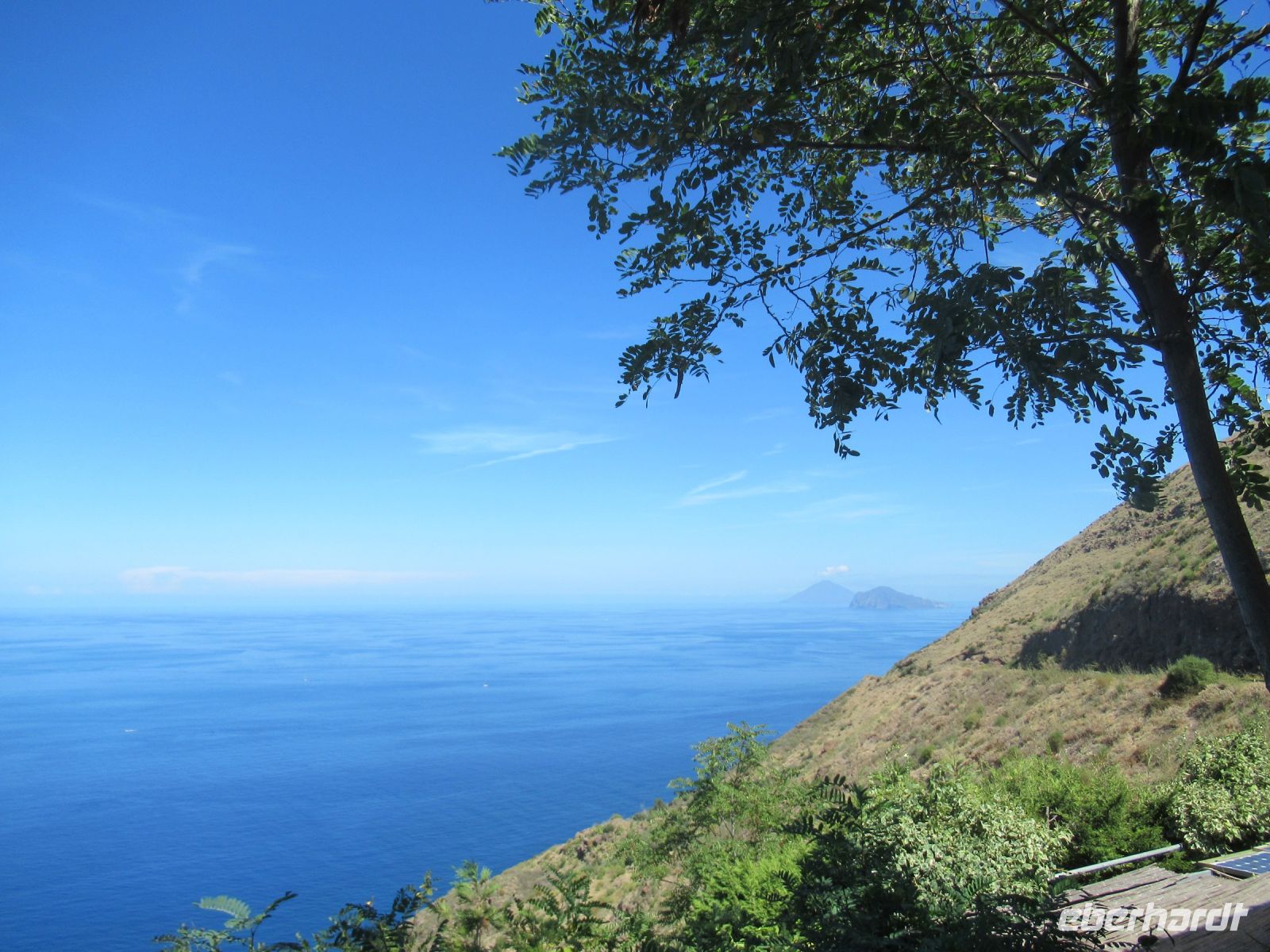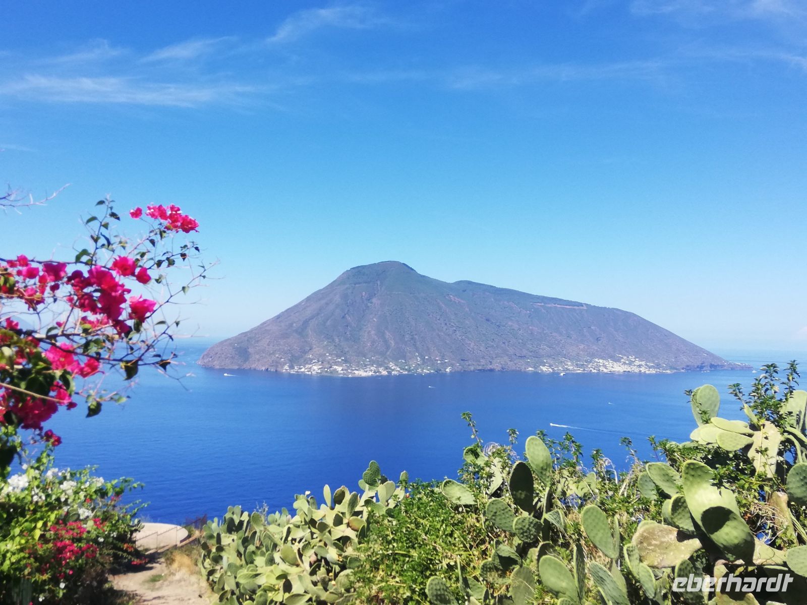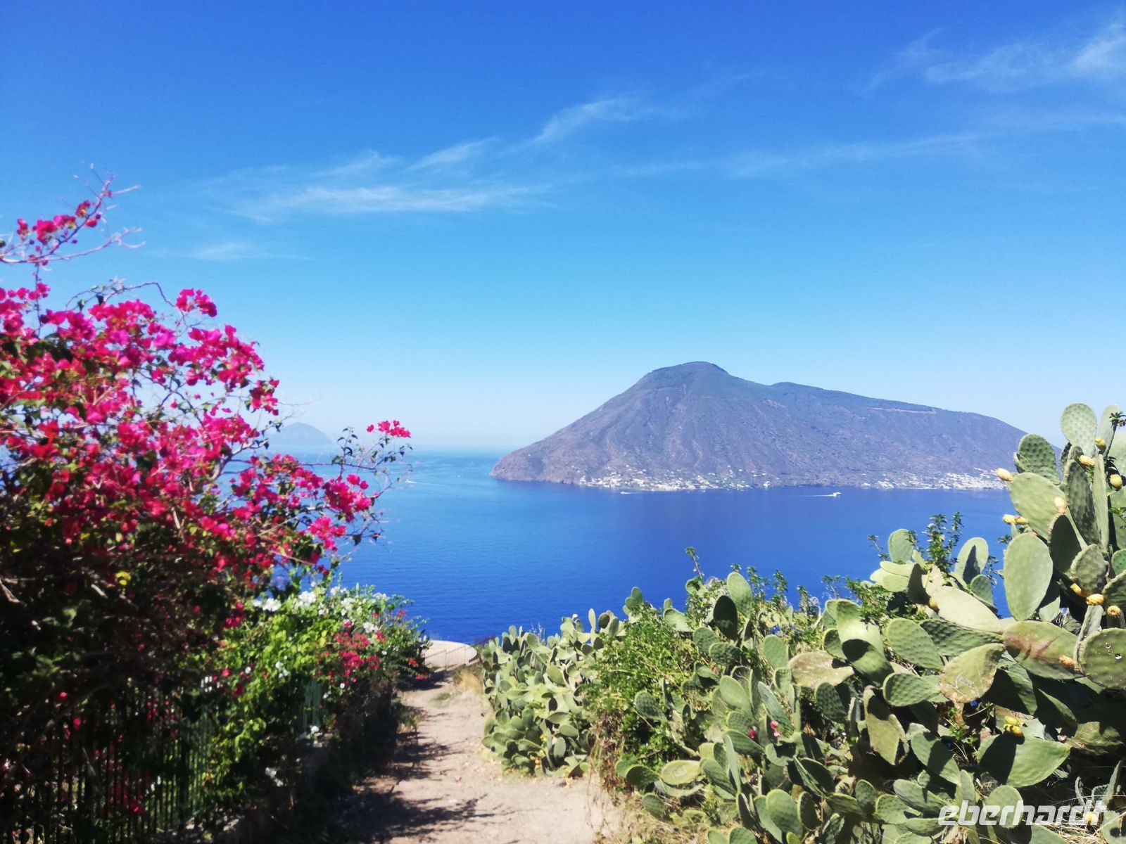 Einmal rund um die Insel hoch und runter mit fantastischen Ausblicken auf Vulcano und auf andere Liparische Insel. Recht dicht bewohnt, mit abwechselnder Flora. Wetter wieder wie aus Bilderbuch.