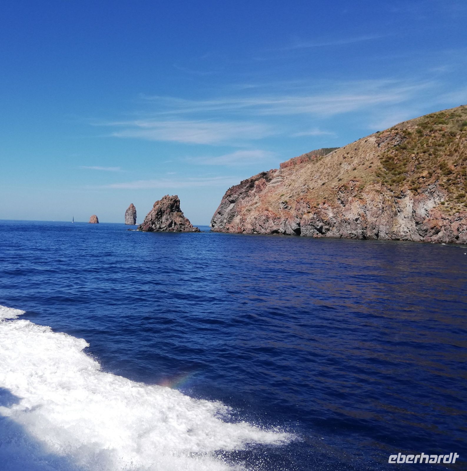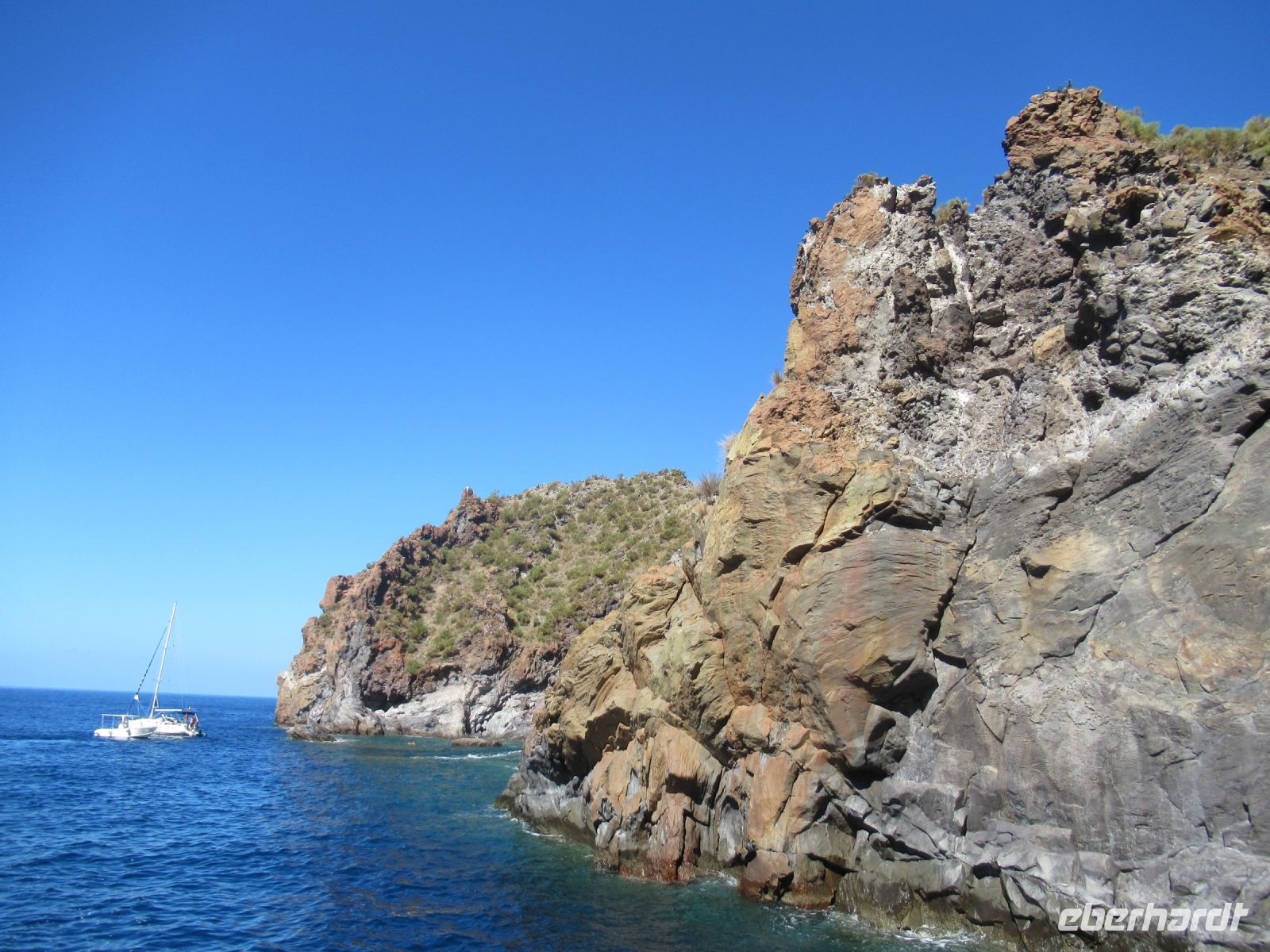 Wir steuerten erst um die Insel Vulcano, um die fantastische Felsenformationen zu sehen. Hier ist es schwer, etwas zu beschreiben, die Bilder sagen einfach alles…
