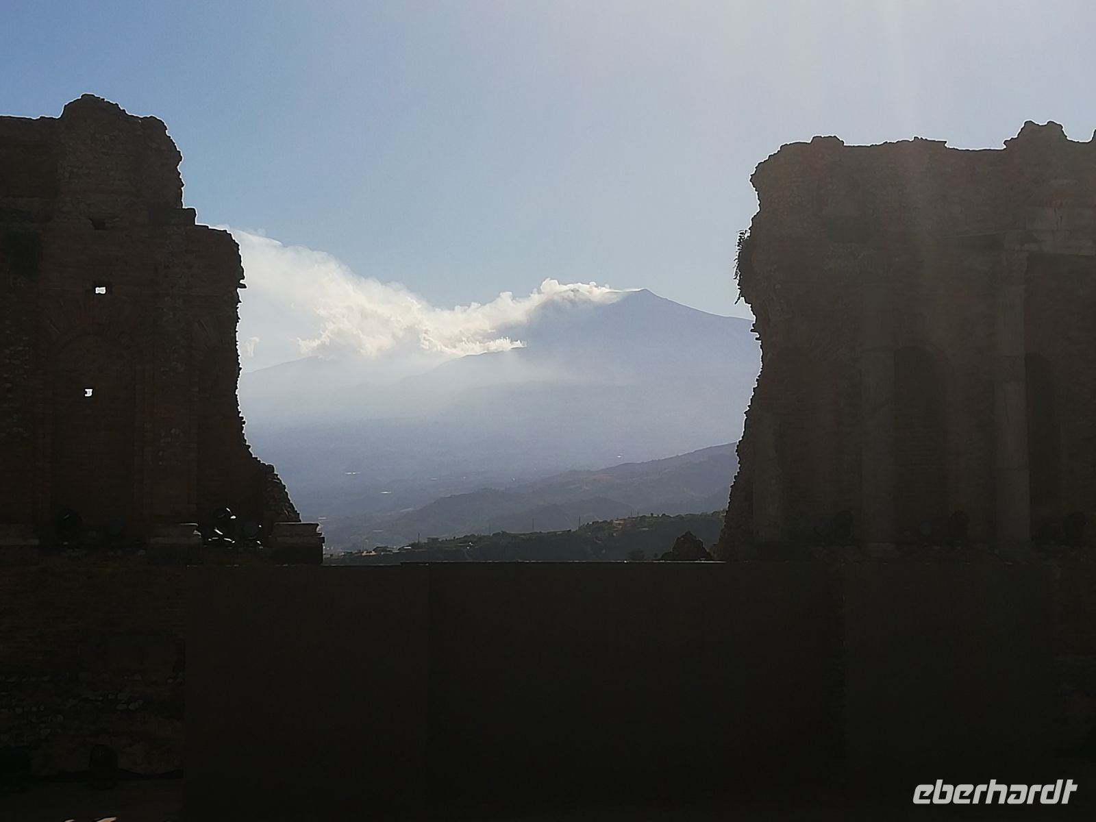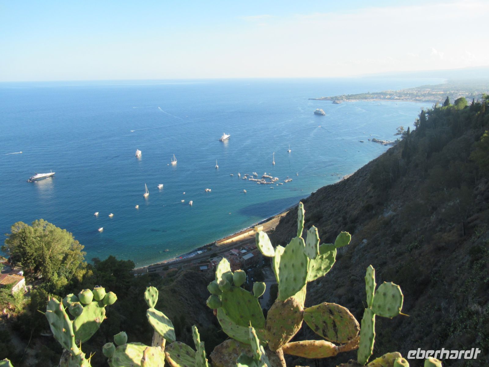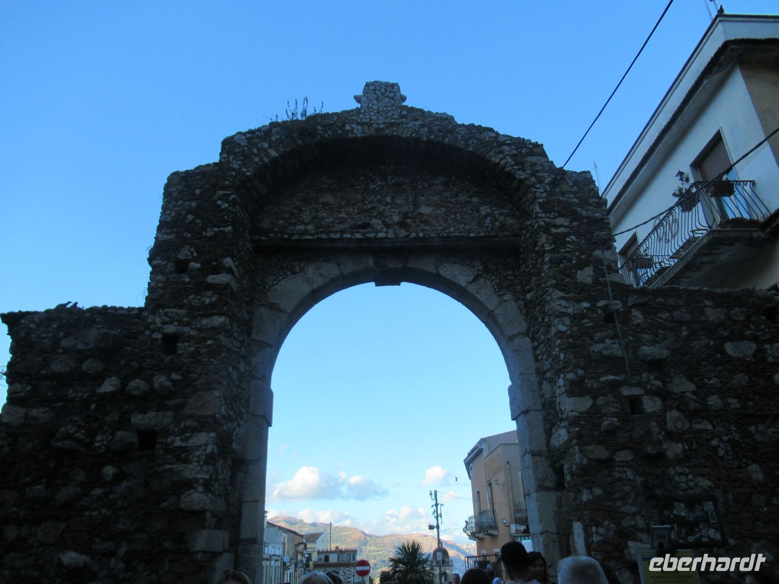 Der Ursprung des Theatro geht wahrscheinlich auf das 3. Jh. v. Chr., später haben die Römer das Theater in die heutige Form umgebaut. In den „Steinfenster“ zeigt sich uns noch mal der Ätna, wie in einem Bilderrahmen. So jetzt genug von Historie, jetzt noch die wunderschönen Ausblicke von der Stadt aufs Meer genießen, die sich am Ende des Corso an dem Porta Catania eröffneten. Oder noch ein kleines Andenken an Sizilien als Mitbringsel aufzustöbern und dann wieder zurück zur Porta Messina, wo wir uns alle einsammelten, um mit dem Shuttle zu unserem Bus zu gelangen.