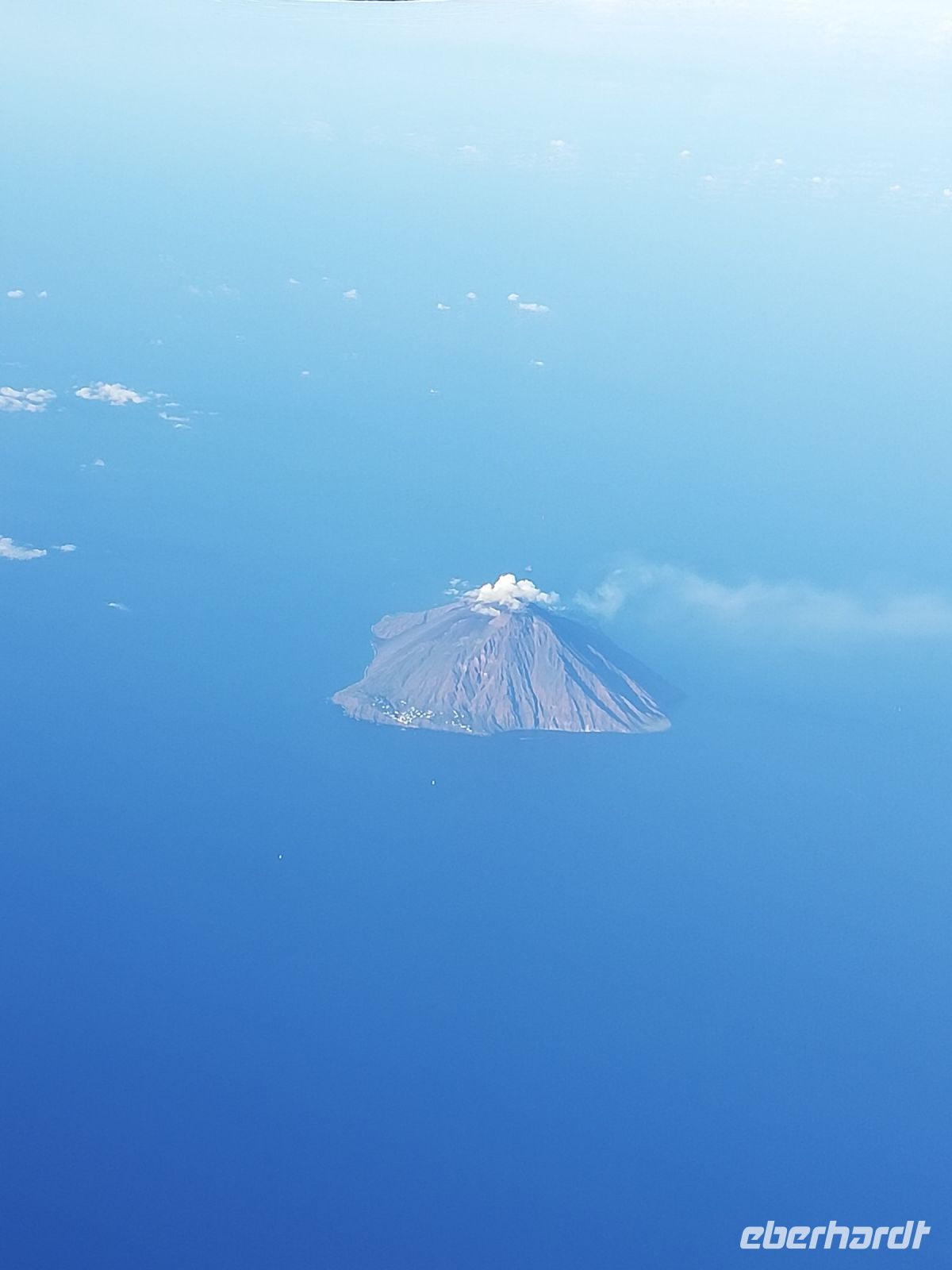 Auf der Fähre Richtung Milazzo sahen wir noch mal gut den Stromboli und die anderen Inseln, die aus dem Meer ragen.