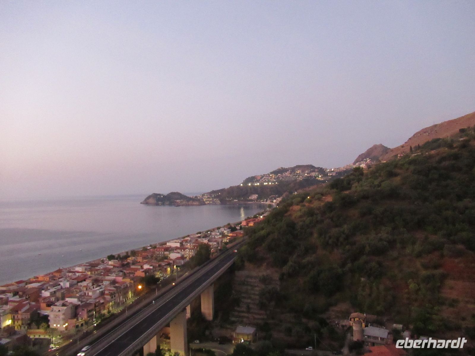 in Letojani, nur ca. zehn Minuten zu Fuß vom Hotel entfernt, einige nahmen noch einen Drink auf der Terrasse.