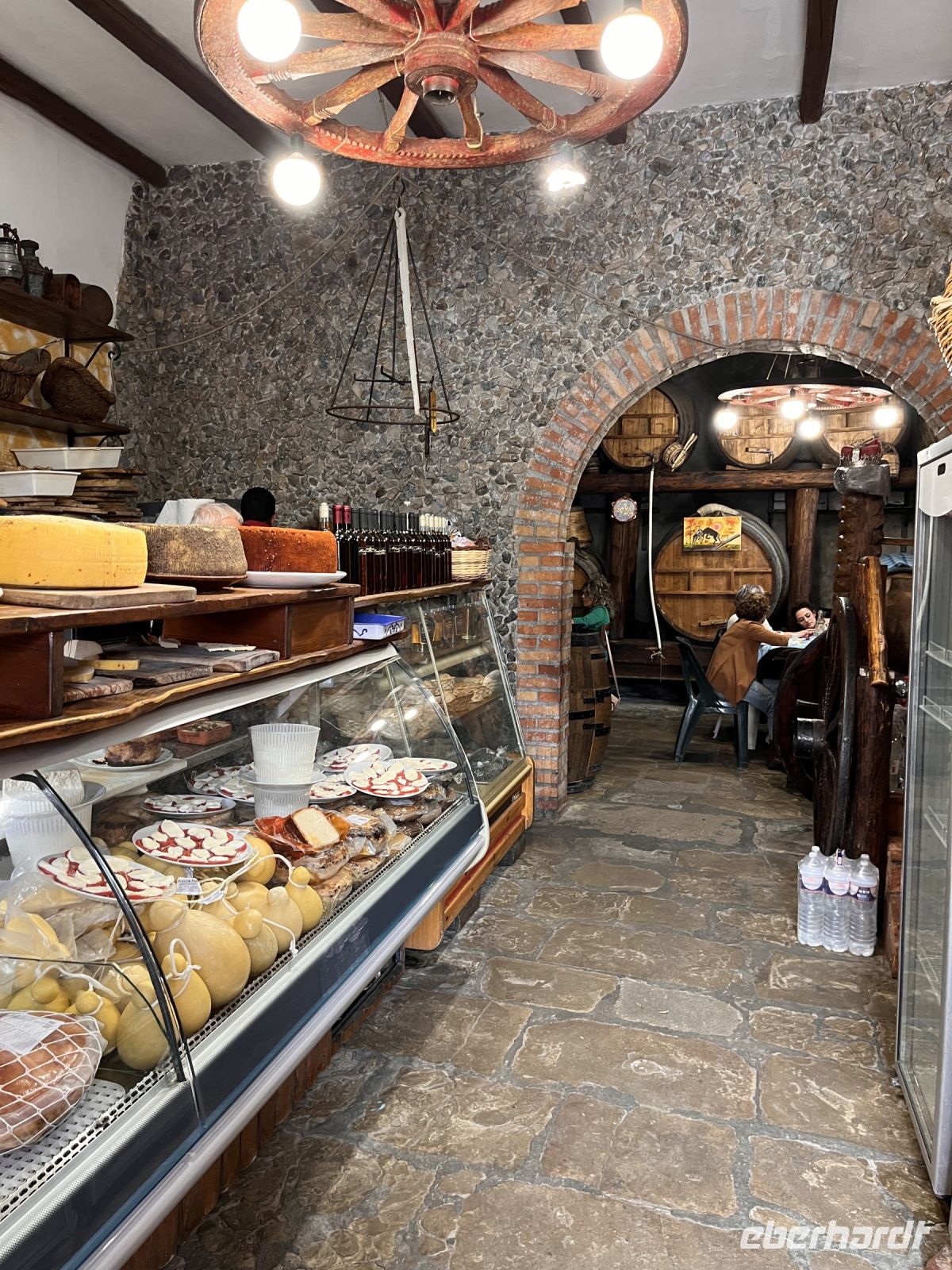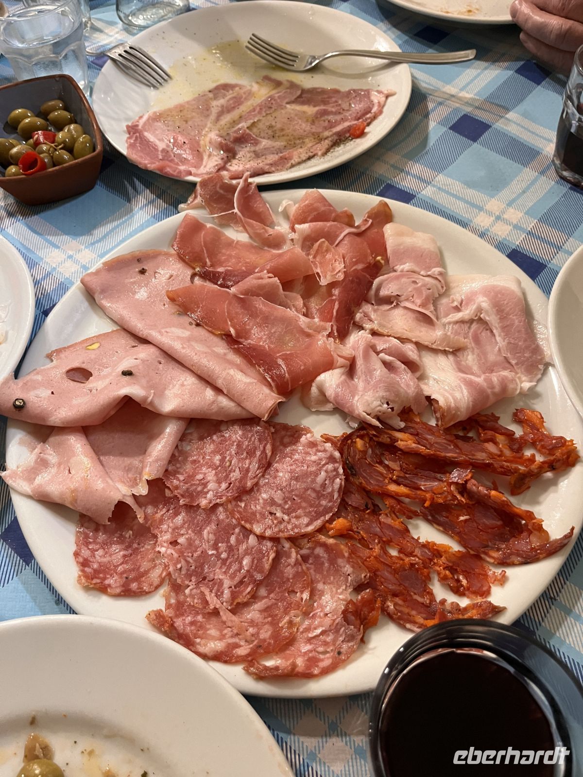 Wir fahren weiter zum Restaurant “Pane e Vino” wo wir in einer urigen Taverne ein köstliches Menü aus vielen Spezialitäten der Region genießen und den süffigen Wein probieren.