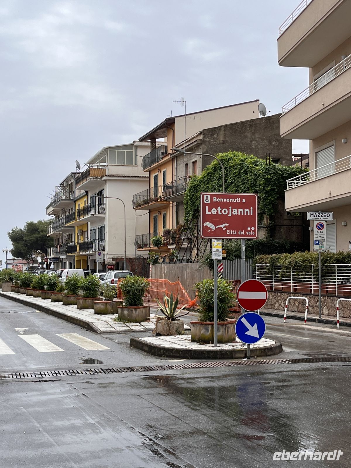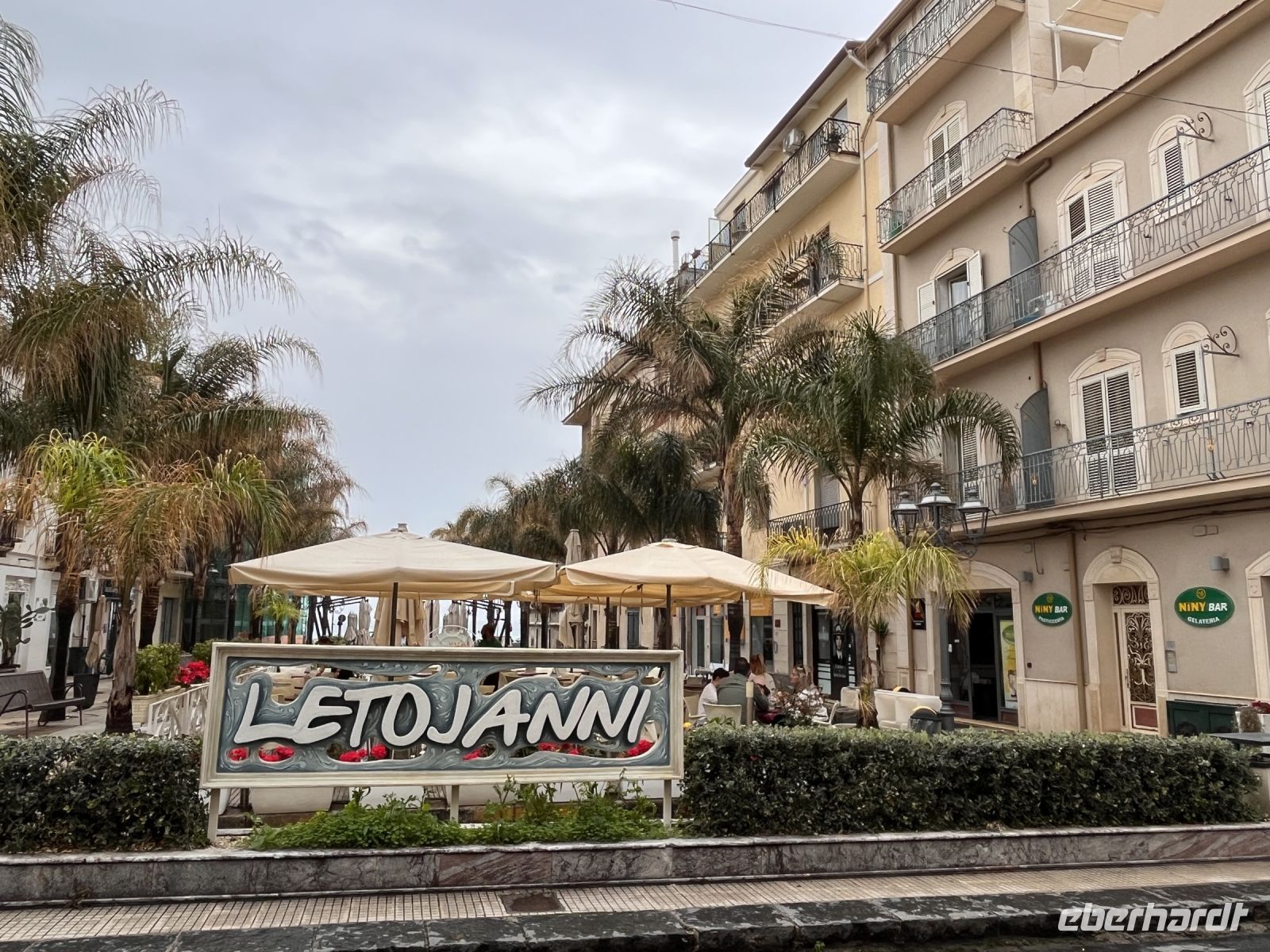 Von Berlin, Leipzig, Düsseldorf und Dresden treffen die Gäste in Catania ein. Unsere italienische Reiseleiterin Enza und der Busfahrer erwarten uns bereits am Flughafen und bringen uns zum Hotel an der Ostküste von Sizilien, nach Letojanni nahe Taormina. Jetzt essen wir gemeinsam zu Abend und nutzen die Zeit zum Kennenlernen bei einem Glas Wein. Einige der Gäste erkunden bereits die Umgebung des schön gelegenen Hotels bei einem kleinen Spaziergang und nutzen die Bahn um in den unteren Teil der Stadt zu gelangen. Andere genießen den wundervollen Ausblick vom Balkon des Hotels auf das leider etwas wolkenverhangene Meer.