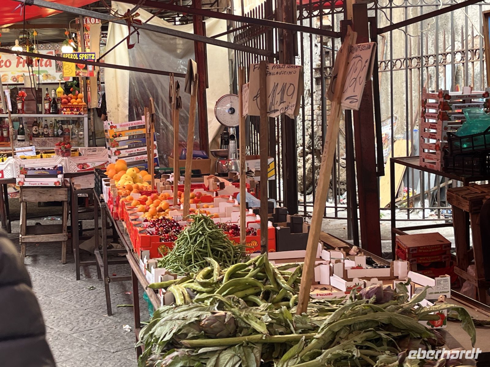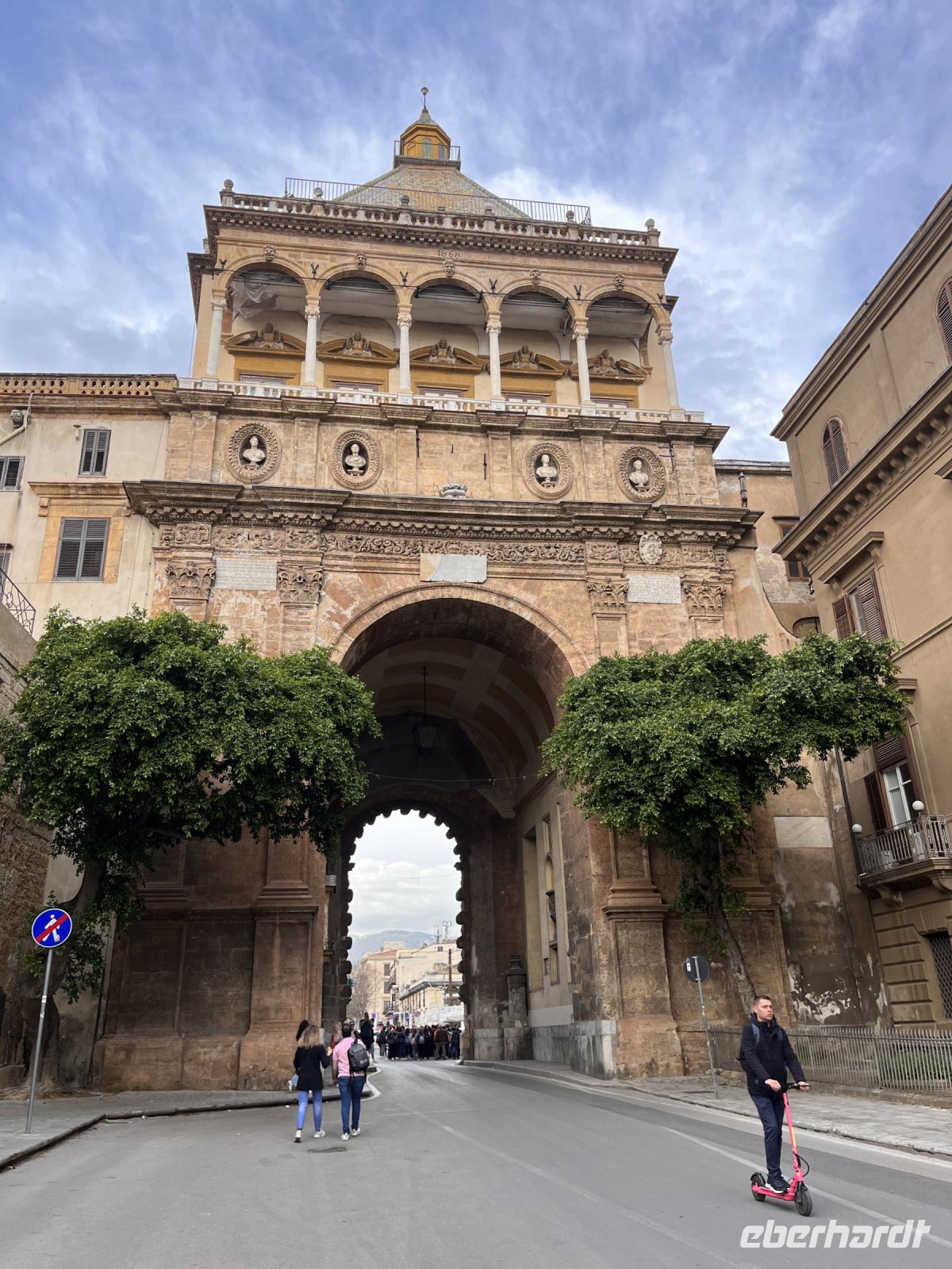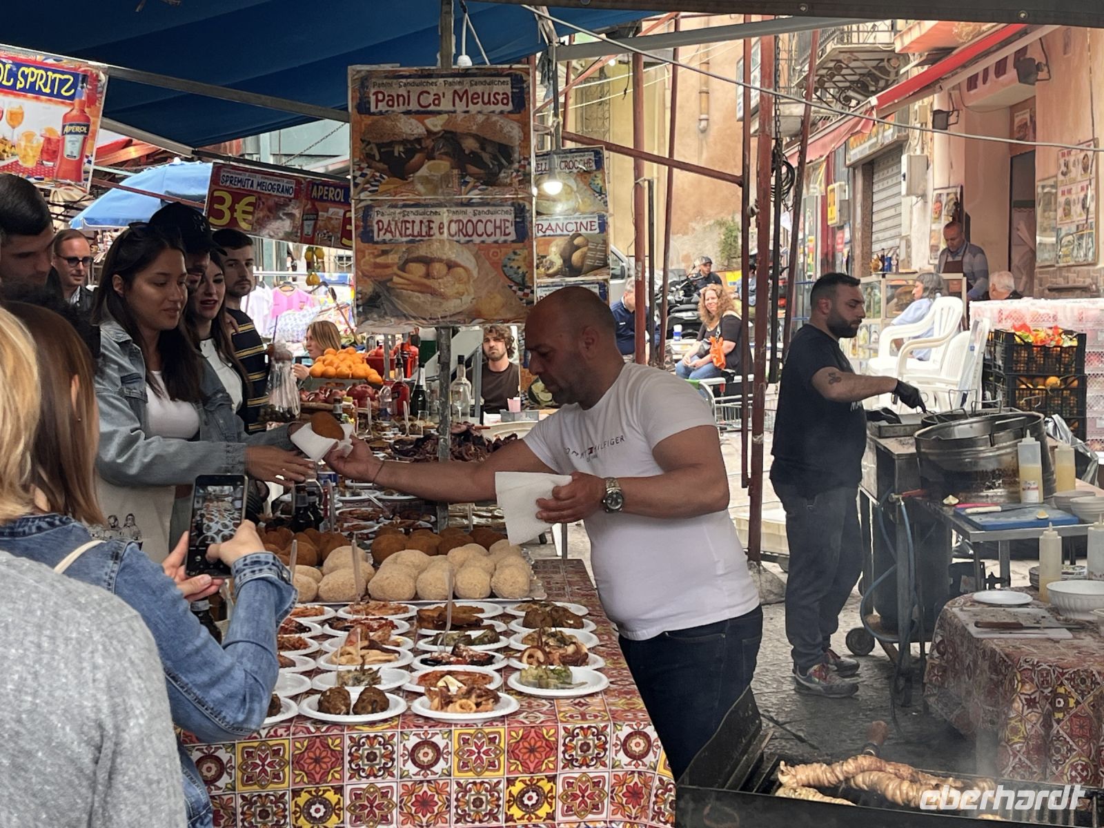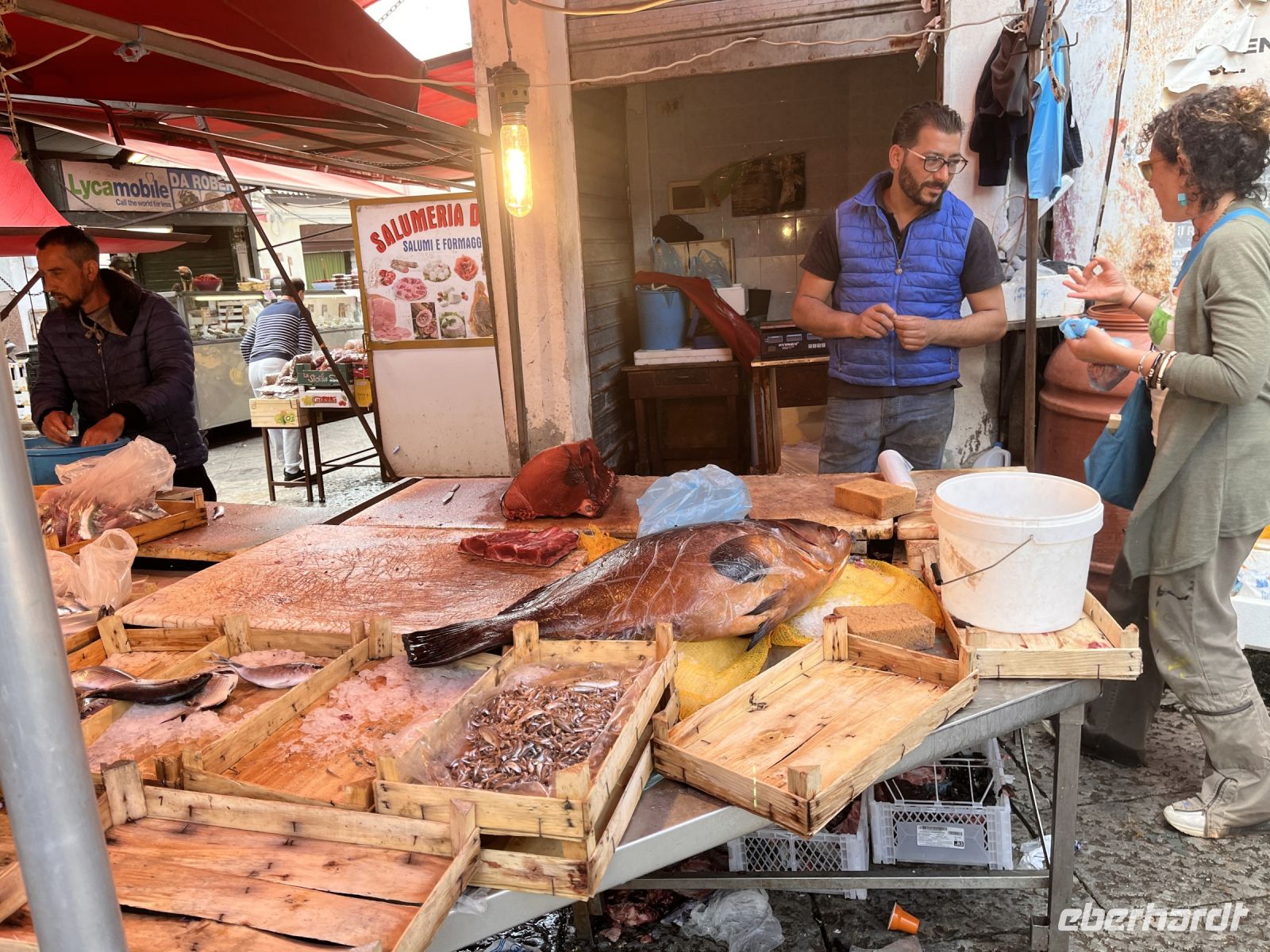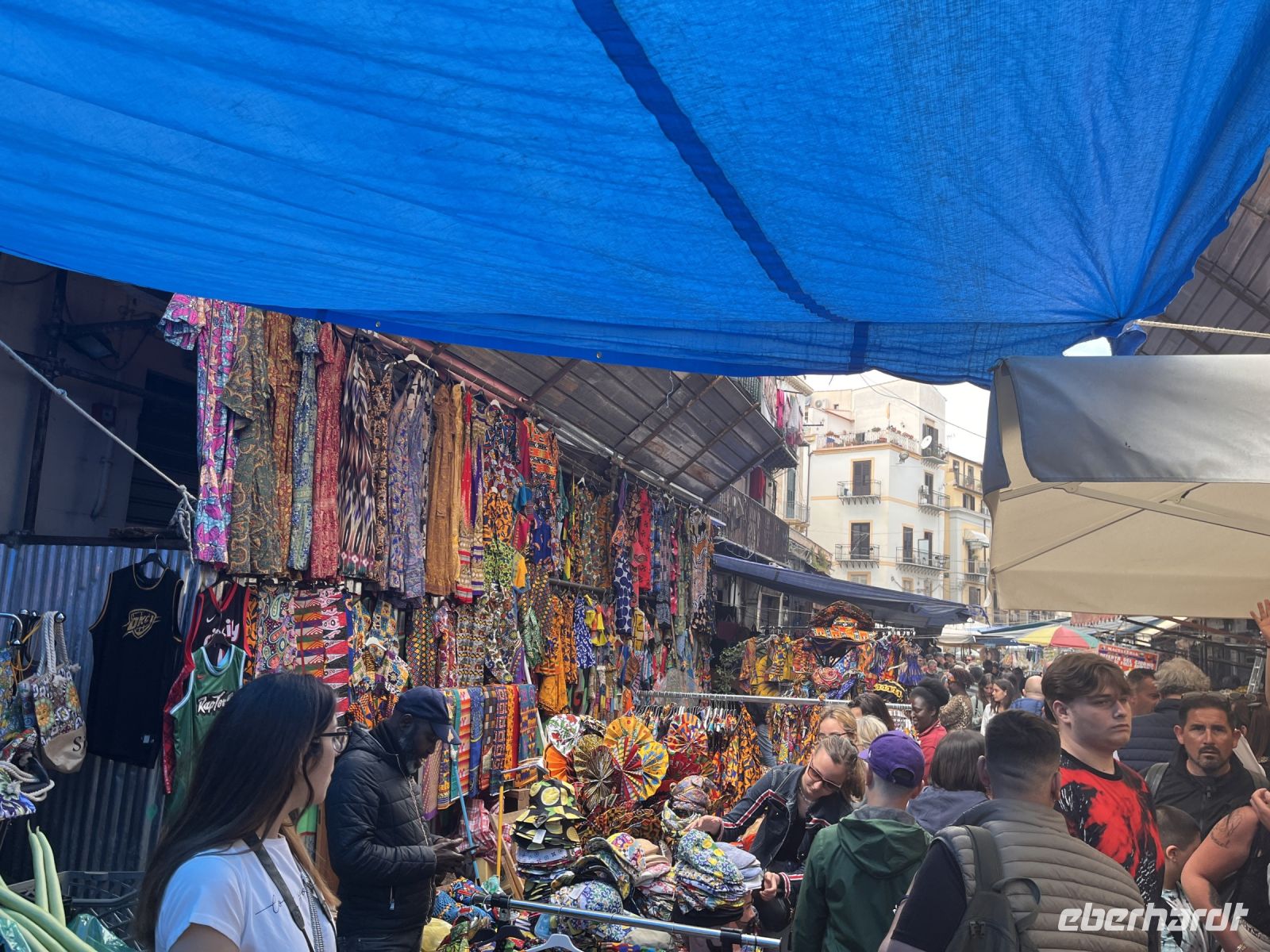 Weiter geht unser Weg in das Stadtzentrum. Unsere nette Lokale Reiseführerin Enza Gibt uns viel Informationen über die Gebäude im Zentrum der Stadt. Wir besichtigen den Schambrunnen, den Platz der vier Jahreszeiten, die Kirche der Martorana. Einige der Reiseteilnehmer begeben sich zu einem kleinen Imbiss auf den Markt der Stadt wo wir Stände, mit lokalen Spezialitäten, Textilien und viel viel anderes bewundern.