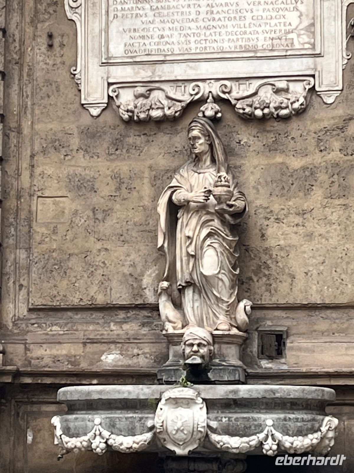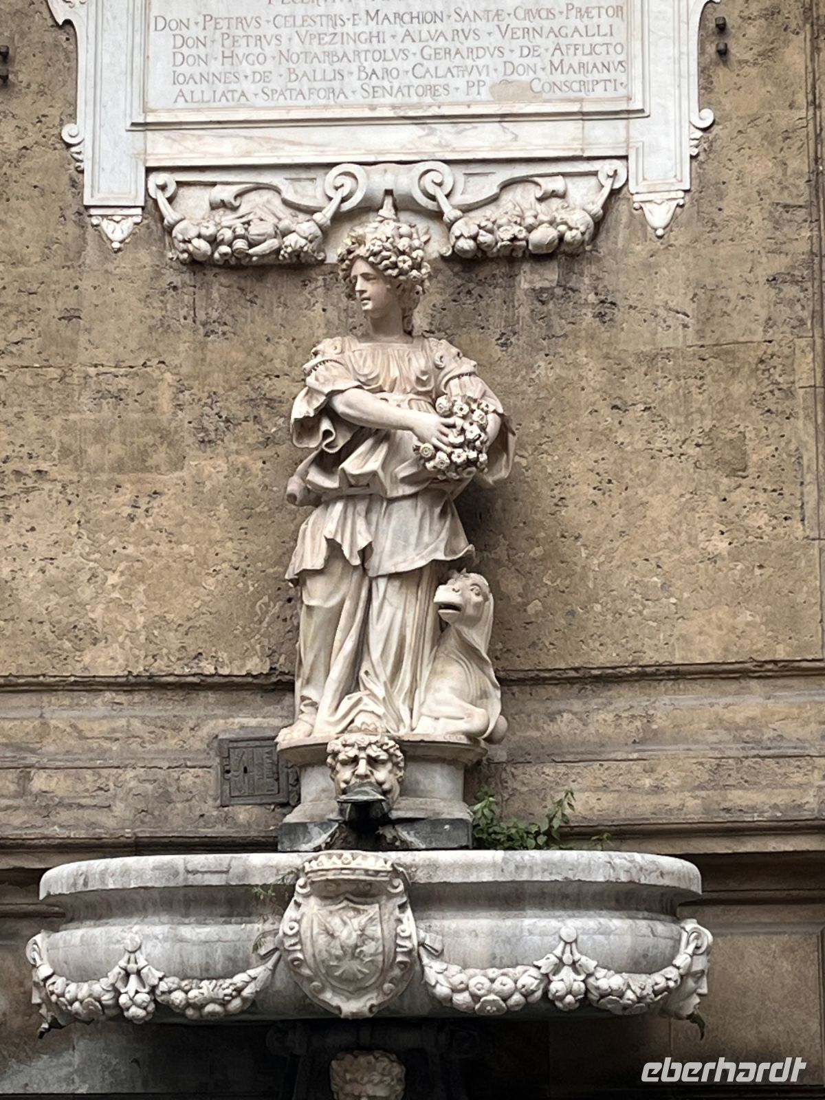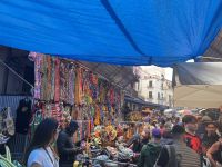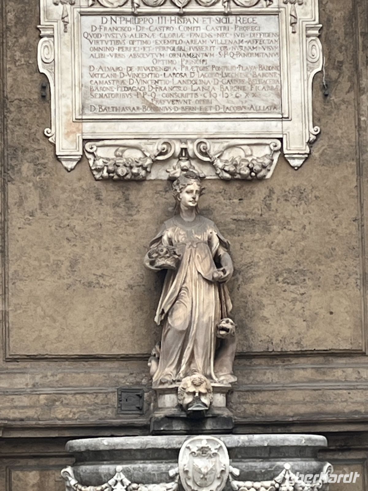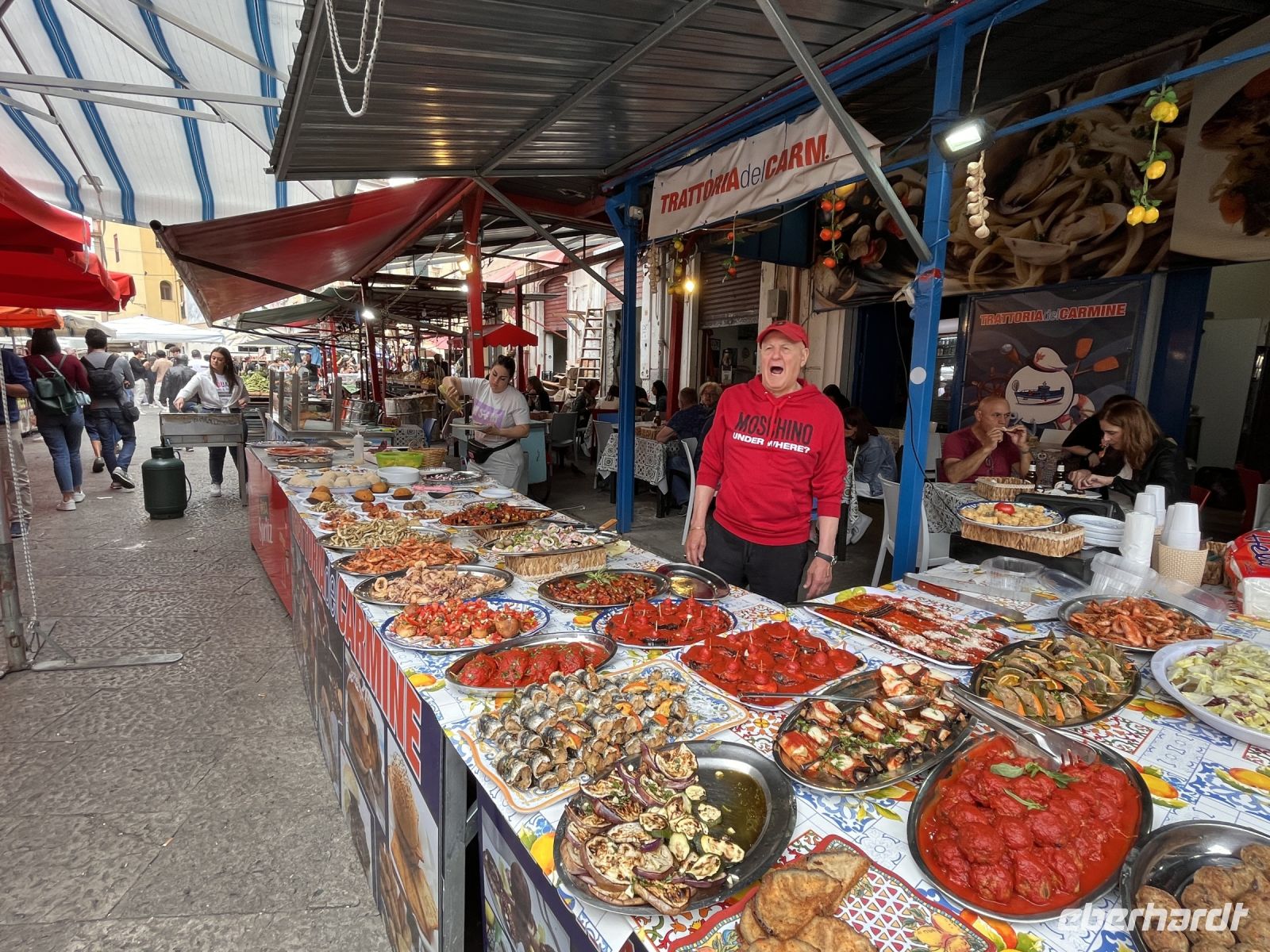 Weiter geht unser Weg in das Stadtzentrum. Unsere nette Lokale Reiseführerin Enza Gibt uns viel Informationen über die Gebäude im Zentrum der Stadt. Wir besichtigen den Schambrunnen, den Platz der vier Jahreszeiten, die Kirche der Martorana. Einige der Reiseteilnehmer begeben sich zu einem kleinen Imbiss auf den Markt der Stadt wo wir Stände, mit lokalen Spezialitäten, Textilien und viel viel anderes bewundern.