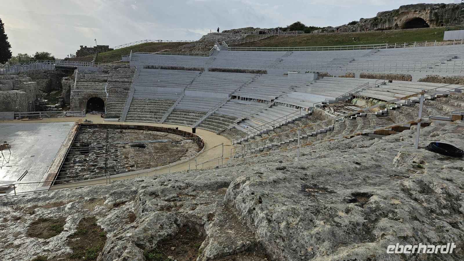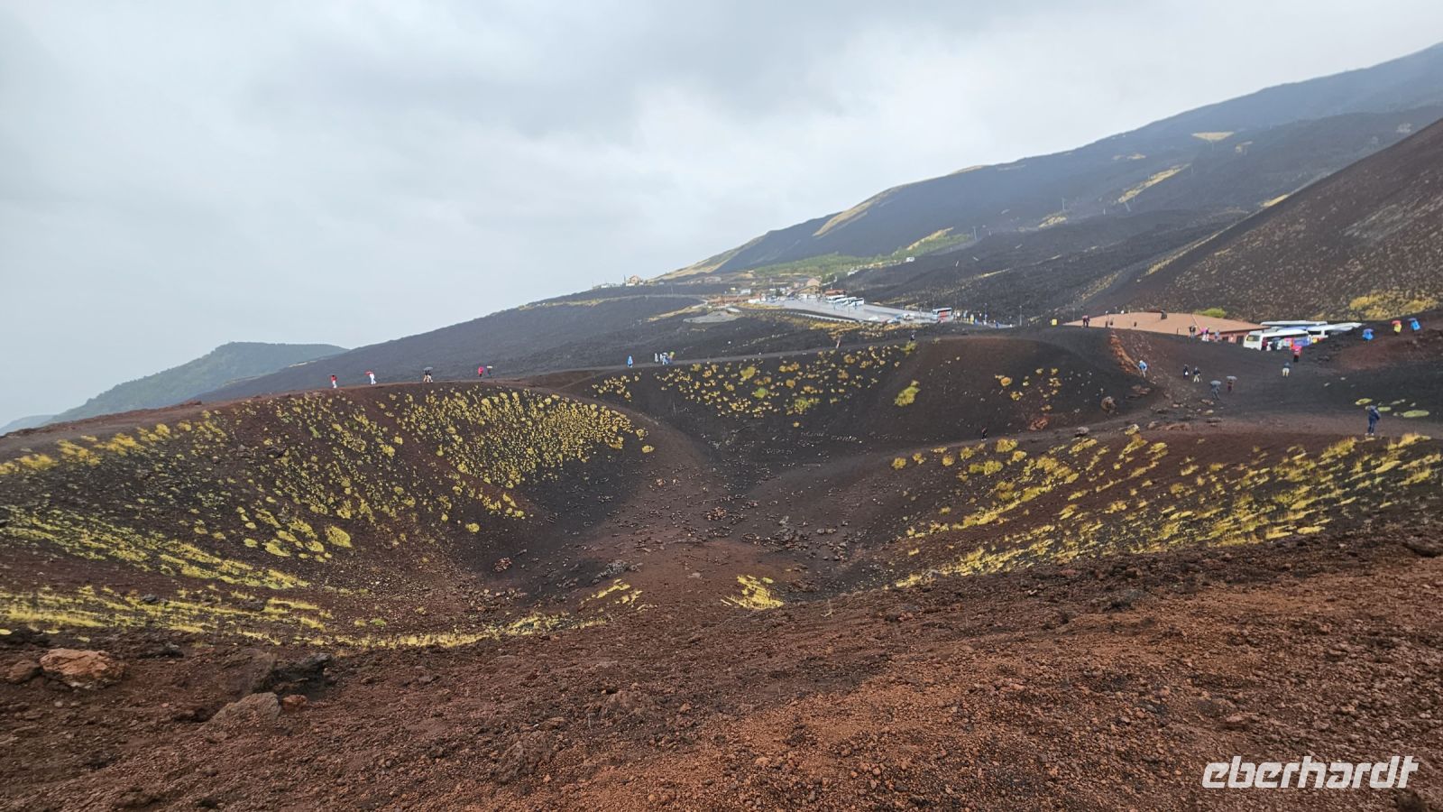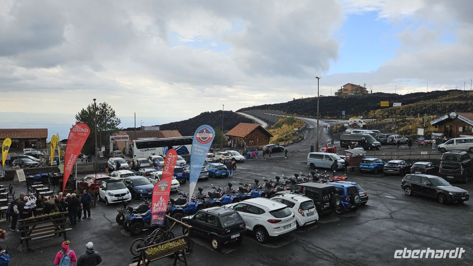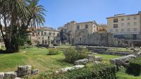 Das Frühstück genossen wir zu Beginn des zweiten Tages noch bei Sonnenschein und einer schönen Aussicht auf das Meer. Danach fuhren wir mit dem Bus zum Ätna, entlang beeindruckender vulkanischer Landschaft. Oben angekommen, meinte es das Wetter leider nicht mehr so gut mit uns. Aufgrund von Regen und Wind fuhren die Seilbahnen nicht, aber alle gaben sich mit der Besichtigung der Silvestri Kratern zufrieden. Diese in ca. 2000 Meter Höhe liegenden Seitenkrater entstanden beim Vulkanausbruch 1892. Nun ging es weiter zur ehemals größten Stadt der Griechen außerhalb von Griechenland: der Hafenstadt Syrakus. Auf der Fahrt dorthin fuhren wir vorbei an diversen Ausbrüchen des Ätna. Die Altstadt von Syrakus befindet sich auf der Insel Ortygia und ist ein angenehmer Mix zwischen kleinen Gassen, antiken Bauwerken, sehr guten Essensmöglichkeiten und einem kleineren Hafenareal. In Syrakus konnte sich jeder zuerst den örtlichen Köstlichkeiten widmen, bevor uns Alex informativ und unterhaltsam durch die Altstadt zur Kathedrale leitete. Im Archäologischen Park Neapolis betrachteten wir neben dem griechischen und römischen Theater auch das Ohr des Dionysos. Was wie eine schöne Grotte aussieht, hat in Wirklichkeit eine dunkle und schreckliche Geschichte. Kurz vor einem schlimmen Regenschauer waren wir wieder im sicheren Bus und fuhren zurück zum Hotel.