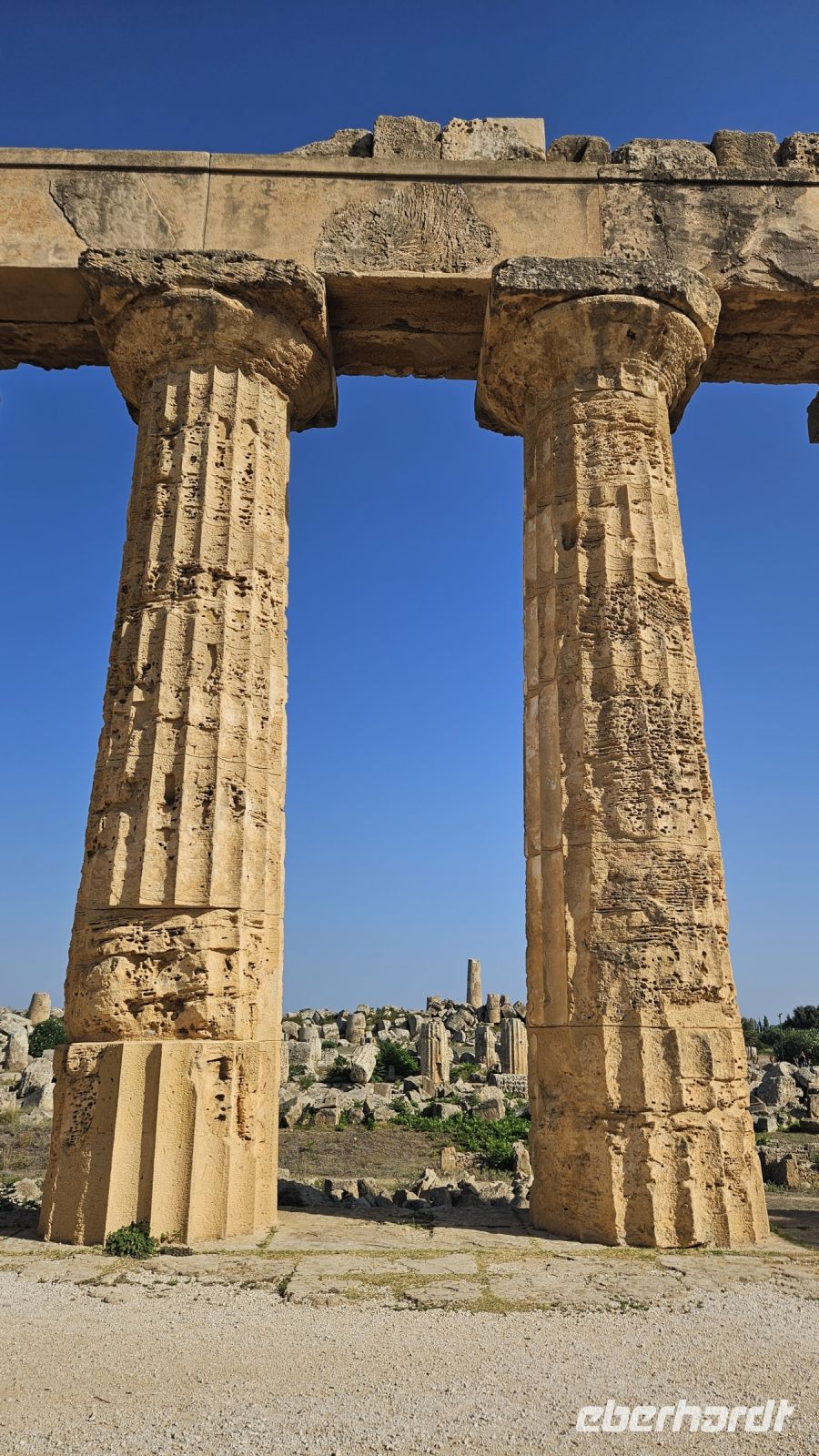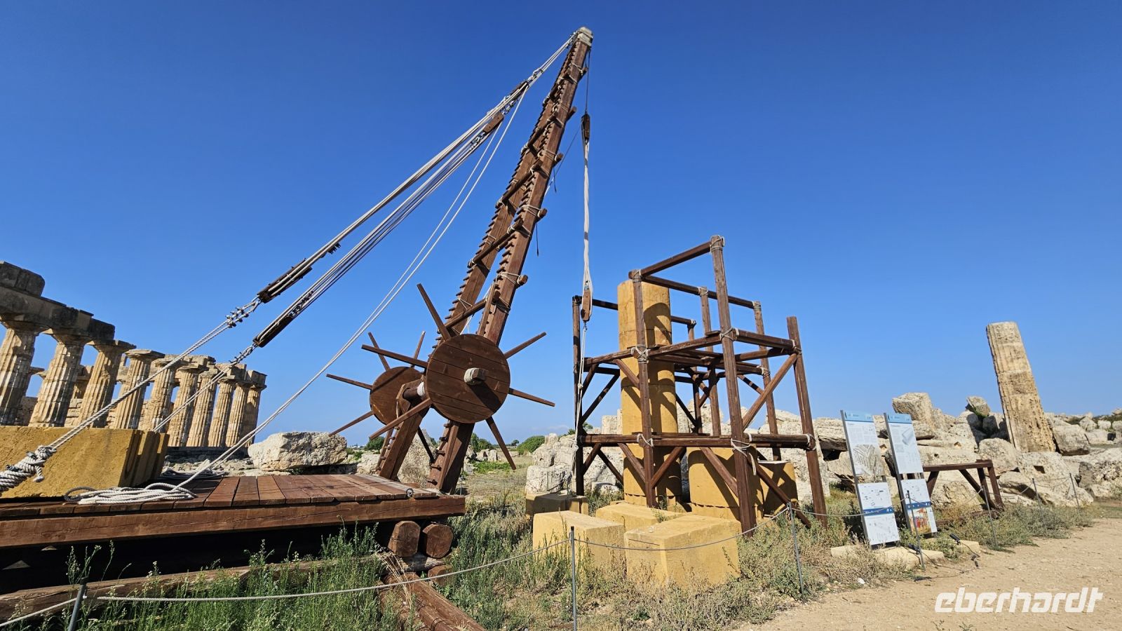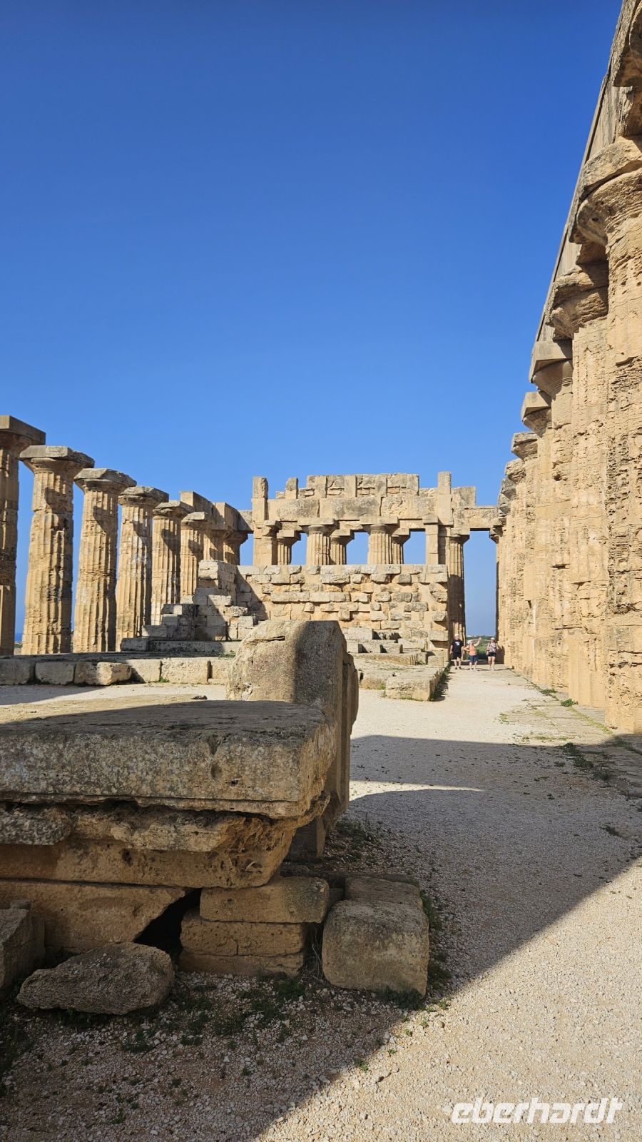 Nach einem leckeren Frühstück mussten wir nur kurz zu unserem ersten Besichtigungsort fahren. Die Ausgrabungsstätten in Selinunte sind sehr weitläufig, sodass wir zwischen der Akrpolis und den Tempeln eine Bimmelbahn nutzen mussten, was zur allgemeinen Erheiterung beitrug. Fun Fact: Der Name „Selinunte“ leitet sich vom griechischen Wort „Selinon“ ab, das auf den wilden Sellerie hinweist der in der Stadt wächst und zum Symbol der Stadt wurde. Da man den Tempeln keine genauen Götter mehr zuordnen kann, werden sie mithilfe von Buchstaben bezeichnet. Unsere Fragen nach, wie man solche Tempel damals bauen konnte, wurden teilweise mit der Konstruktion eines Seilzuges beantwortet. Von der Akropolis aus hatten wir zudem einen wunderbaren Blick über das Meer.