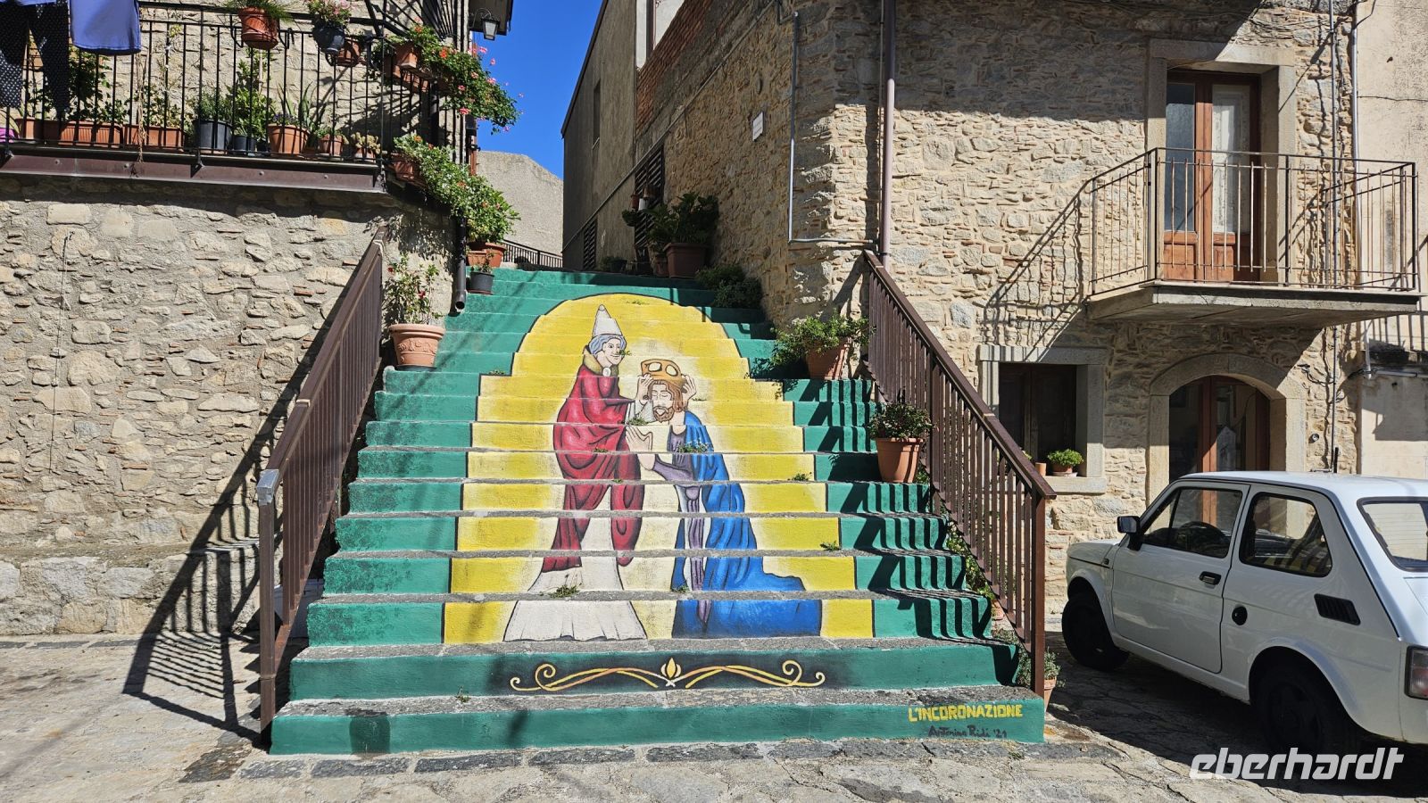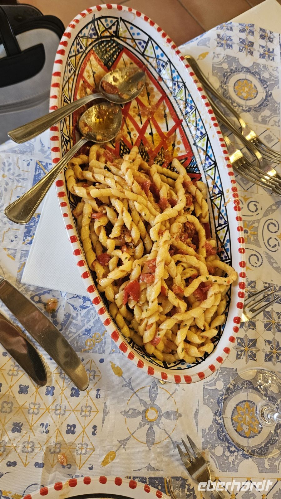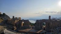 Heute stand der letzte Tag vor der Heimreise an. Mit dem Bus ging es von unserem Hotel in das Nebrodi- Gebirge im Norden Siziliens. Unser Bus schlängelte sich Serpentinen hinauf zum Bergstädtchen Montalbano Elicona in 900 Meter Höhe. Die Region ist stark landwirtschaftlich geprägt und im Winter kann hier auch schonmal Schnee fallen. Um dann die Berge hochzukommen, besitzen viele der Bewohner einen Fiat Panda 4x4. Sie sind überall. ?? Manche erkundeten das Städtchen auf eigene Faust, manche folgten unserem Reiseleiter Alex durch die verwinkelten Gassen des Bergdorfes. Auch kulinarisch waren die Cafés des Ortes wieder wunderbar aufgestellt mit sizilianischem Gebäck. Nachdem wir das schönste Dorf Italiens 2017 verlassen haben, ging es weiter zur Hochebene Agrimusco, wo uns Alex auf einer kleinen Wanderung Geschichten zu den bizarren Megalithen und ihres Ursprungs erzählte. Die Megalithen sind wunderbar gelegen, sodass man von dort aus, einen schönen Ausblick auf das Nebrodi Gebirge hat. Auf unserem Weg nach unten ins Tal mussten wir noch einen kurzen Disput mit einem entgegenkommenden Motorradfahrer klären. Ansonsten war die Fahrt, im Gegensatz zur Aussicht unaufregend. Nach einer kurzen Verirrung fanden wir auch unser Mittagsrestaurant „Borgo San Nicolao“. Dort fühlten wir uns mitten in Sizilien angekommen. Es war Sonntag und nicht nur wir, sondern auch die Einheimischen wollten zu Mittag essen. Zudem war das Essen „delizioso“. Zufrieden stiegen wir wieder in den Bus ein und machten uns auf den Weg nach Taormina vorbei an der Bucht von Naxos, der „Isola Bella“ und der Heimatstadt unseres Reiseleiters. Die Stadt Taormina ist zauberhaft an der Terrasse des Monte Tauro gelegen. Das Teatro Greco (Griechisches Theater) ist nicht nur ein beeindruckendes antikes Bauwerk, sondern bietet auch einen wunderbaren Blick auf das Meer. Nach einem letzten sizilianischen Eis ging es für uns wieder zum Hotel der ersten Tage.