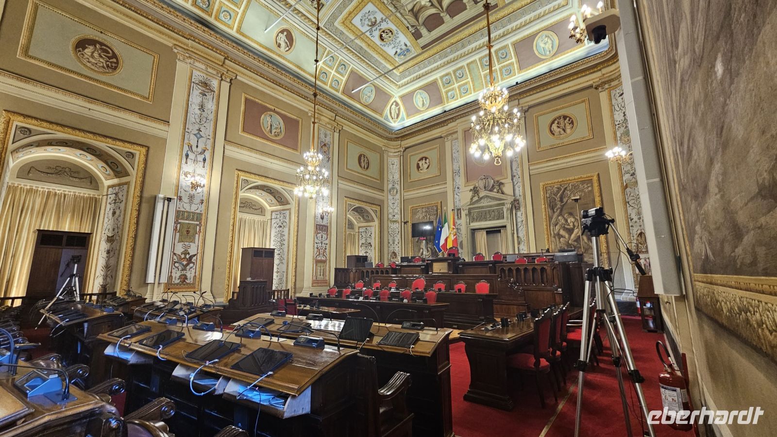 Ganz entspannt startete die Rundreise für fast alle 24 Gäste ab dem Dresdener Flughafen. Bereits vom Flugzeug aus, konnten wir erste Blicke auf die Insel werfen, die für die nächsten acht Tage unser Zuhause sein wird. Gleich nach dem Ausstieg aus dem Flugzeug, zog ein wolkenverhangener Ätna alle Blicke auf sich. Im Hotel "Santa Tecla Palace" angekommen, trafen wir auf unseren Reiseleiter Alex. Direkt am Wasser liegend, bot uns das Hotel einen guten Blick aufs Meer. Einige Gäste nutzten noch die Gelegenheit zu einem Aperitif auf der Terrasse und konnten weitentfernte Blitze über dem Wasser beobachten. Ein echtes Lichtspektakel. Bei einem Buffet mit italienischen Köstlichkeiten ließ sich der erste Tag wunderbar abschließen.