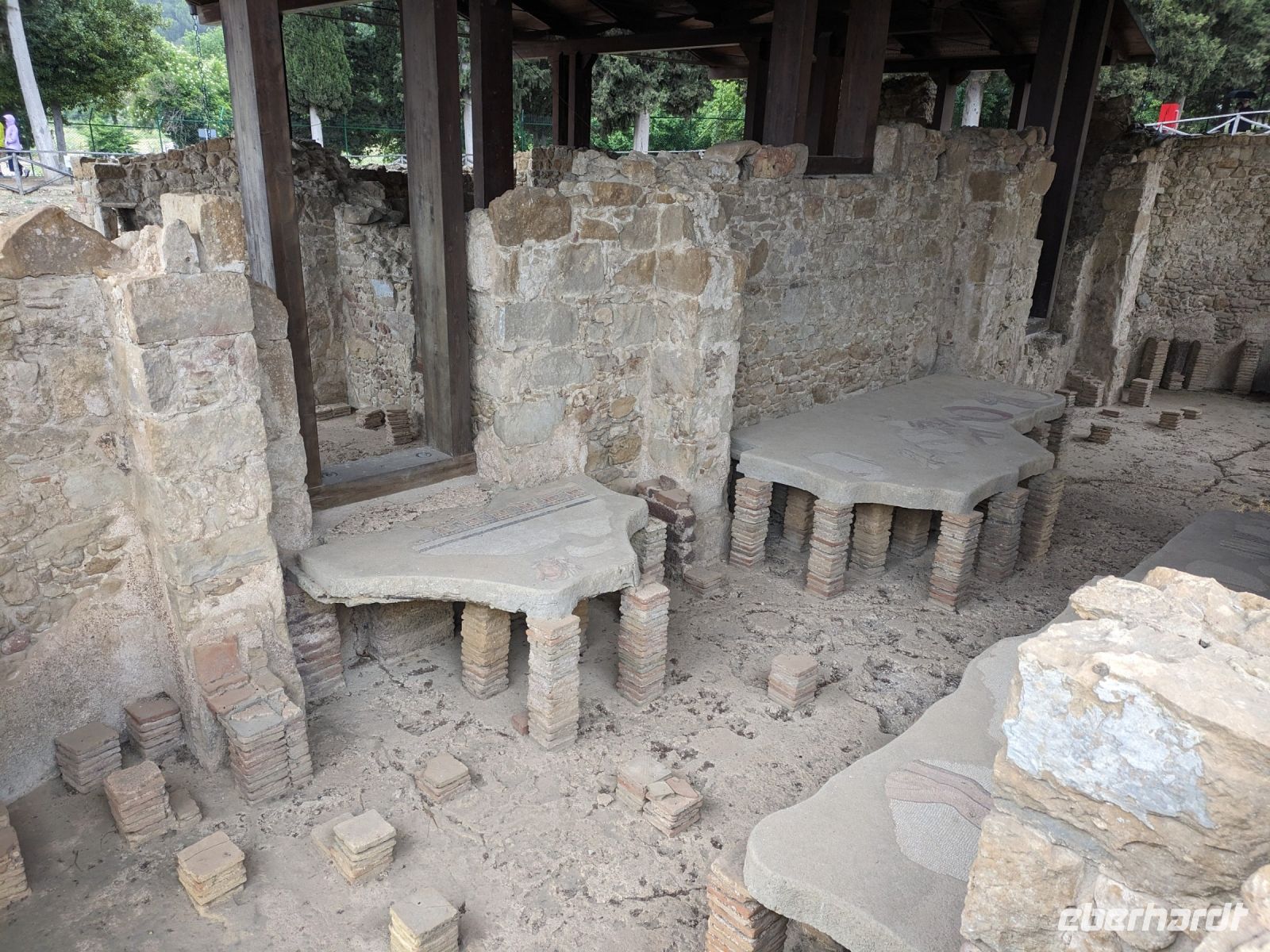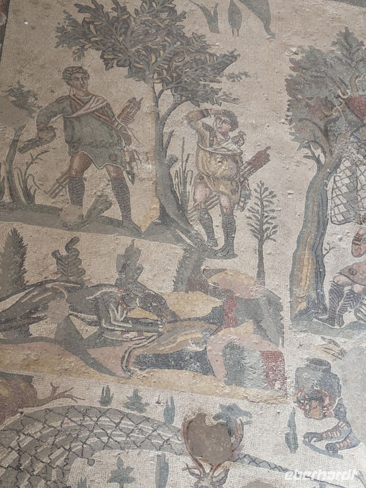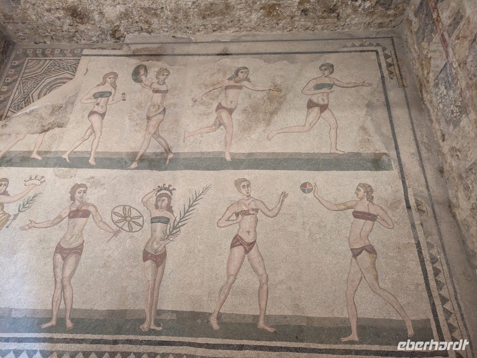 Es ist mit Worten schwer zu beschreiben. Man muss es sehen. Am Beeindruckensten waren die Mosaike auf den Fußböden. Sie bestehen aus über 100 Millionen einzelner Steine. Das ist mehr als in jedem anderen Gebäude der römischen Zeit. Für die Mosaike wurden 37 unterschiedliche Mosaikfarben verwendet. Besonders bekannt sind die Mosaike mit Jagdszenen und die Bikimädchen.