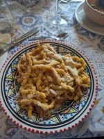Es gab typische sizilianische Spezialitäten zum Abend und zum Frühstück vieles auf dem Hof selbst hergestelltes wie Kuchen, Eier, Saft, oder Honig.