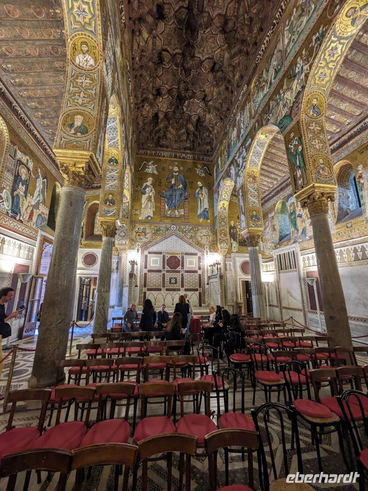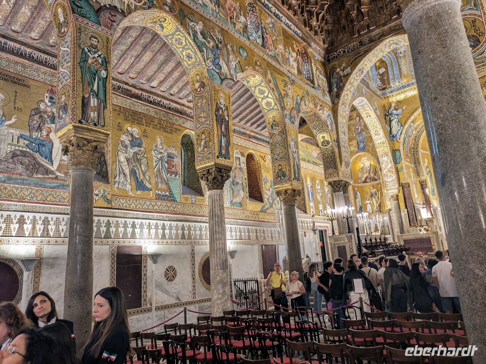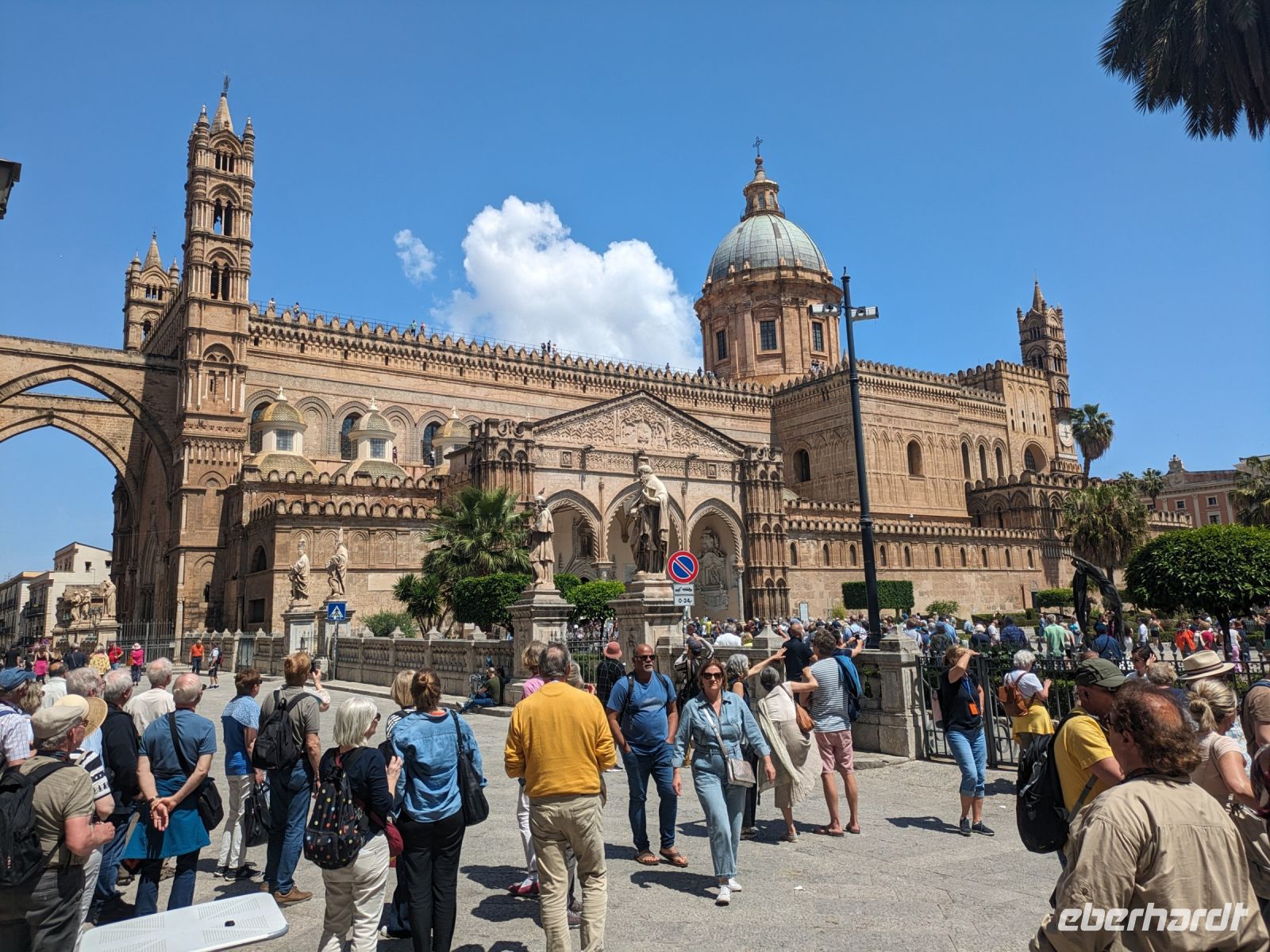 Palermo ist die Hauptstadt von Sizilien und fünftgrößte Stadt Italiens. In Palermo gibt es sehr viele touristische Ziele. Zunächst besichtigten wir die Capella Palatina. Leider waren an diesem Tag die Schulklassen etwas schneller und so mussten wir 1,5 Stunden warten. Wir wurden jedoch entschädigt. Die Capella Palatina (Hofkapelle des Palastes) war zugleich Kirche und Thronsaal von Roger II. Überall sahen wird das Wappen der Staufer, der Löwe mit erhobener Tatze. Die Capella Palatina ist ein Wunderwerk der Malerei, Phantasie und Architektur. Sie stellt eine Symbiose aus lateinischen, byzantinischen und arabischen Stilelementen dar.