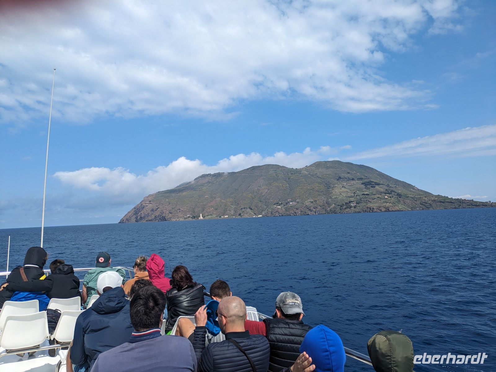 Bald tauchte zunächst die Insel Vulkano auf und wir sahen viele Fumarolen. Das sind Spalten im Boden aus denen vulkanische Gase entweichen. Typischerweise gibt es sie in Gegenden mit seismischen bzw. vulkanischen Aktivitäten.