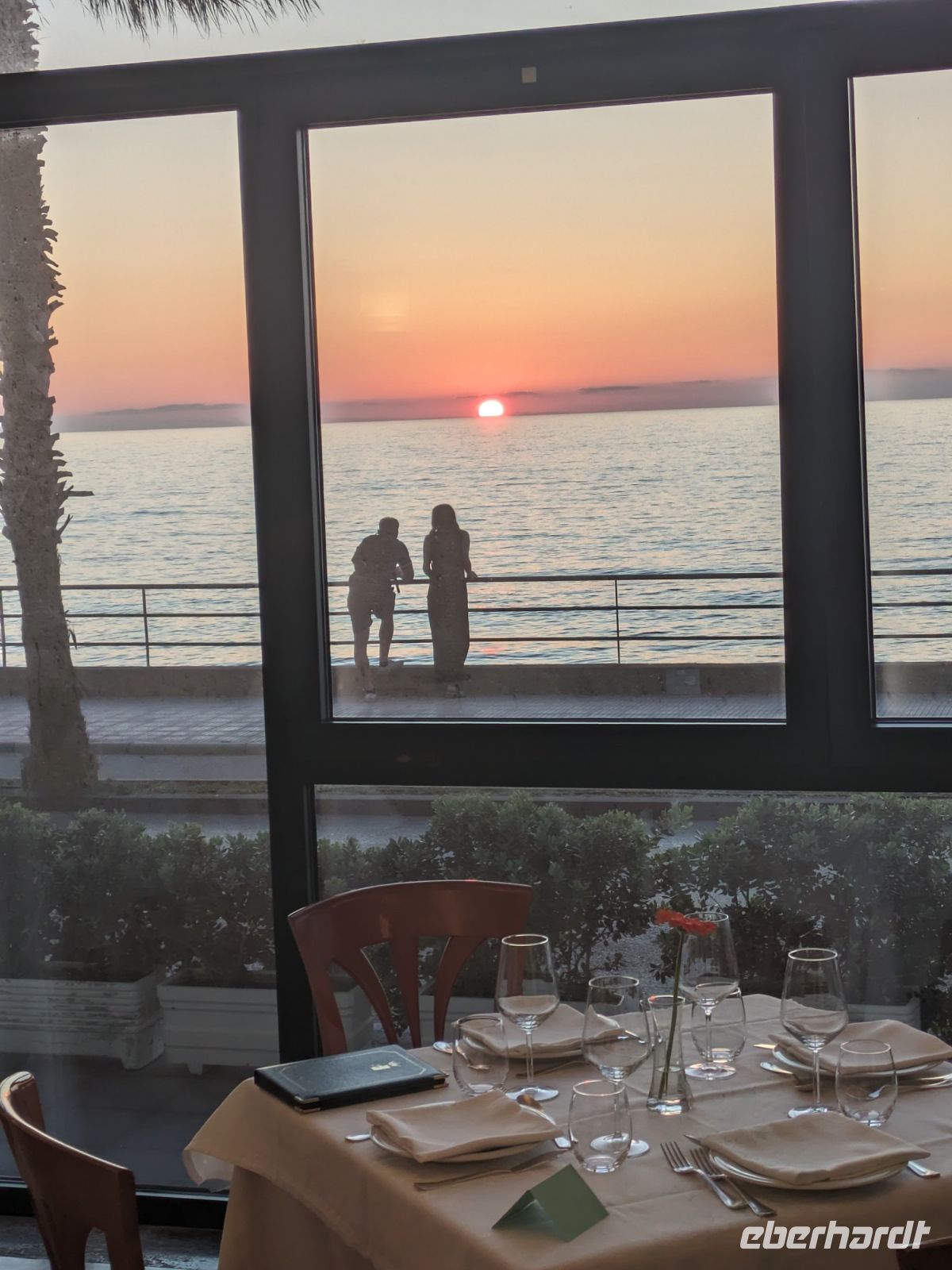 Unser neues Hotel lag direkt am Meer und strahlte den Charme der fünfziger Jahre aus. Weiße Fassade, schweres an Silber erinnerndes Besteck, Bedienung beim Abendessen, französische Fenster und grüne drehbare Fensterläden. Am besten war der Sonnenuntergang, den wir direkt vom Speisesaal aus bewundern konnten. Fast automatisch mussten wir an das Lied der Caprifischer denken.