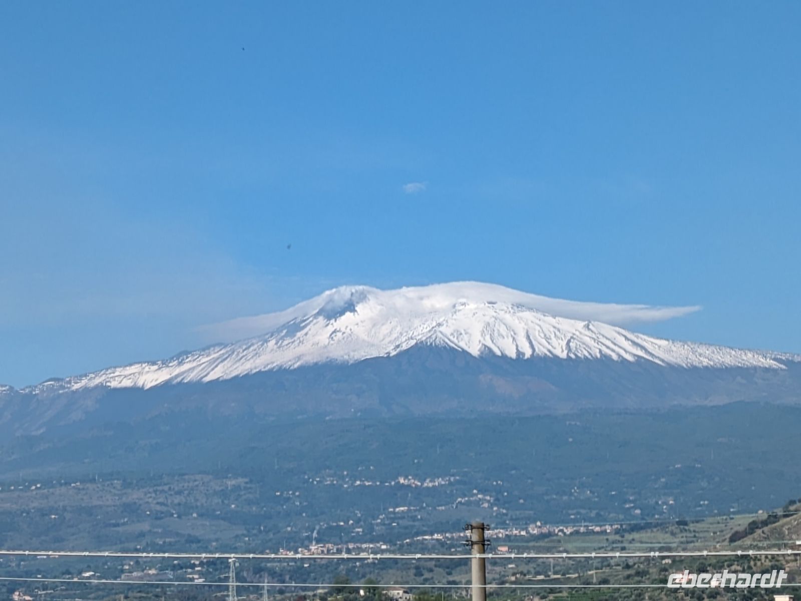 Bei der Fahrt nach Syrakus sahen wir den Ätna mit einer Kuppe aus Schnee bei blauem Himmel, reine Bilderbuchperspektive, phantastisches Panorama! Der Anblick erinnert an den Fujima oder den Kilimandscharo.