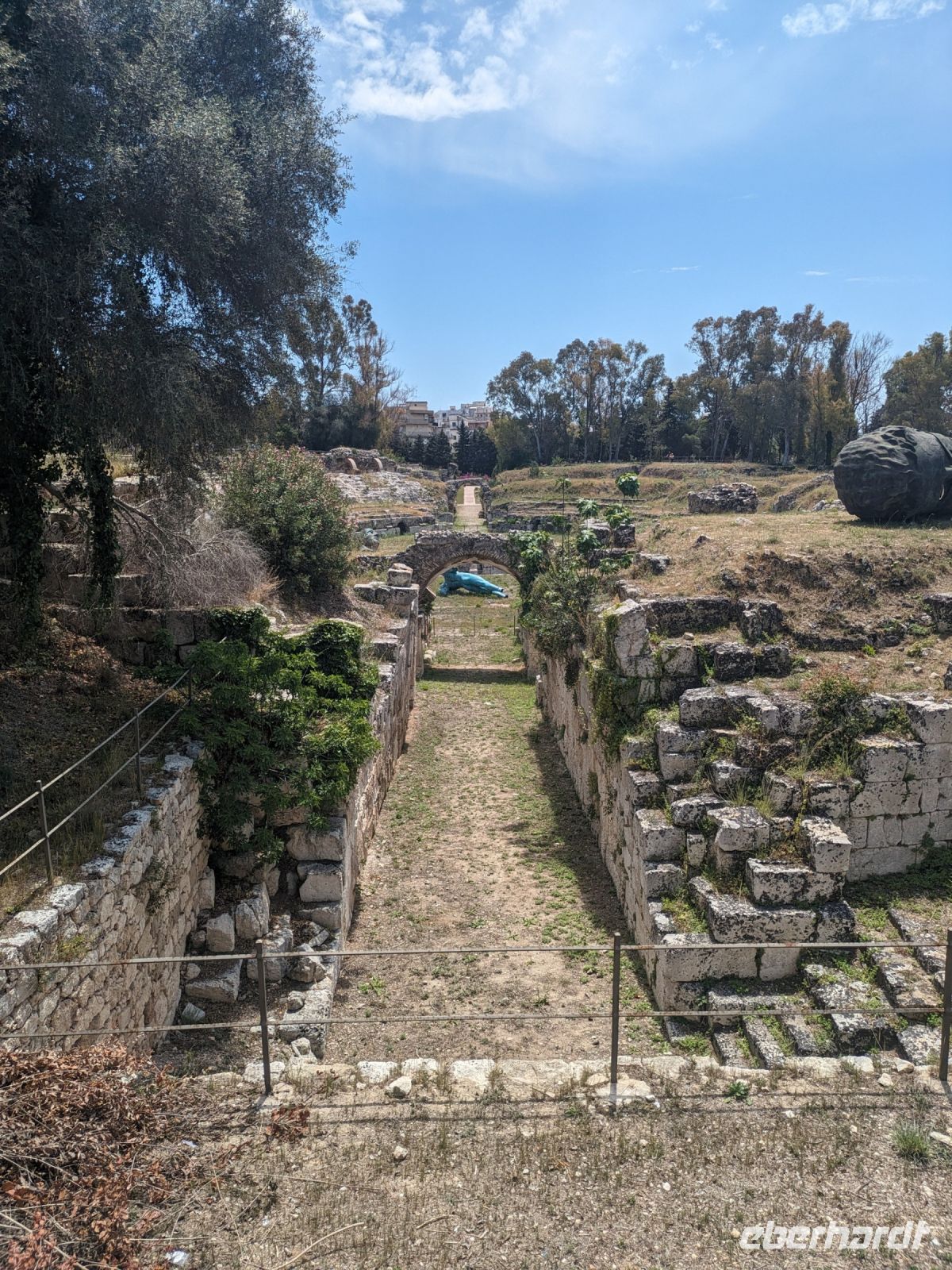 In Syrakus besichtigten wir zunächst das archäologische Zentrum. Das Beeindruckenste dort war aber die Information, dass Sklaven, die in den Steinbrüchen arbeiteten, eine Lebenserwartung von nur 2 Jahren hatten. In den Höhlen gab es ein schönes Echo. Obwohl es nur 22 °C warm war, empfanden wir die Temperaturen aufgrund der Sonne als sehr heiß.