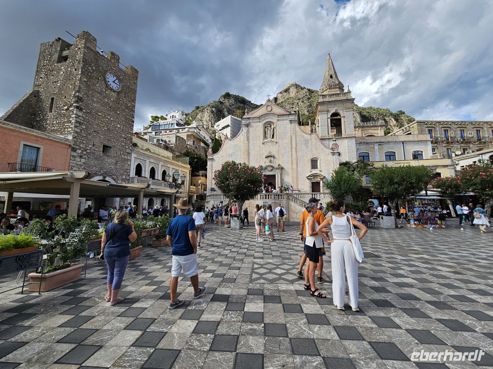 Der Stadtkern punktet mit Villen, Palazzos und kleinen Hotels aus dem 19. und 20. Jahrhundert. Zu beiden Seiten des CORSO UMBERTO zwischen den beiden Stadttoren PORTA MESSINA und PORTA CATANIA können wir auf der Piazza oder in einer der romantischen Gassen das erste Dolce Vita bei Espresso oder CAPONATA geniessen...oder....oder