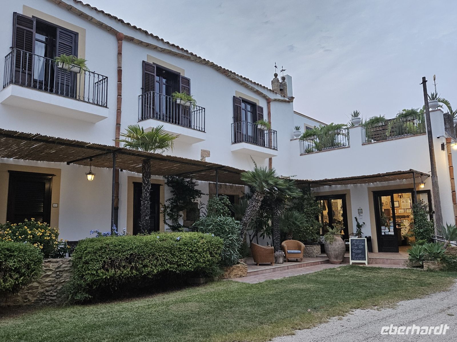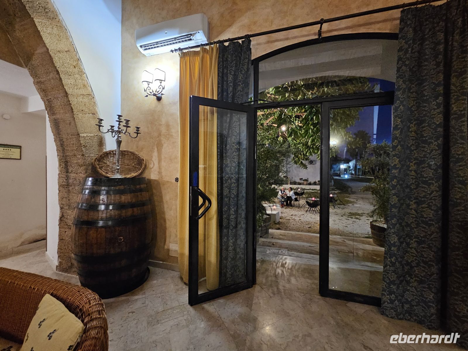 Noch einmal absolviert Rosalba etwa 100 km und so werden wir am frühen Abend im AGRITURISMO Landhotel CASE DI LATOMIE empfangen. Wir sind alle angetan von der ländlichen Idylle, die Casa liegt inmitten einer Olivenplantage. Obwohl alles renoviert wurde, fragt man sich, wann die Landarbeiter heimkommen und ihre Casas beziehen. Nach dem Abendessen sitzen wir auf dem Hof unter beleuchteten Olivenbäumen und geniessen die Ruhe und verarbeiten die ersten Eindrücke dieser Reise.