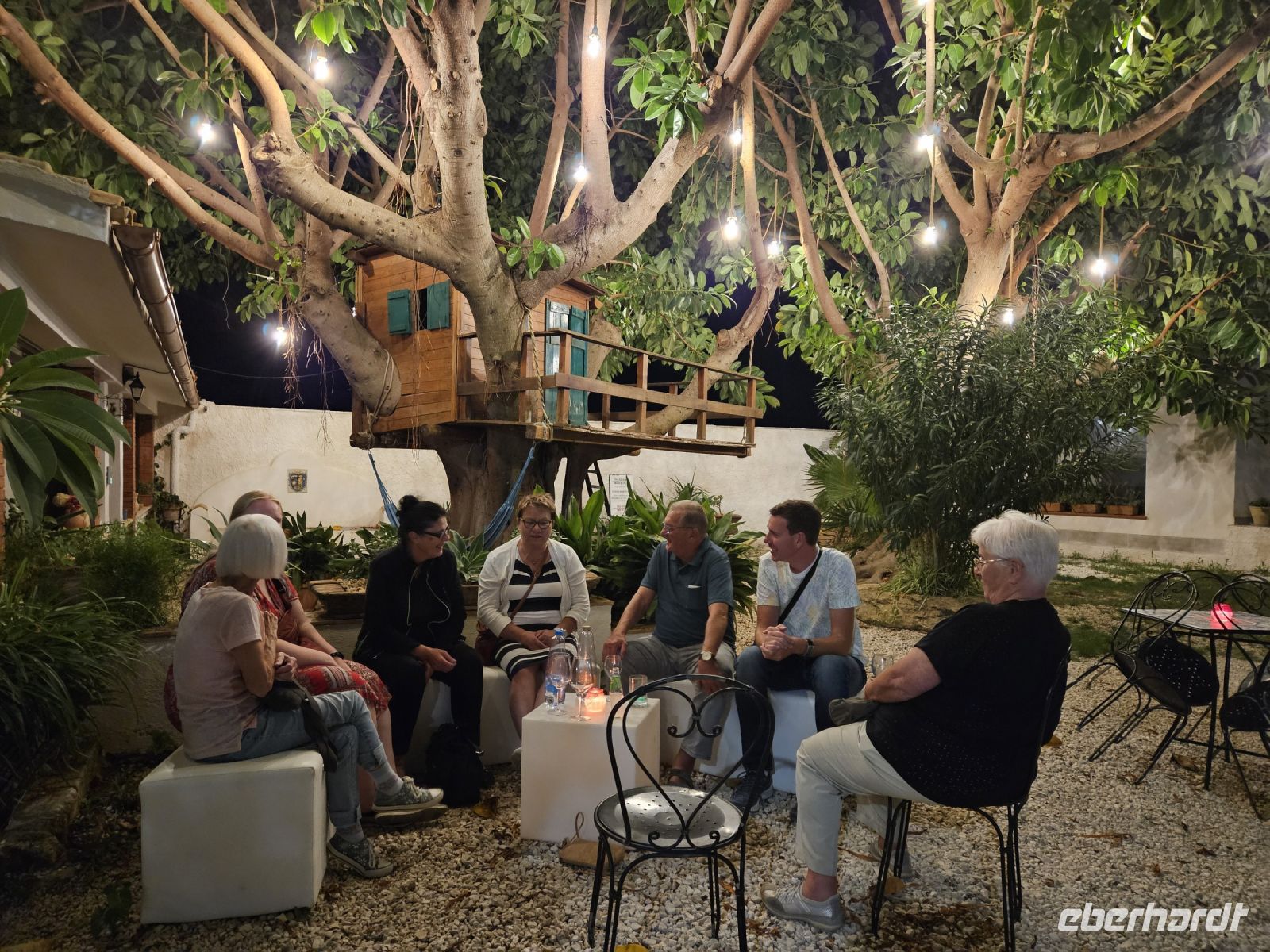 Nach dem Abendessen treffen wir uns zu einer "Kennenlernrunde" auf der Terrasse und läuten den Urlaub offiziell ein.