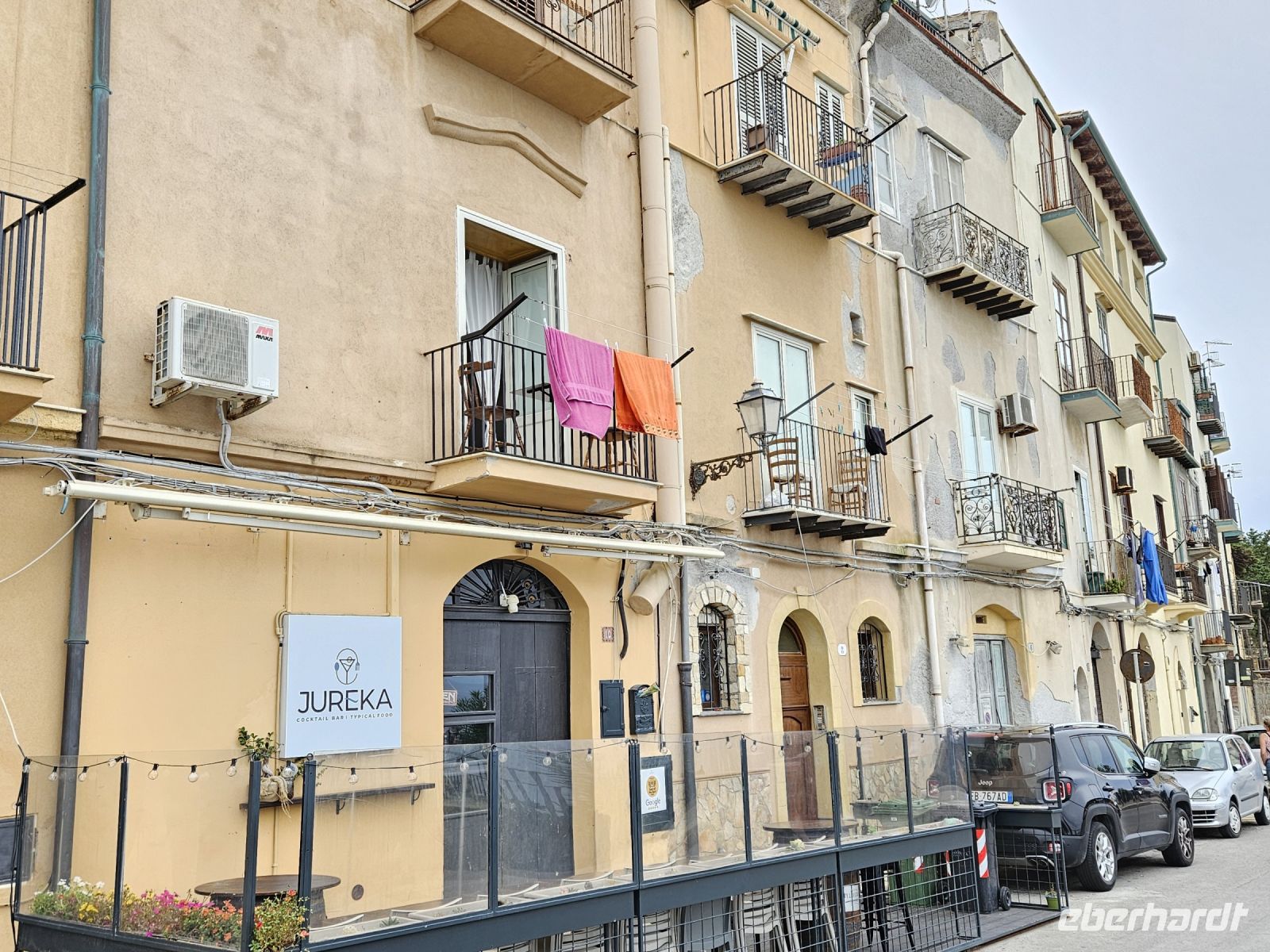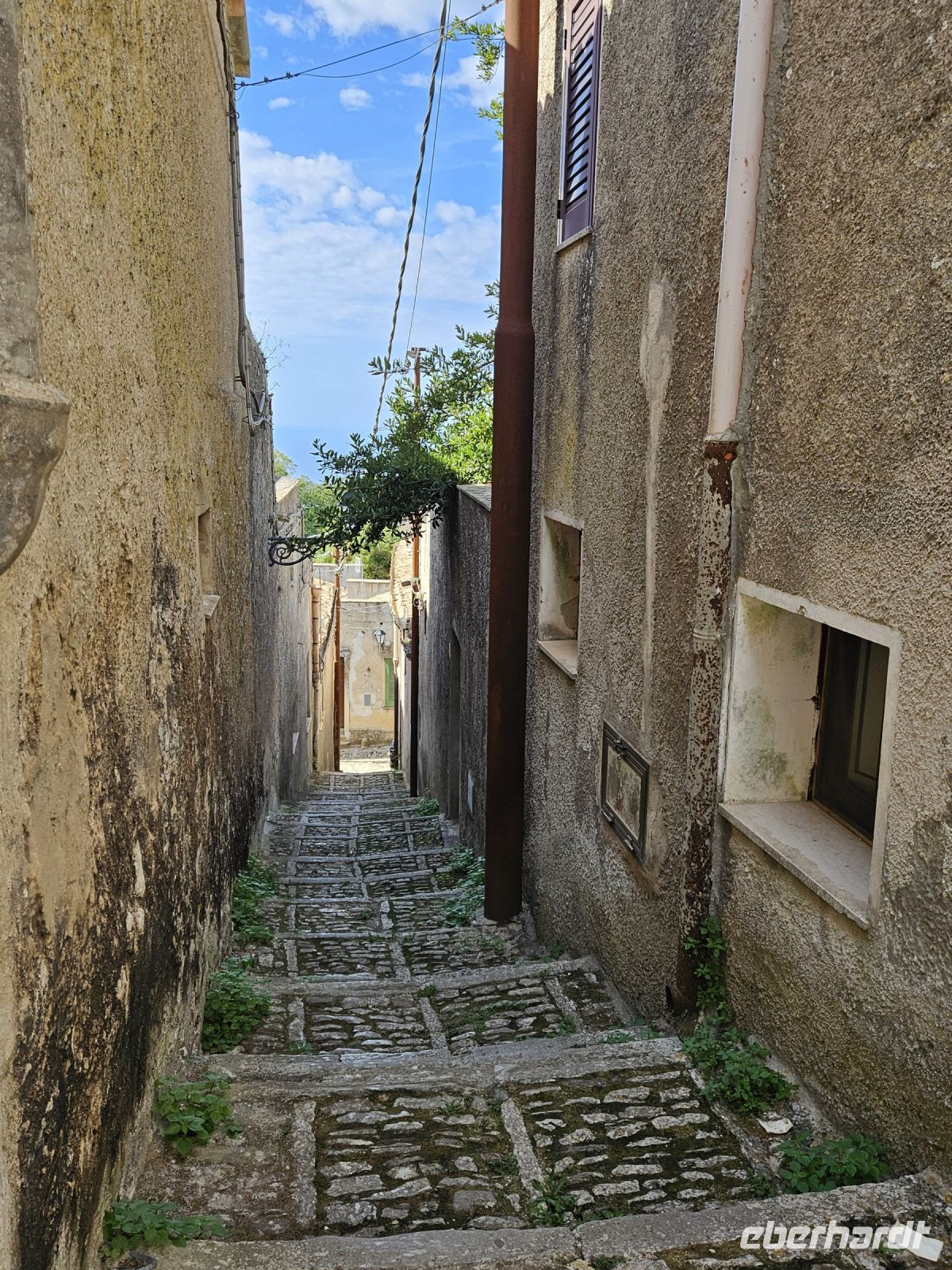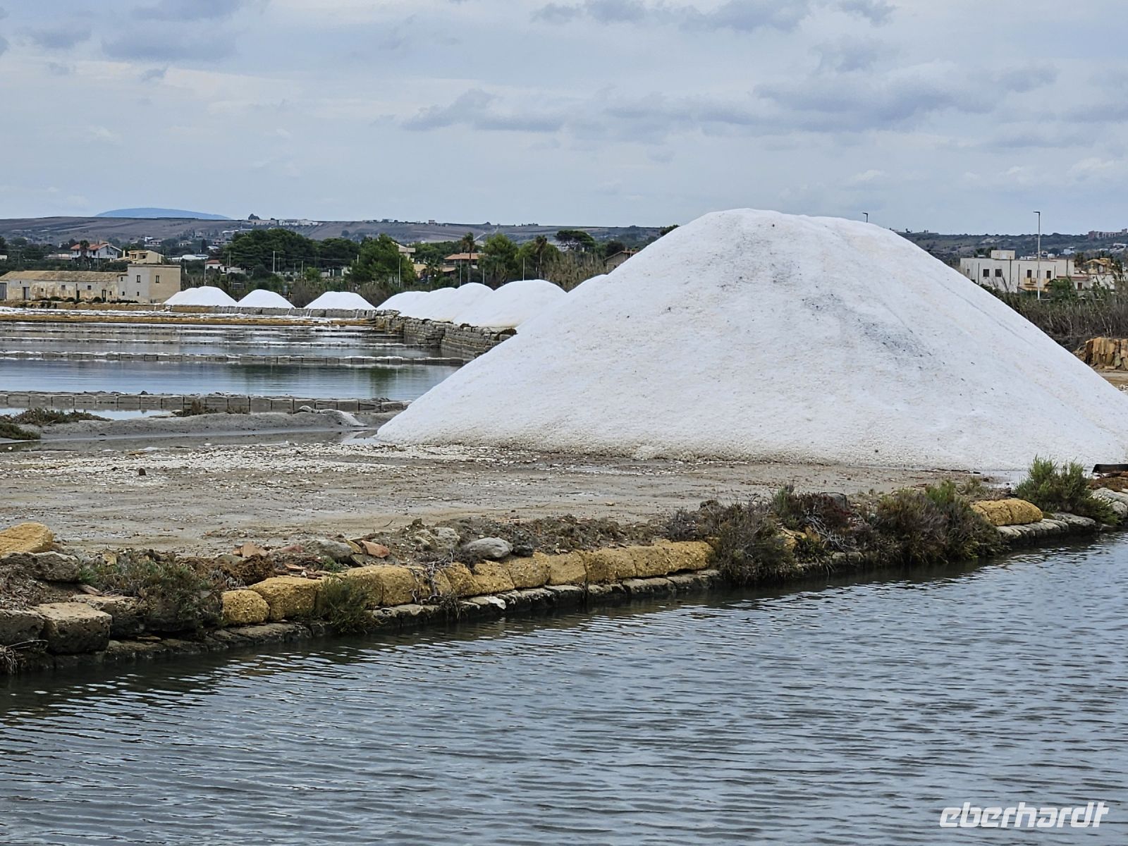 Das nächste Ziel ist ganz anders, wir fahren an der Küste entlang und die Salinenfelder scheinen kein Ende zu nehmen. Die Sonne hat sich beim Fotostopp an den Salinen bei Marsala versteckt und deshalb sind die Fotos nicht 1A, aber es ist angenehm warm und wir freuen uns schon auf das angekündigte sizilianische Mittagessen in der TENUTA FRATELLI SANACORE . ES SCHMECKT WIRKLICH 1A! Vom Essen ein wenig müde, kann man sich auf der Fahrt nach ERICE ausruhen, obwohl schon auf der Anreise spektakuläre Ausblicke auf den Berg und gleichnamigen Ort warten. Wir gehen durch die alten Eingangstore, weiter entlang der Stadtmauer, Kathedrale, vorbei am Turm von König Federico und der Venusburg mit ihren Wachtürmen, schlendern dann durch enge Gassen. Ein Stopp bei Maria gehört unbedingt dazu, ihr Mandelgebäck ist weithin bekannt . In ihrem Cafe/Bäckerei steppt der Bär, aber einige von uns können ihr Gebäck probieren und sogar einen Cappuccino dazu geniessen.