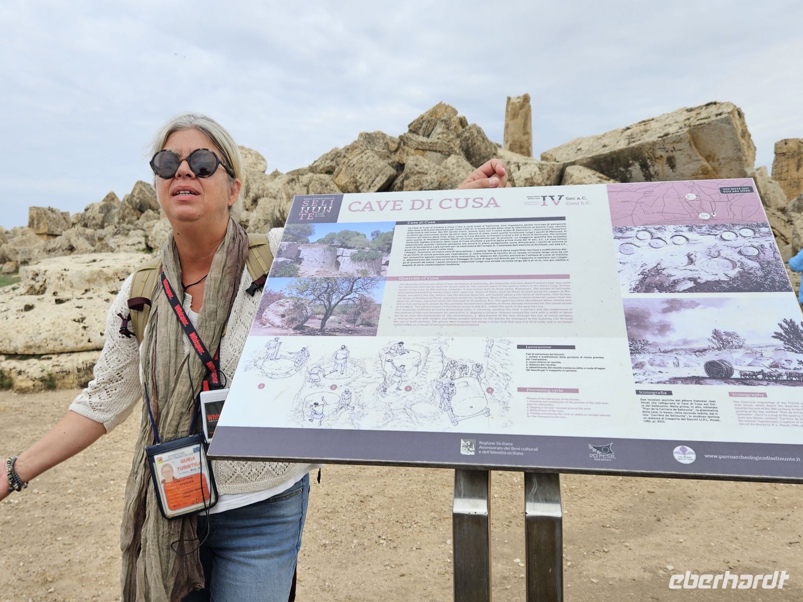 Nach einer fast 1,5 -stündigen Busfahrt erreichen wir unser nächstes Ziel - AGRIGENT - TAL DER TEMPEL. Dort warten die Tempel der HERA, CONCORDIA und des HERAKLES darauf, von uns bestaunt zu werden. Unsere örtliche Reiseleiterin, Christiane, wartet auch hier mit ihrem enormen Wissen Geschichtswissen auf. Hier gäbe es auch noch eine Menge auszugraben, aber wo anfangen damit? Wir haben kein Werkzeug dabei, obwohl die Sicherheitskontrolle nicht so streng war wie angekündigt - Technik kaputt.
