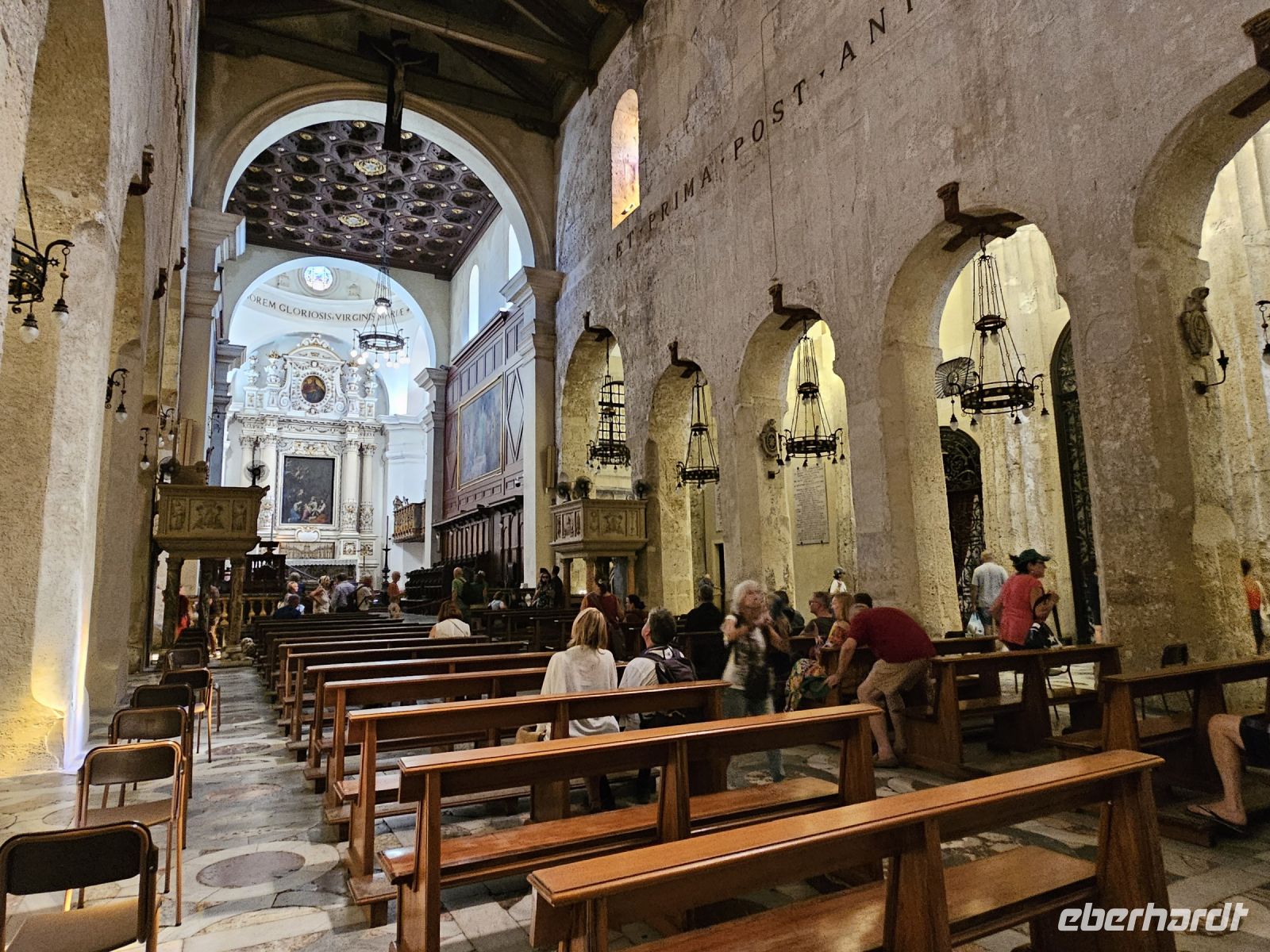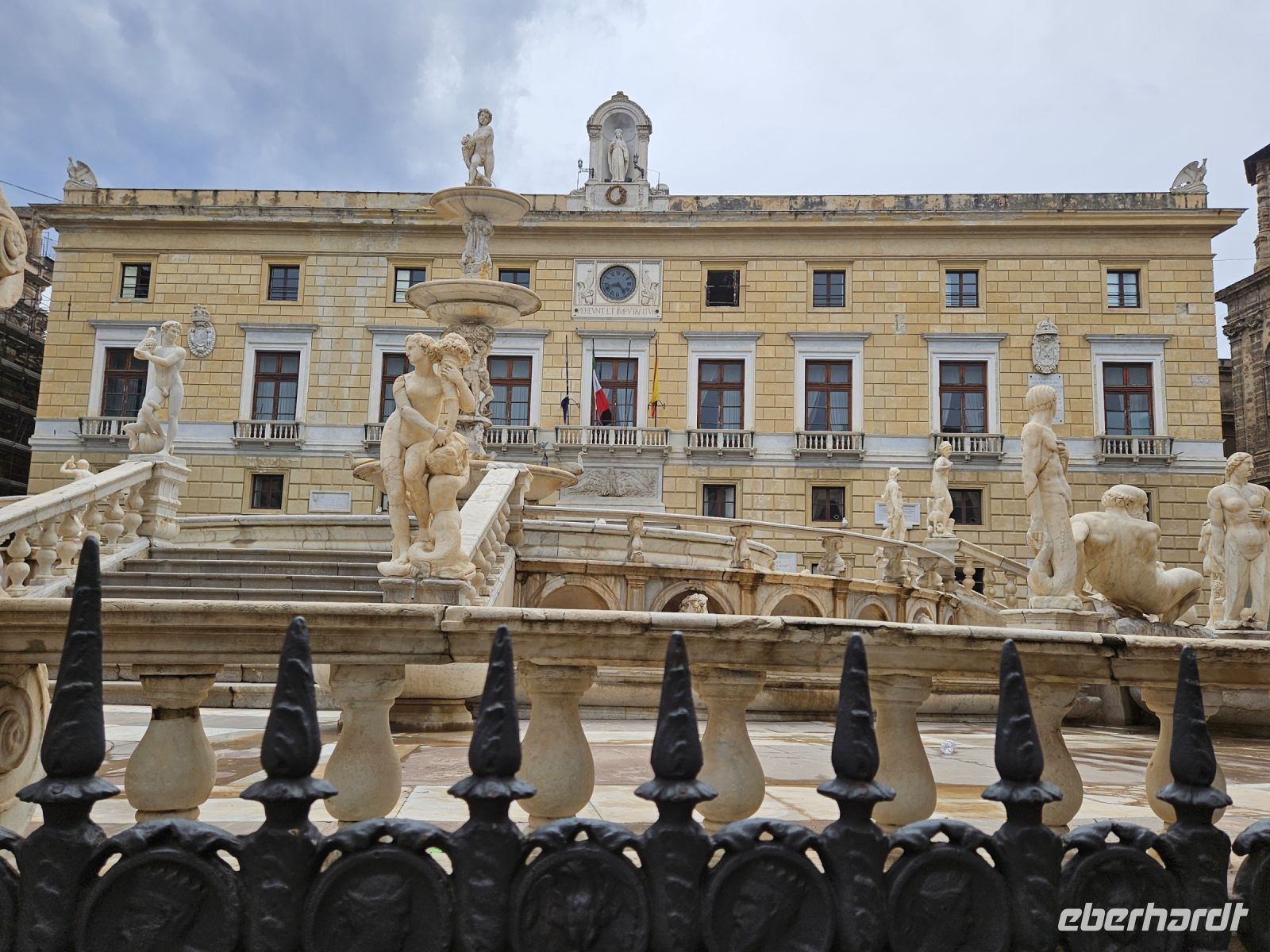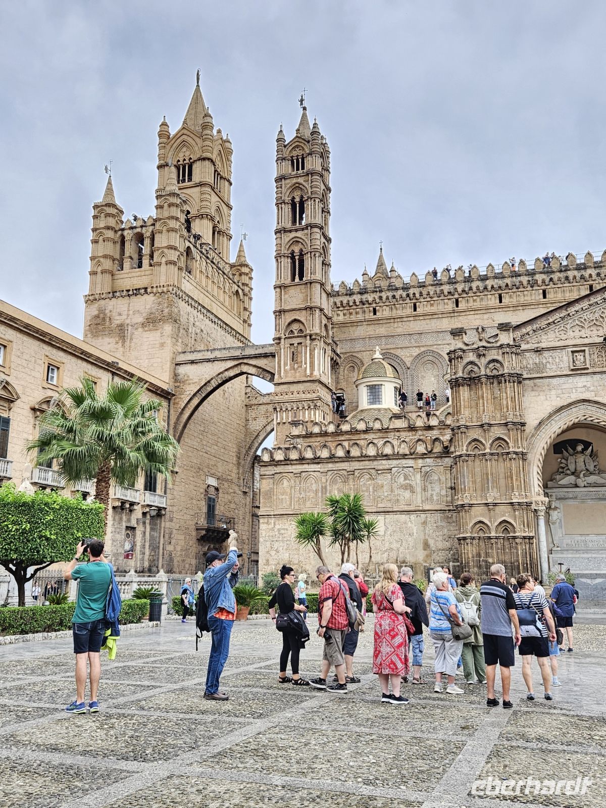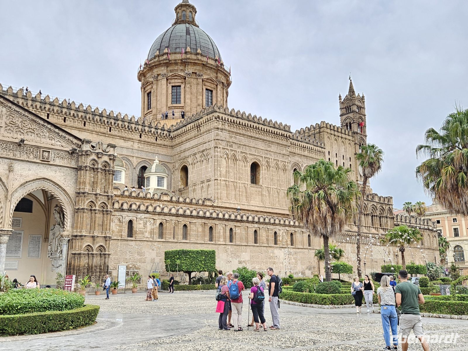 Heute heisst es wieder, Check out und Koffer laden - leider - das Landhotel mit seinen kleinen Häusern, Pool, Garten, Plantage war ein Ort zum Bleiben. Nach 1,5 h Busfahrt sind wir in PALERMO, der Hauptstadt Siziliens, angekommen. Als erstes wartet der Normannenpalast, in dem Friedrich II. seine Kinder-und Jugendjahre verbrachte, mit seiner einzigartigen Hofkapelle - der CAPPELLA PALATINA auf uns. Das lange Warten hat sich gelohnt - diese einzigartige Verschmelzung aus lateinischer Basilika mit byzantinischen Mosaiken und arabischen Stalaktiten - Decke begeistert nicht nur uns. Hier treffen Kulturen und verschiedene Epochen aufeinander. Und weil wir schon in PALERMO sind, gehören so wichtige Sehenswürdigkeiten wie das Eingangstor zur Altstadt, das Rathaus mit seinem SCHAMBRUNNEN, die Kreuzung QUATTRO CANTI, die Kirche MARTORANA und das Opernhaus dazu. Danach haben wir Freizeit und wie immer können wir nach guten Hinweisen von Christiane durch die Altstadt bummeln.